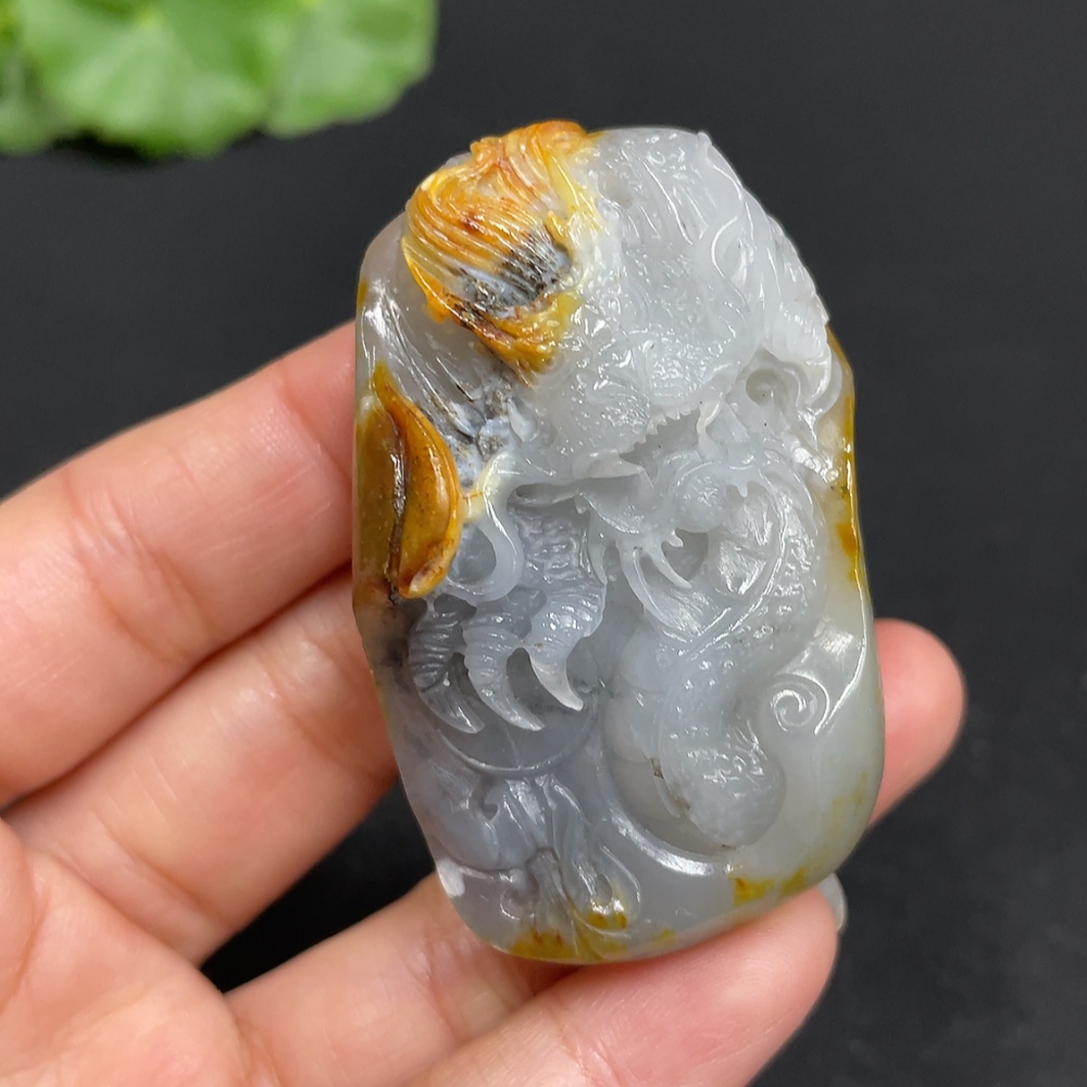 Hetian Jade Pendant Dragon Total Weight Approx. 46.8g Undetermined Skin Color Origin