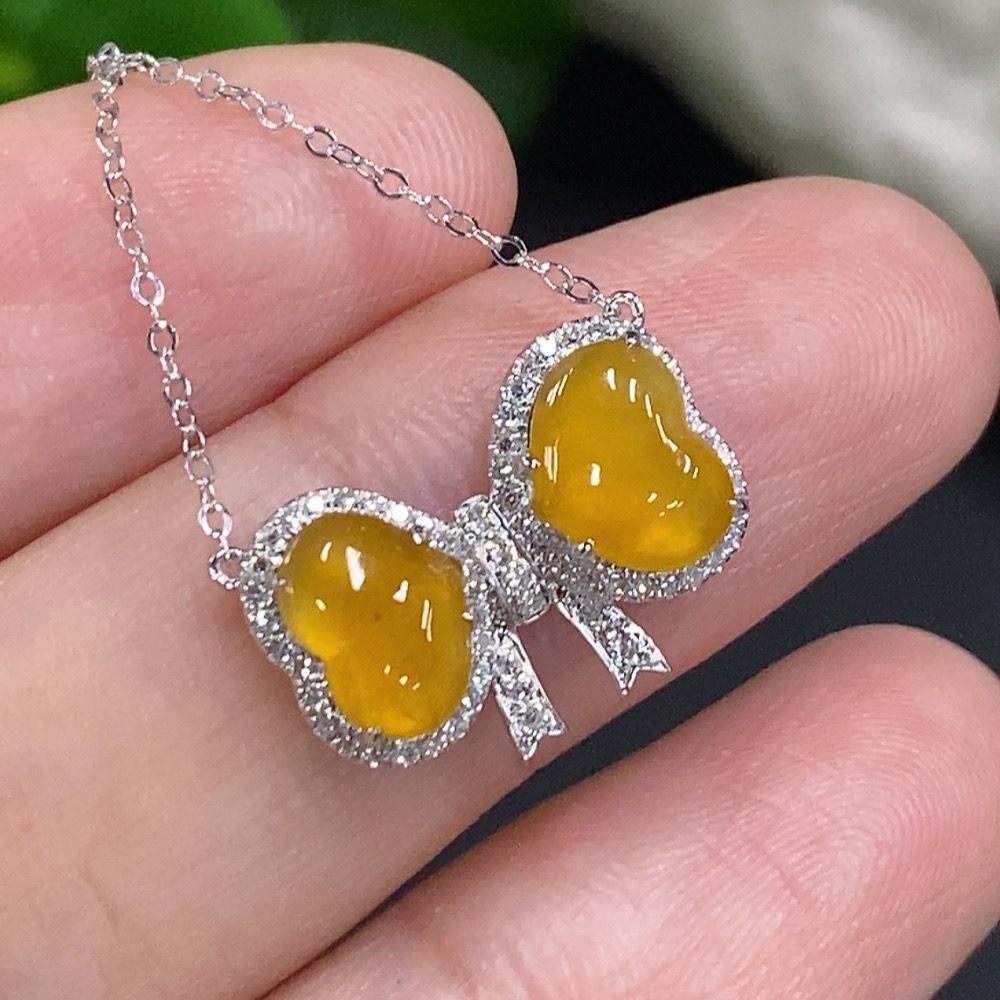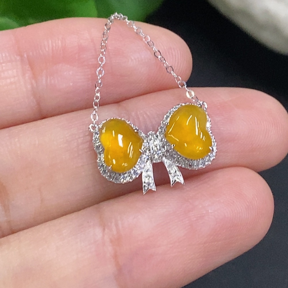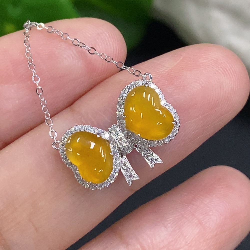 Jadeite Inlaid Pendant (Au36%) Total Weight Including Chain Approx. 1.7g (With Diamond Accents)