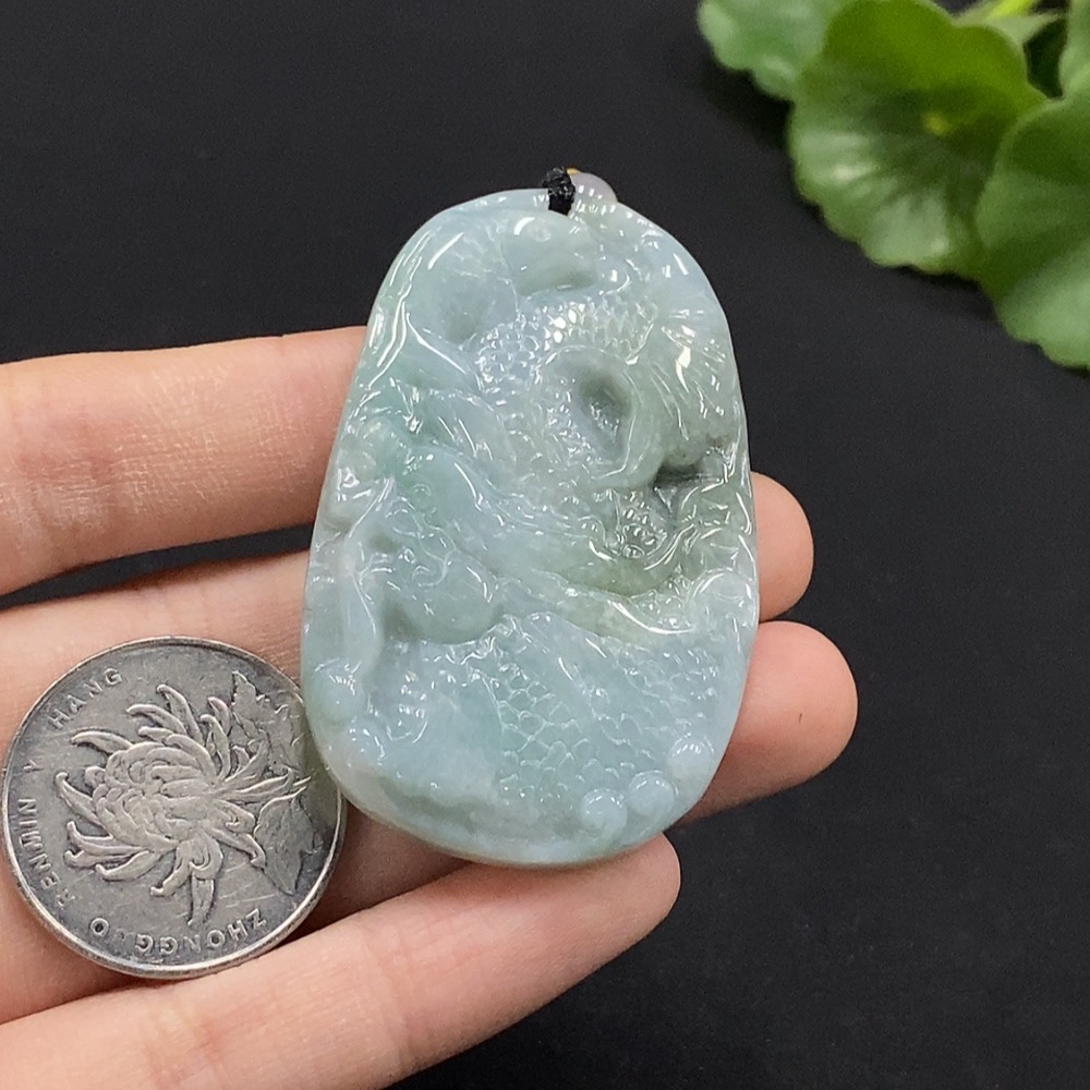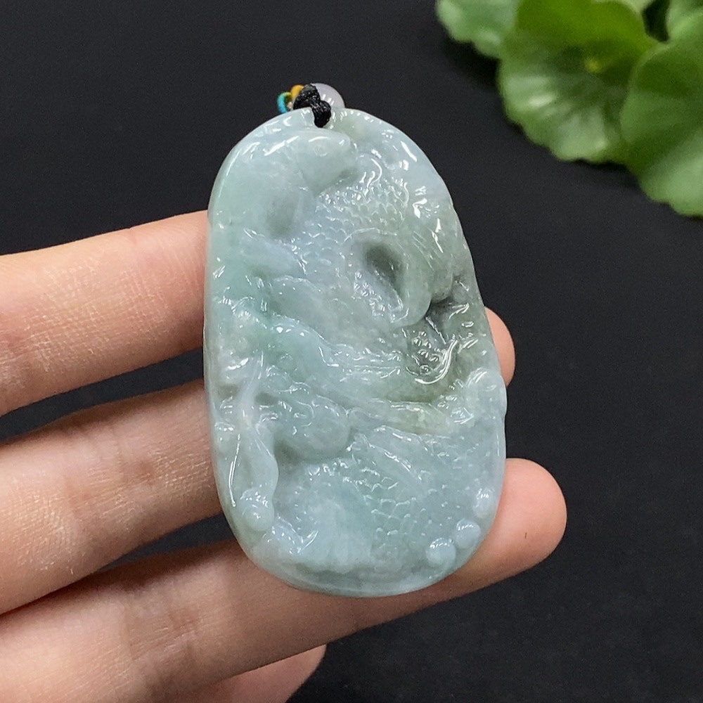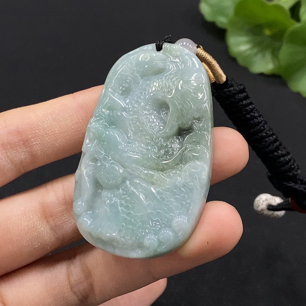 Jadeite Arowana Pendant with Non-Grade A Beads, Total Weight Approximately 27.74g