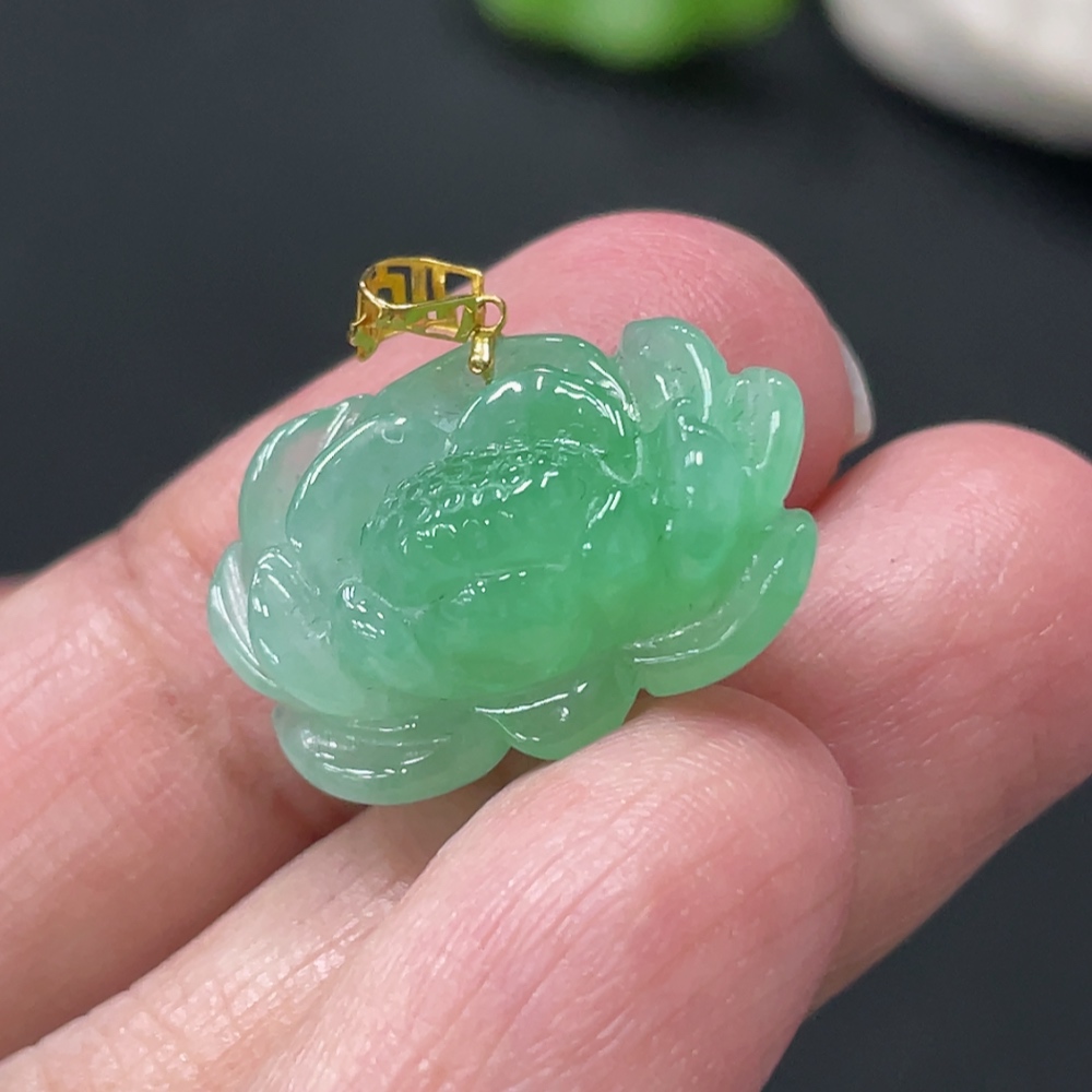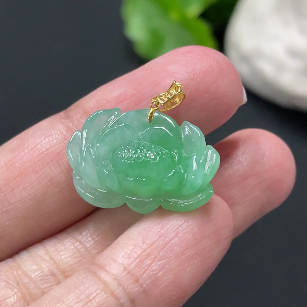 Jadeite Lotus Pendant Total Weight Approx. 3.38g 18k Gold Clasp