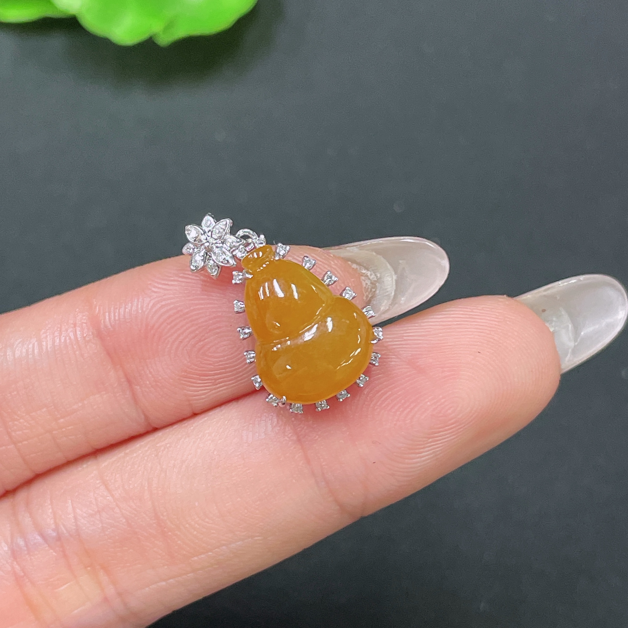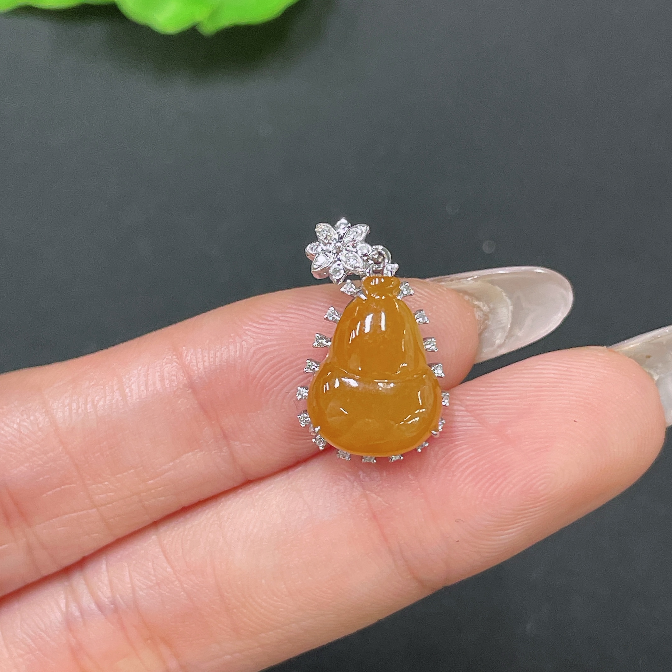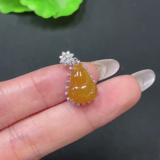 Jadeite Pendant Gourd 18K Gold Inlaid No Diamond Total Weight Approx. 2.21g