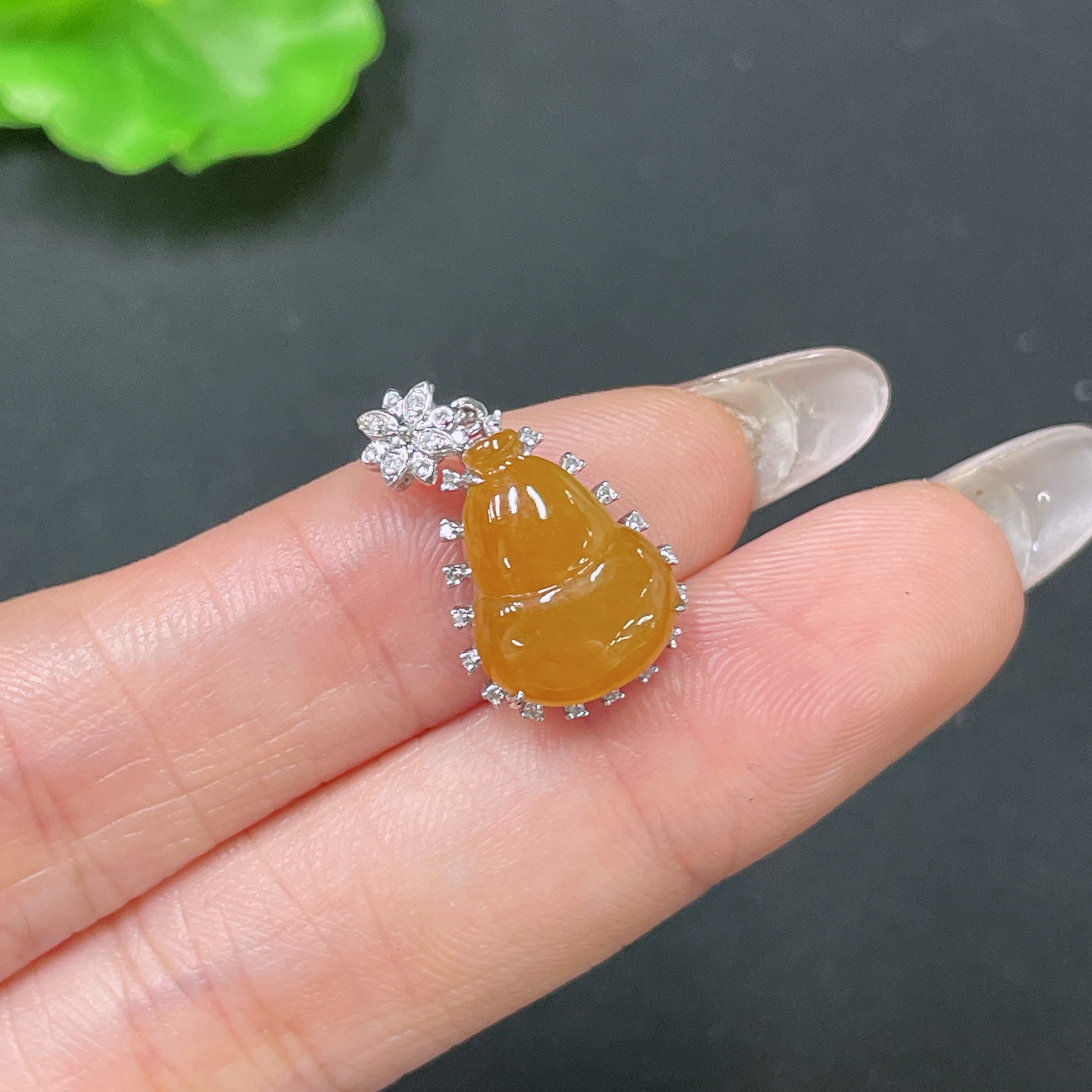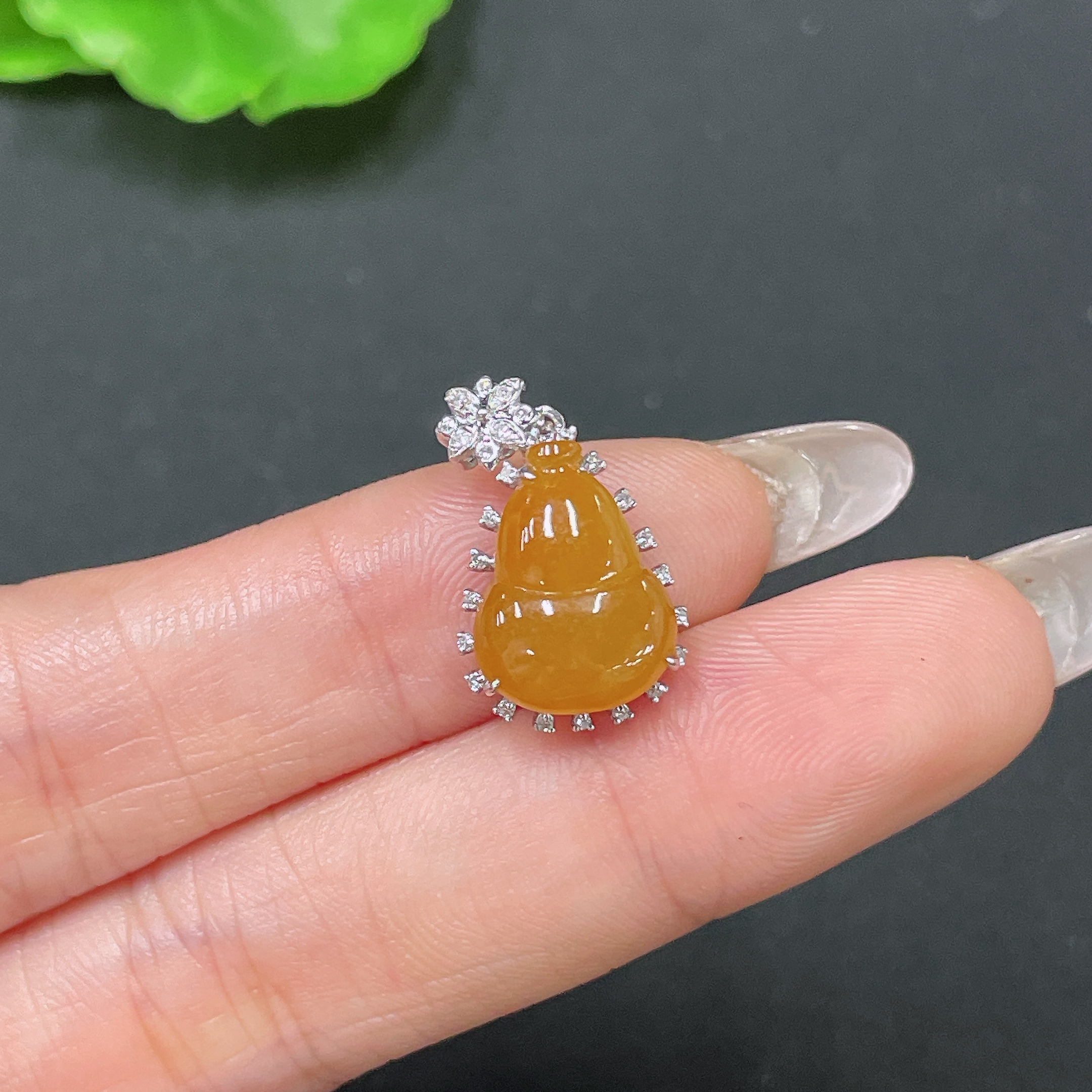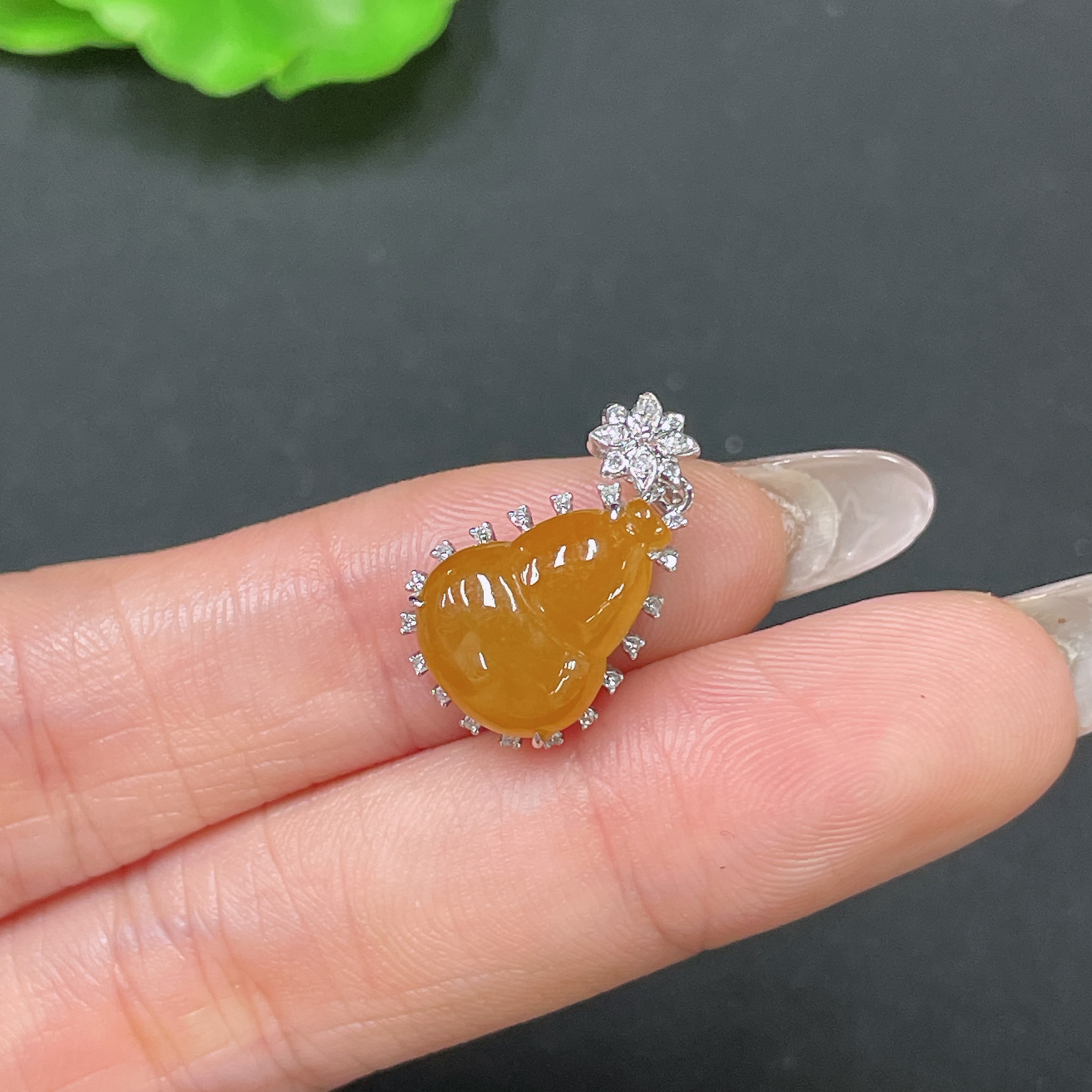Jadeite Pendant Gourd 18K Gold Inlaid No Diamond Total Weight Approx. 2.21g