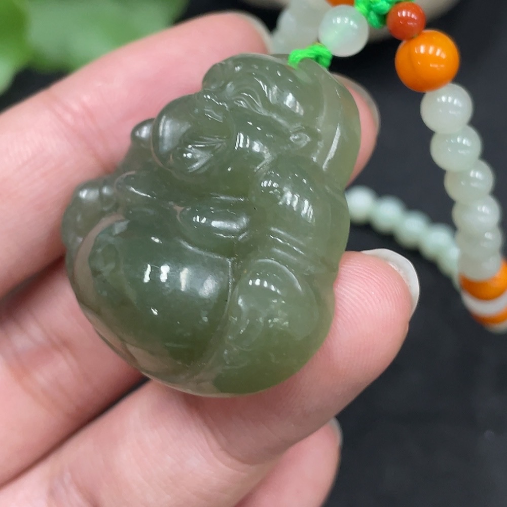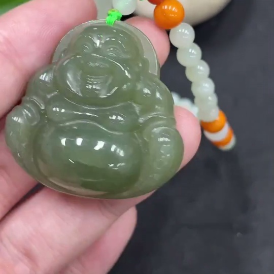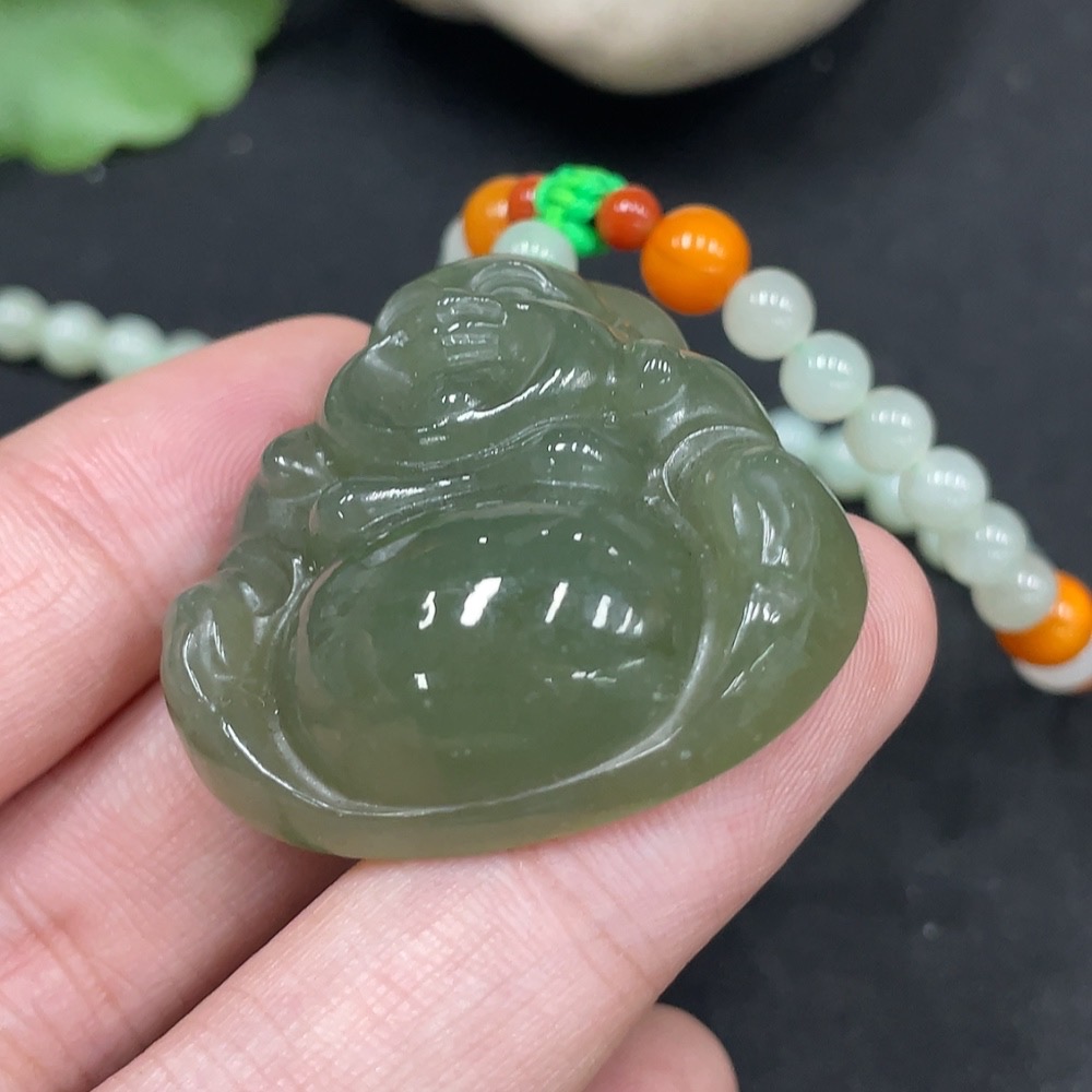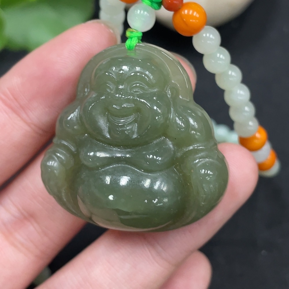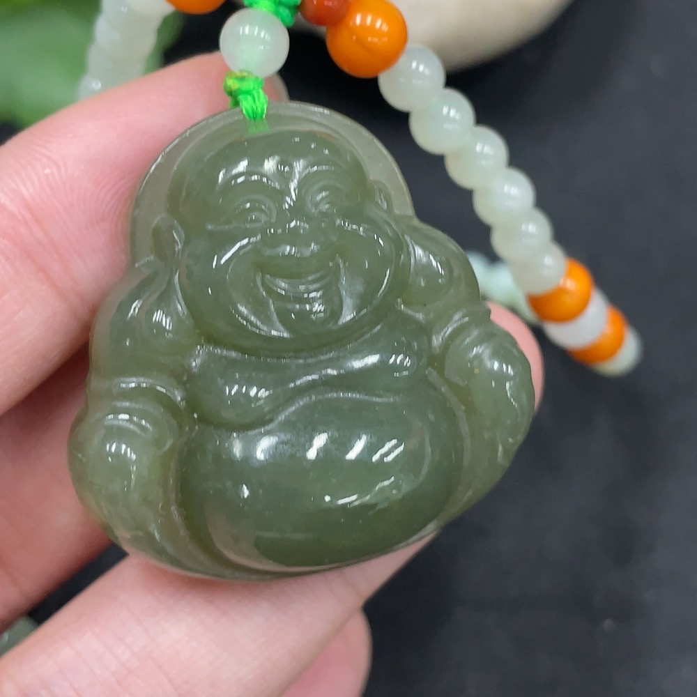 Hetian Jade Pendant - Buddha with Non-Hetian Jade Beads, Total Weight (Including Chain) Approx. 45g