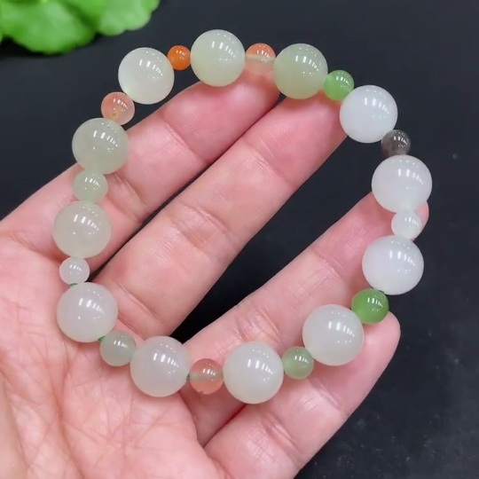 Hetian Jade Bracelet, approx. 10mm, total weight approx. 21.3g, with non-Hetian Jade beads