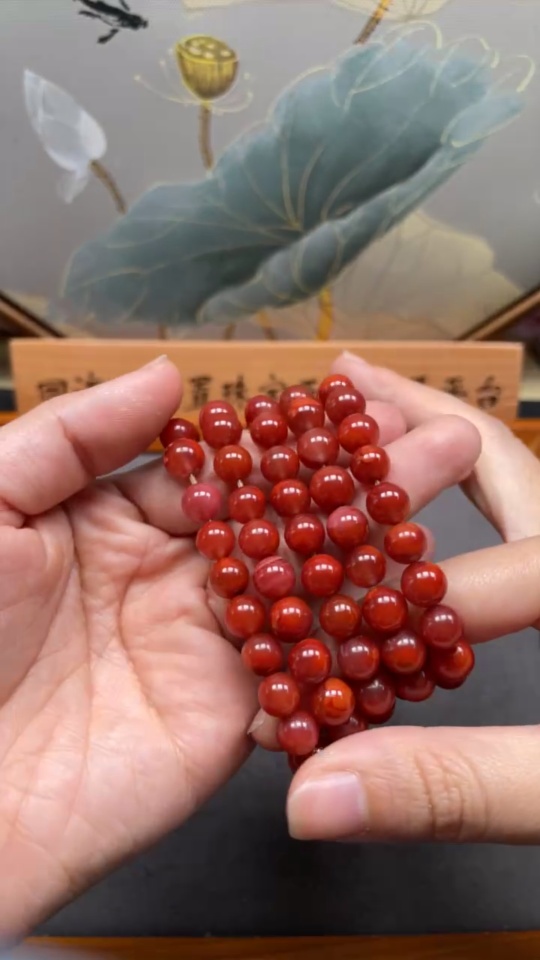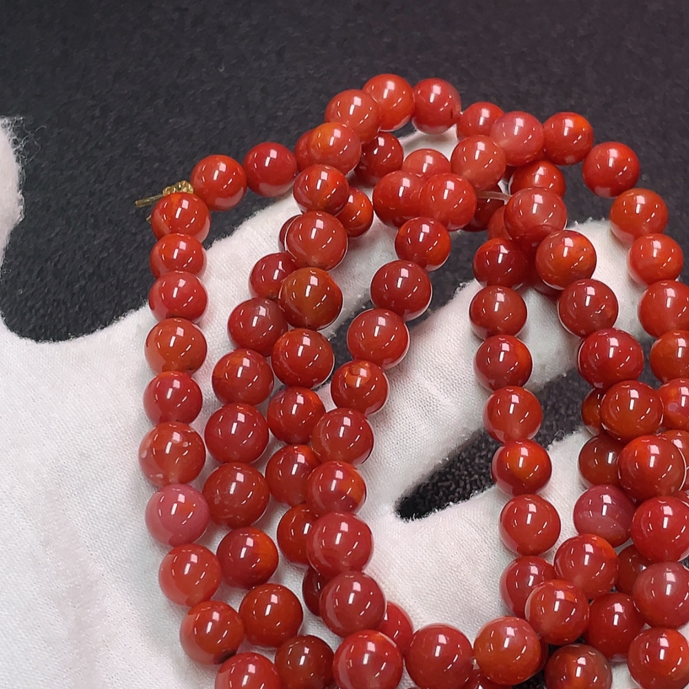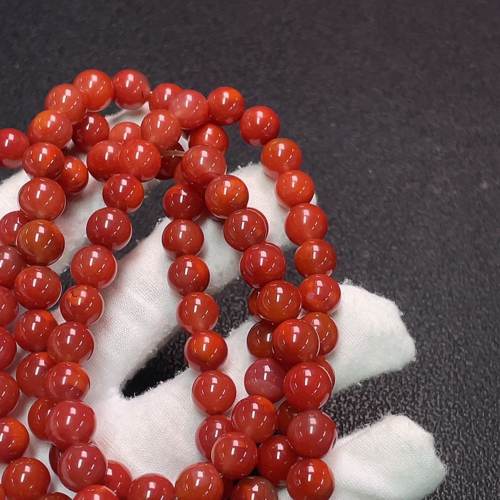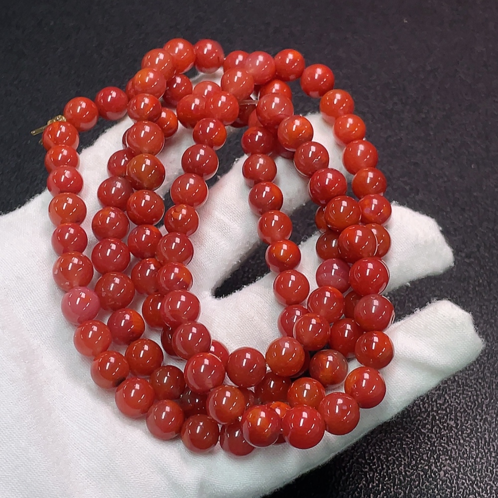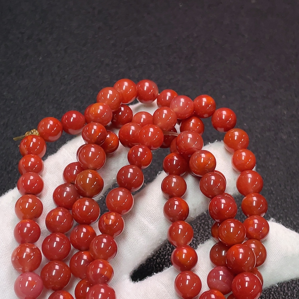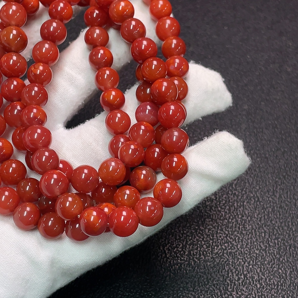 South Red Agate Bead Strand with Visible Organic Matter, Total Weight Approx. 88.2g, Size About 8mm