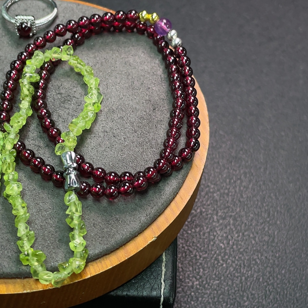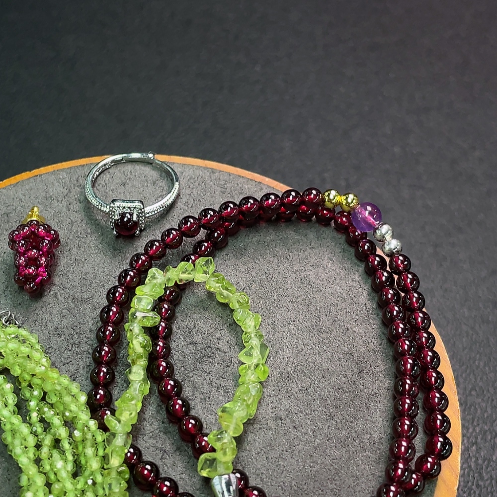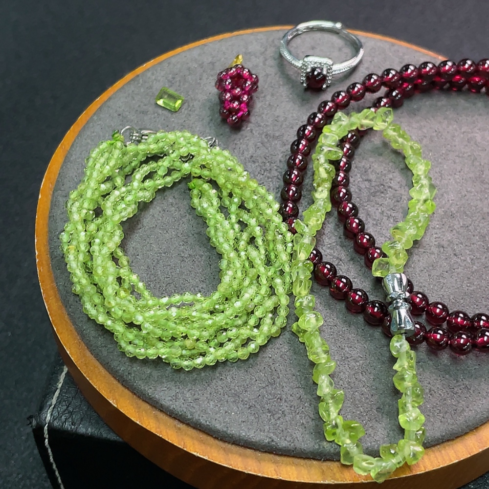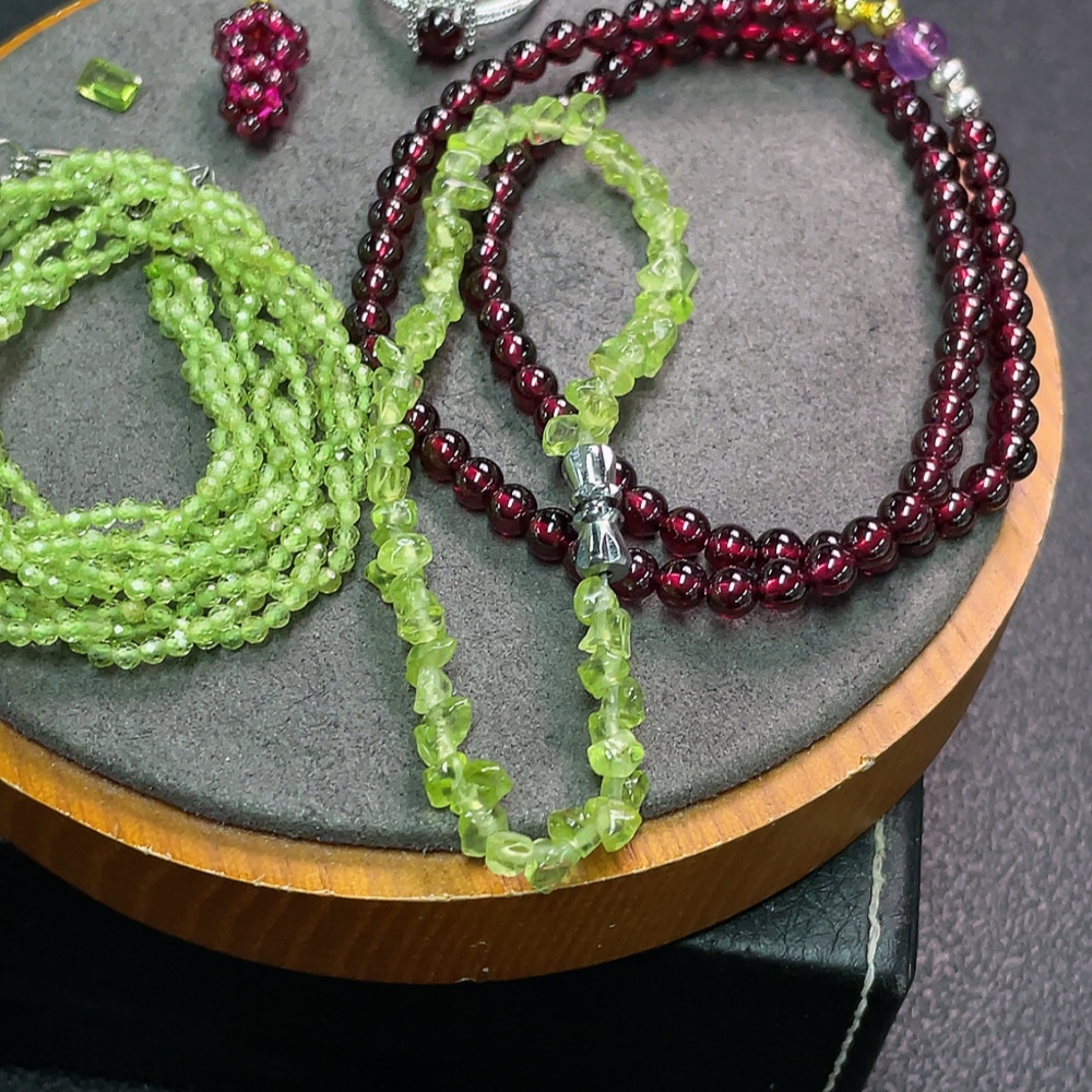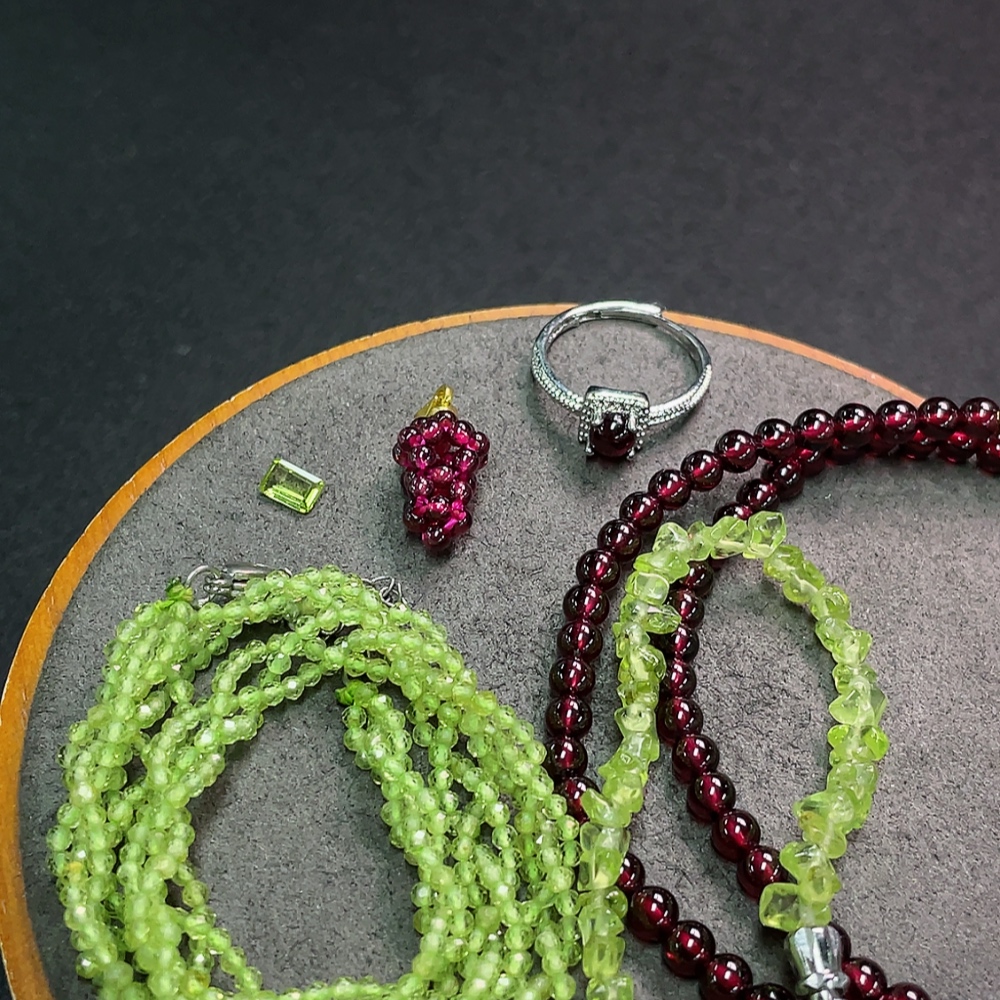 Garnet with synthetic accent stones + Peridot jewelry, non-gold, total weight approx. 36.17g, sell as a lot