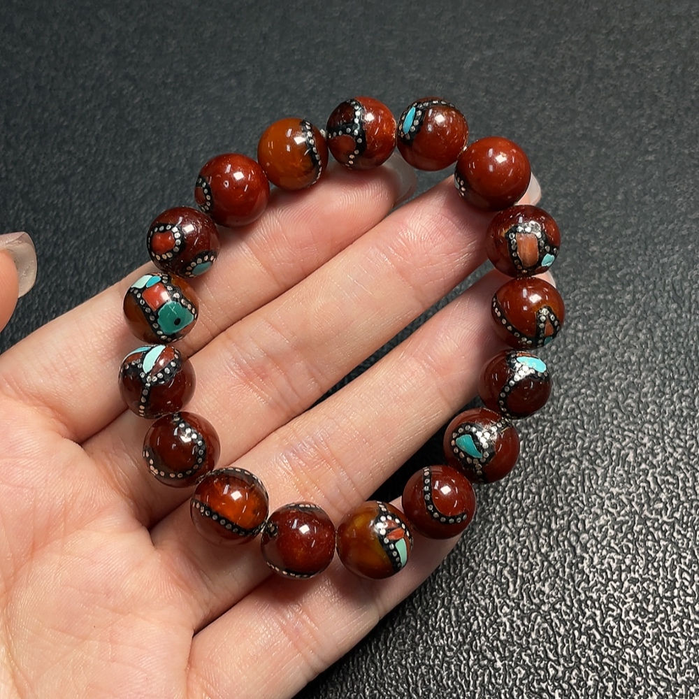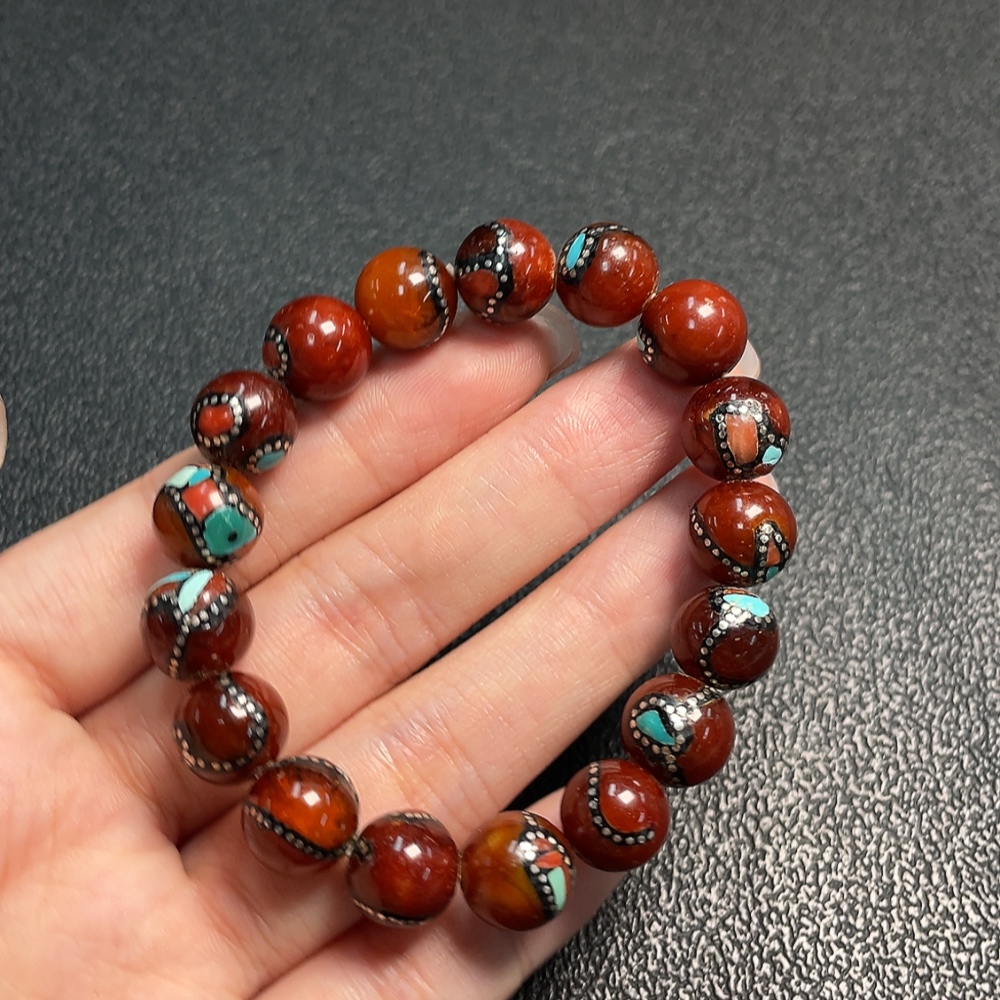 Amber Beeswax Bracelet, Total Weight Approx. 17.41g, Size 10.5mm, Visible Adhesive Craftsmanship