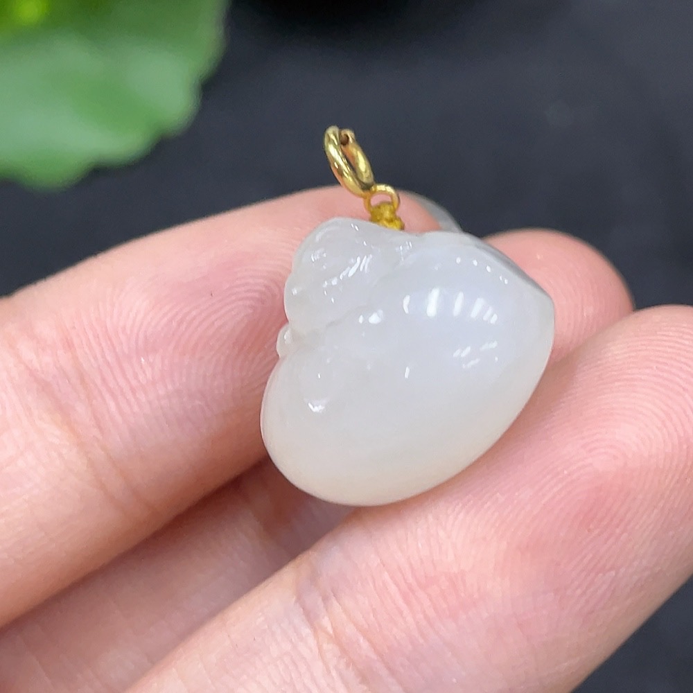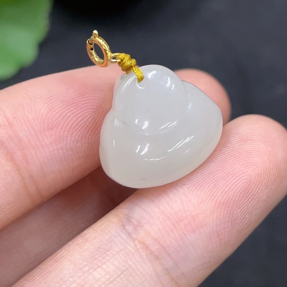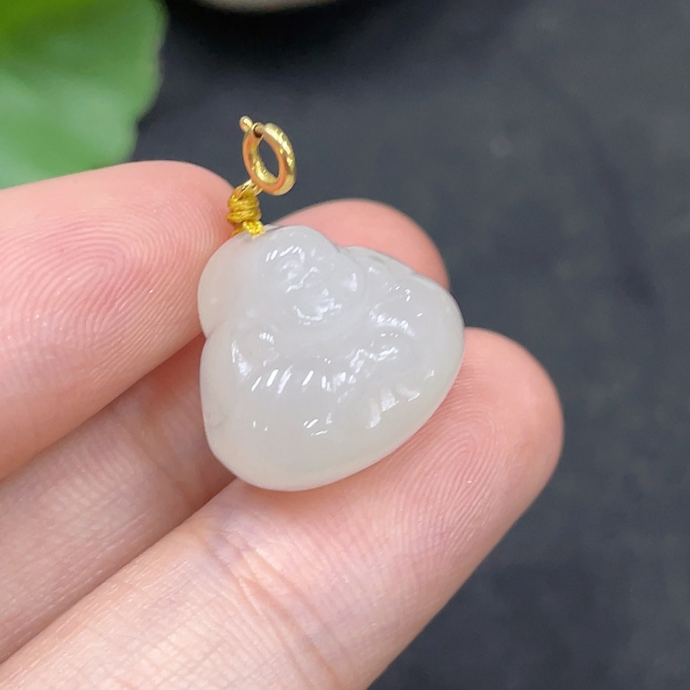 Hetian Jade Pendant - Buddha with 18K Gold Clasp, Total Weight Approx. 3.5g