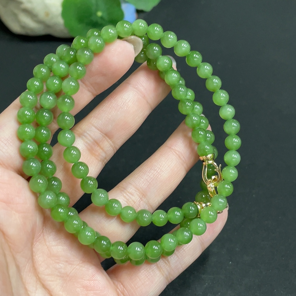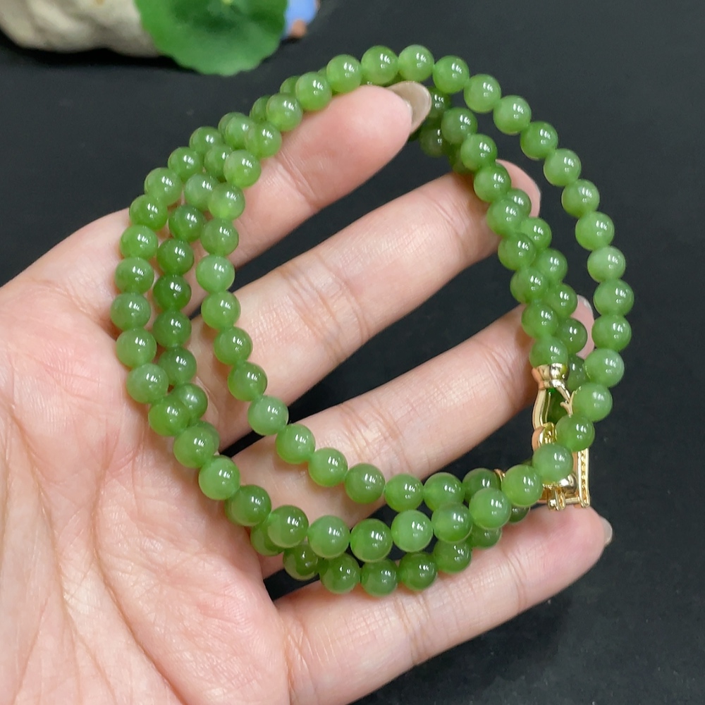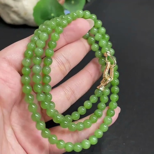 Hetian Jade Jasper Bead Necklace Approx. 5.9mm Total Weight About 39g Non-Gold