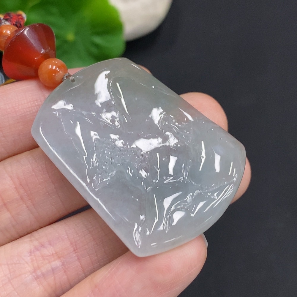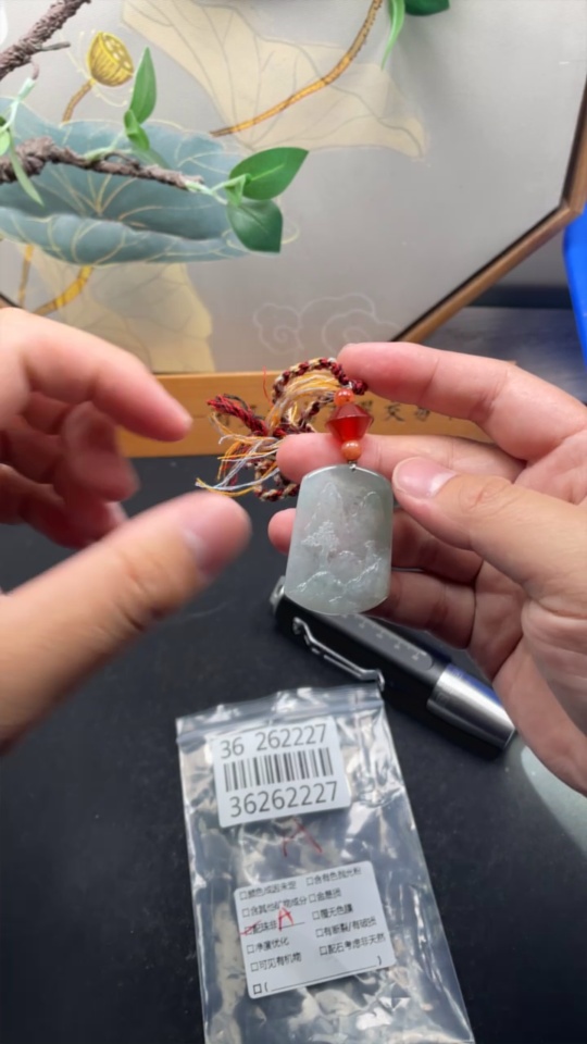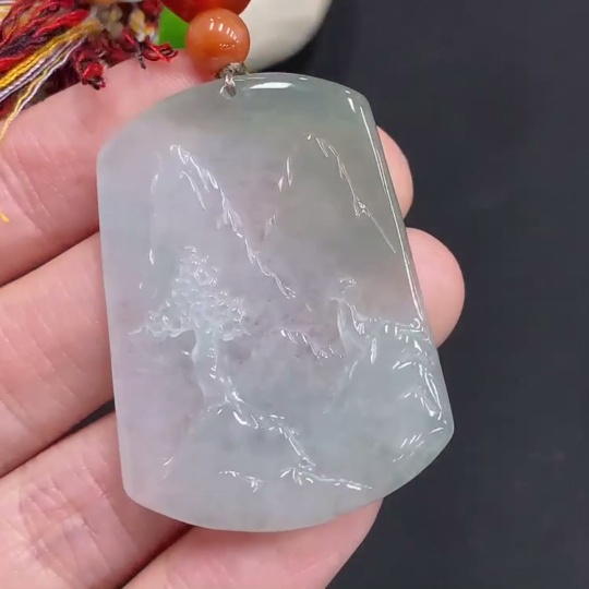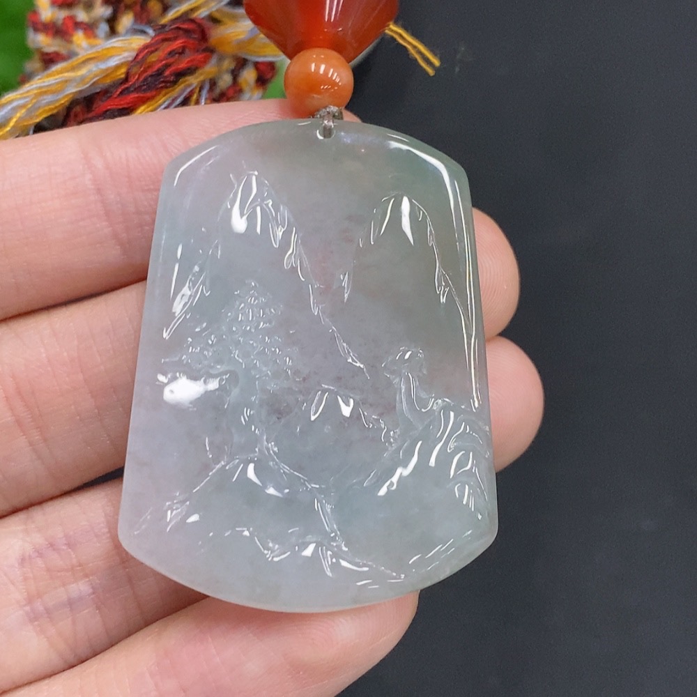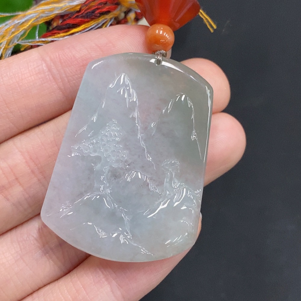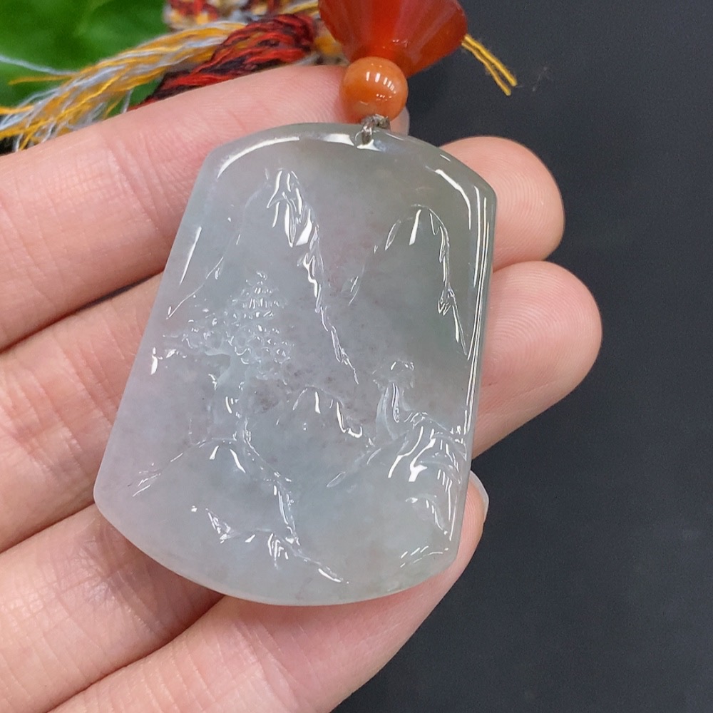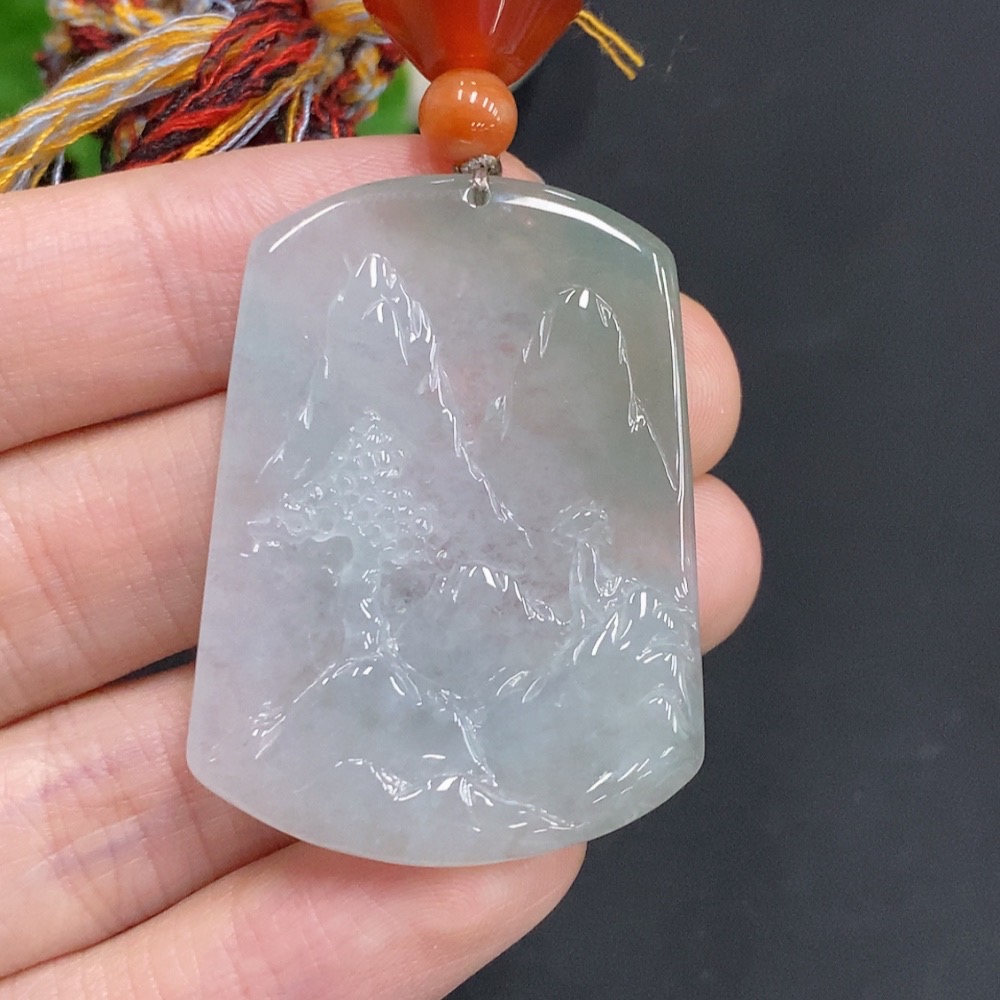 Jadeite Landscape Pendant Total Weight Approx. 18g (including rope weight) with non-jadeite beads