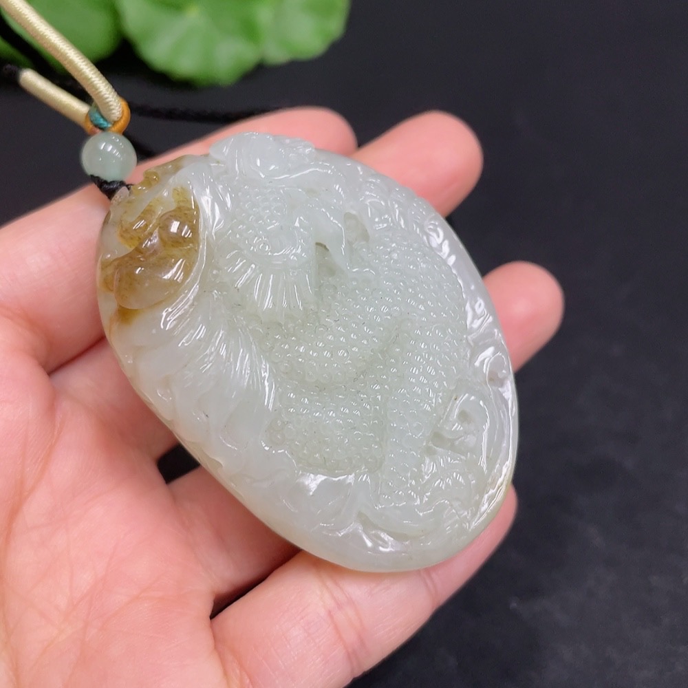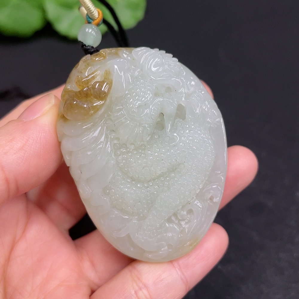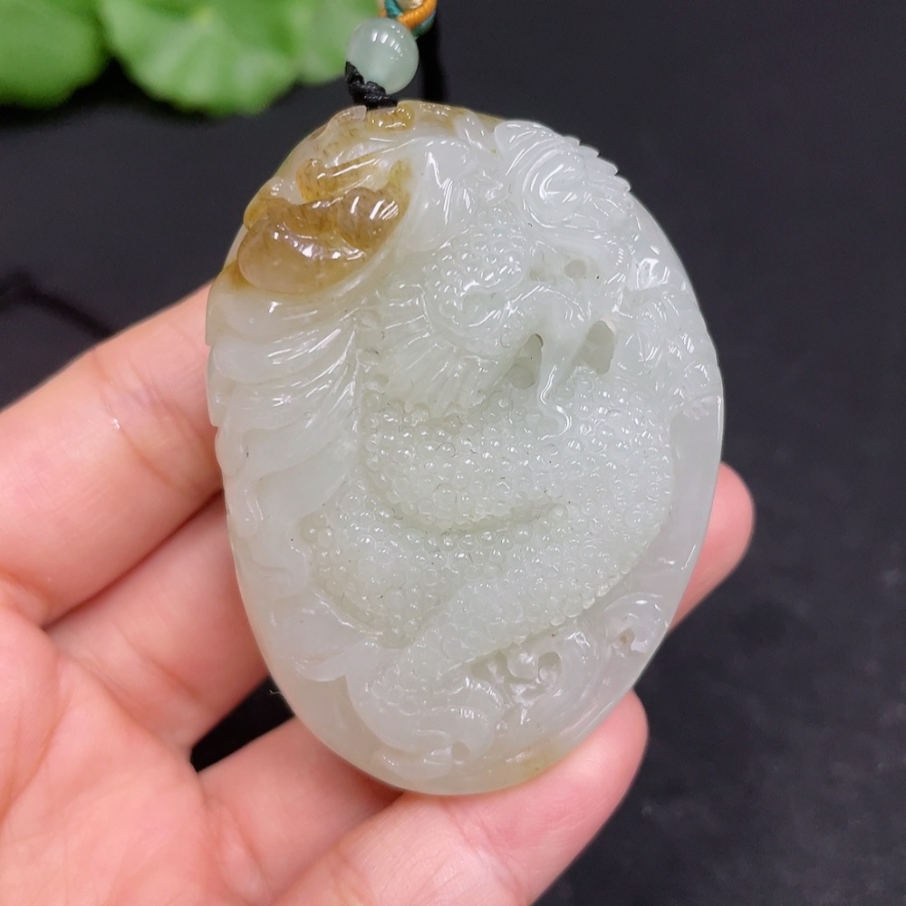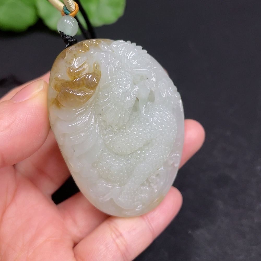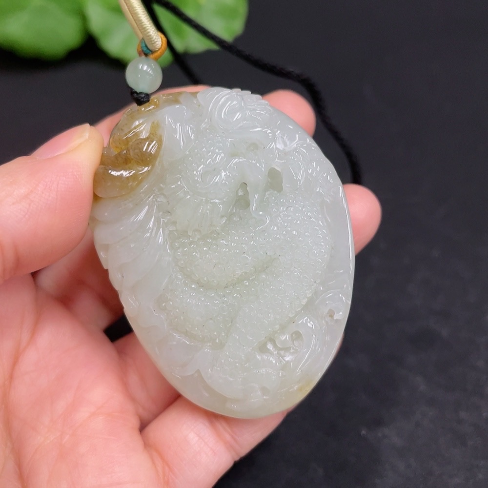 Hetian Jade Pendant Dragon Total Weight Approx. [with Rope] 72.7g