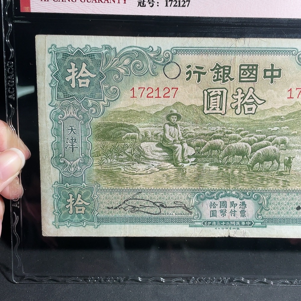 Central Bank 1934 Ten Dollars De La Rue Version Large Sheep Banknote