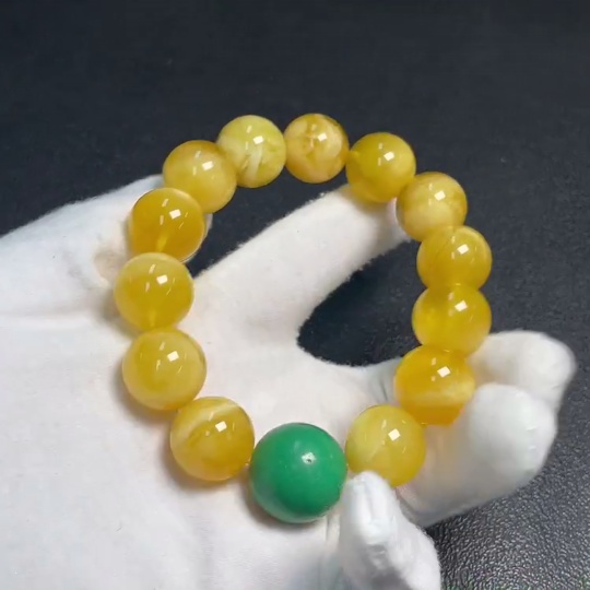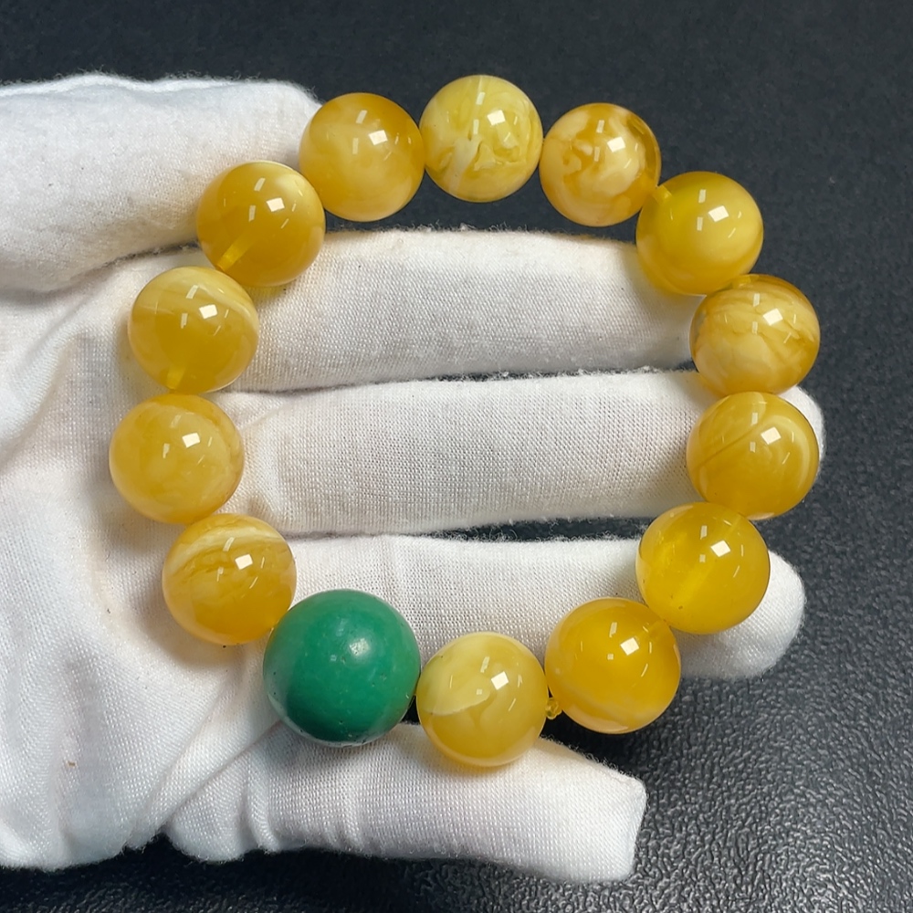 Amber Beeswax Bracelet with Non-Natural Gemstones, Total Weight Approx. 36.63g, Size About 15.7mm