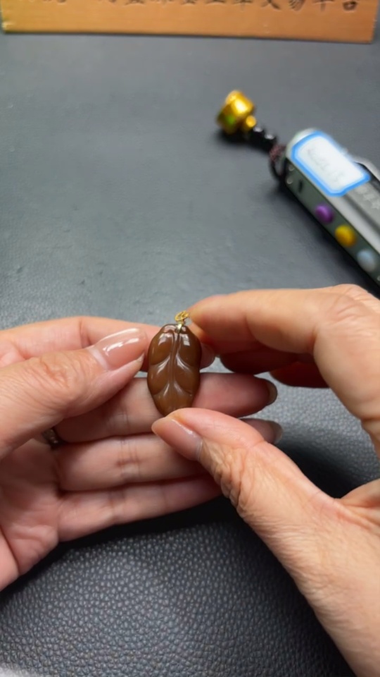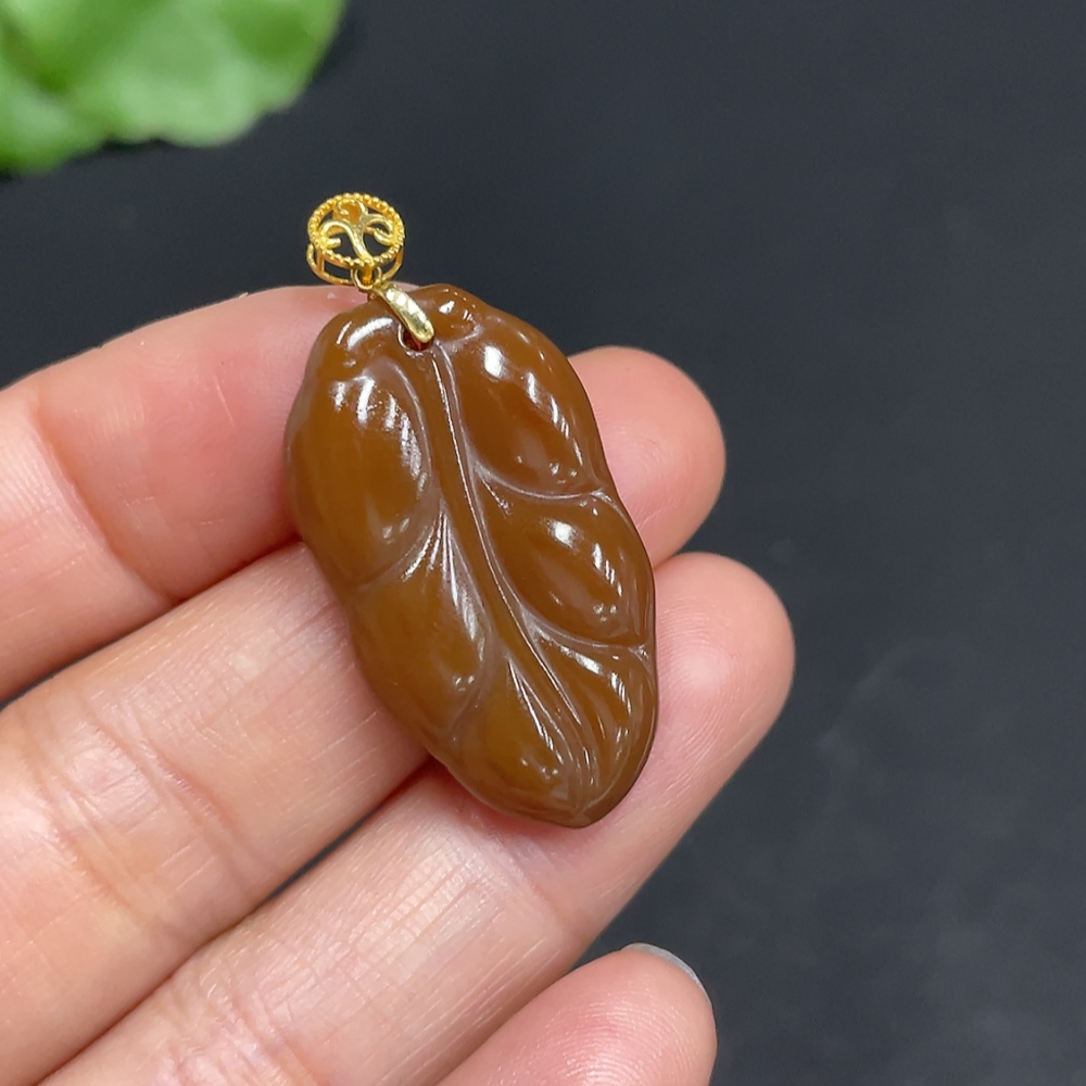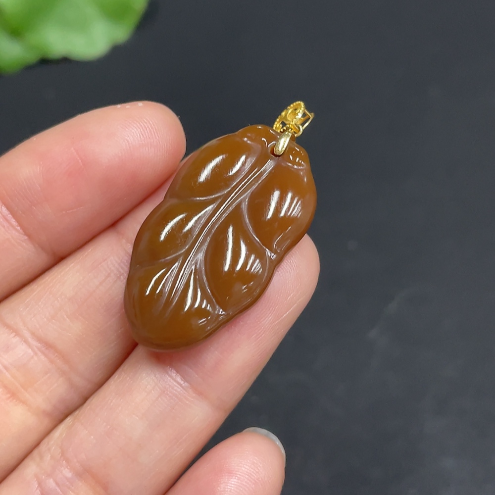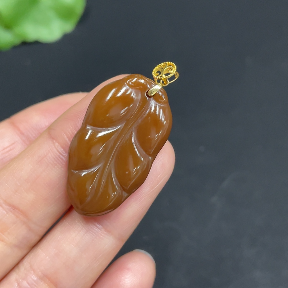 Hetian Jade Pendant Leaf with 18k Gold Clasp Total Weight Approx. 4.3g