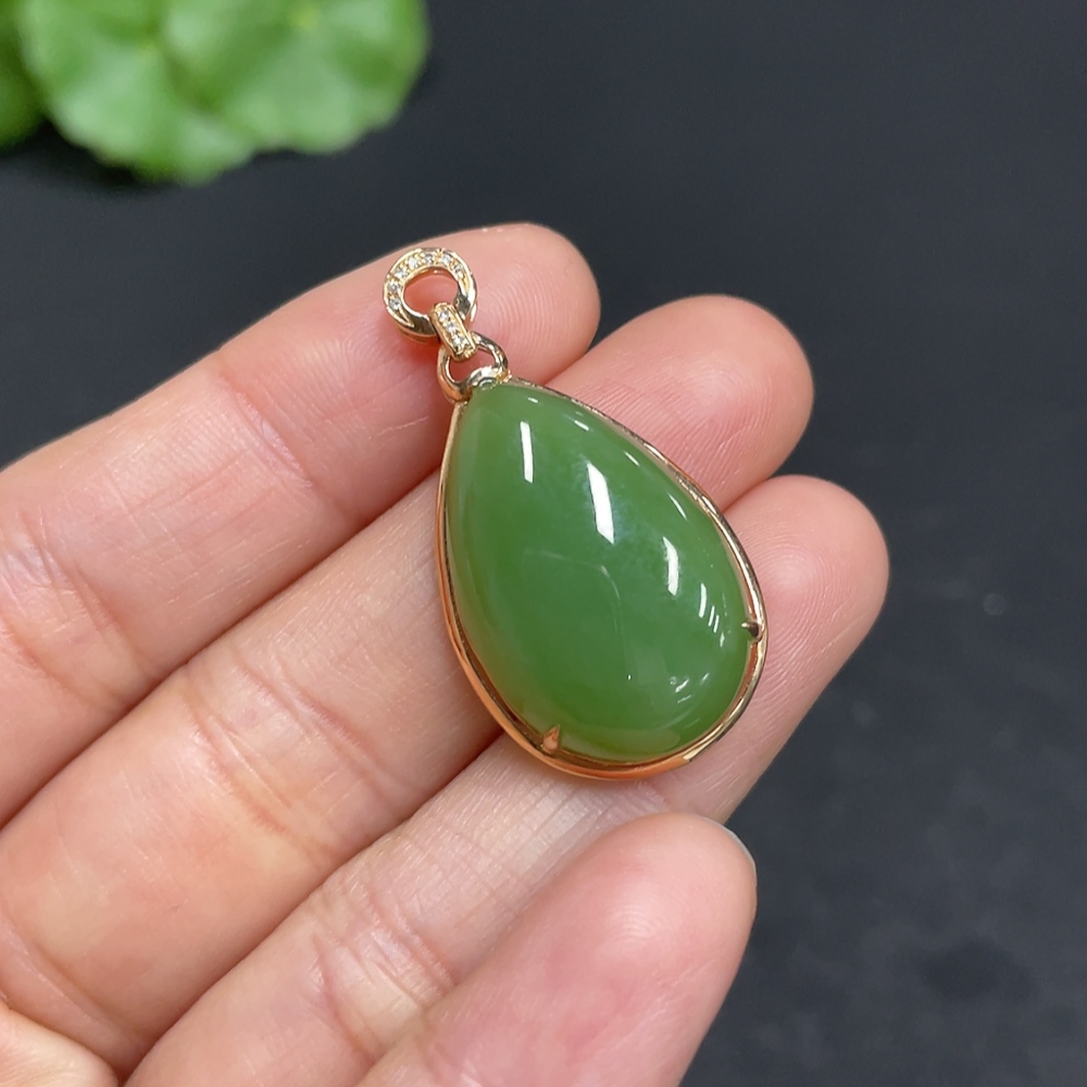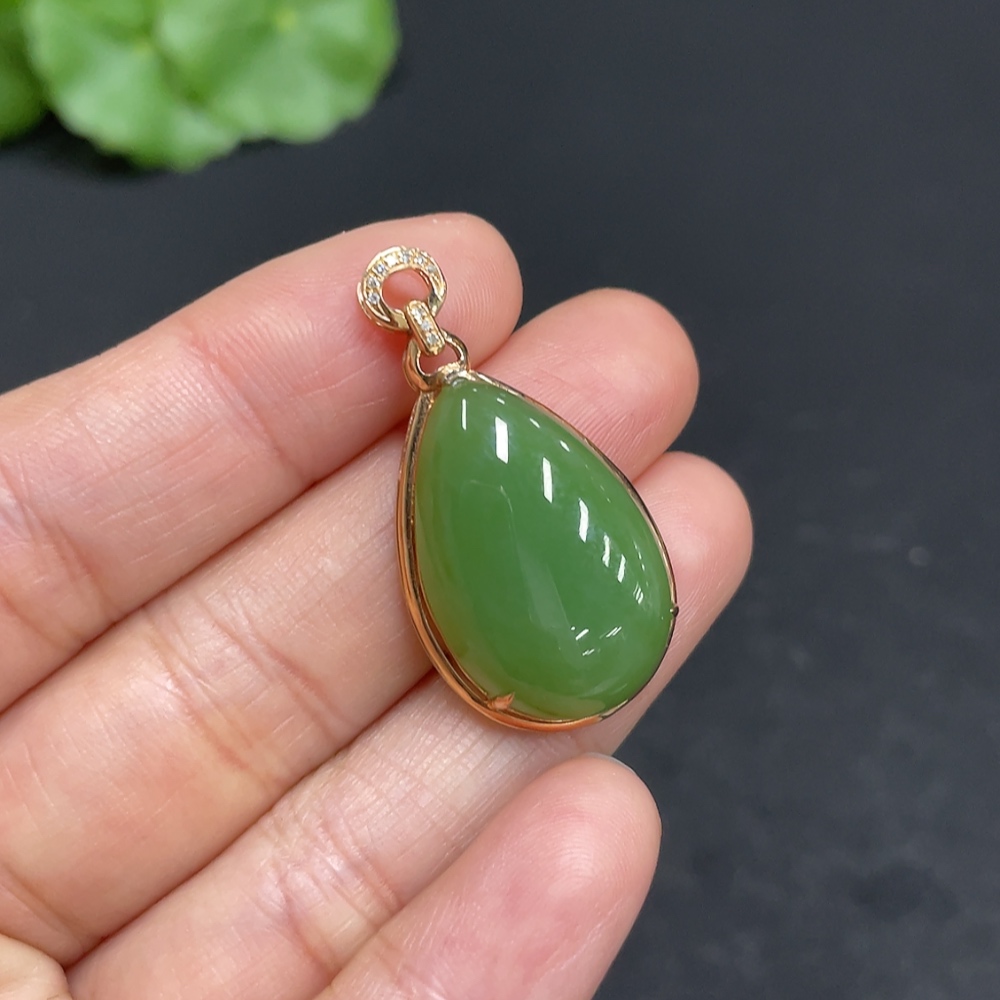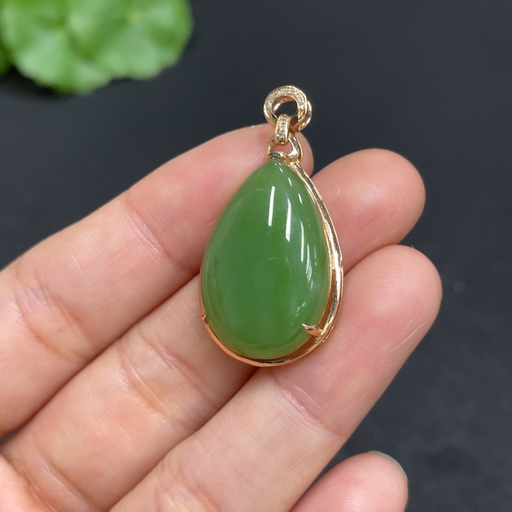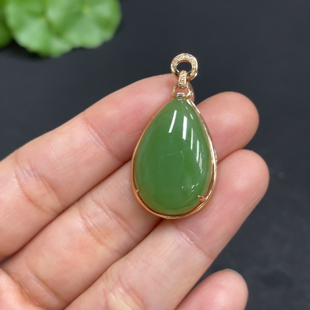 Hetian Jade Jasper Inlaid Water Drop 18k Gold Total Weight Approx. 4.1g With Diamond Accents
