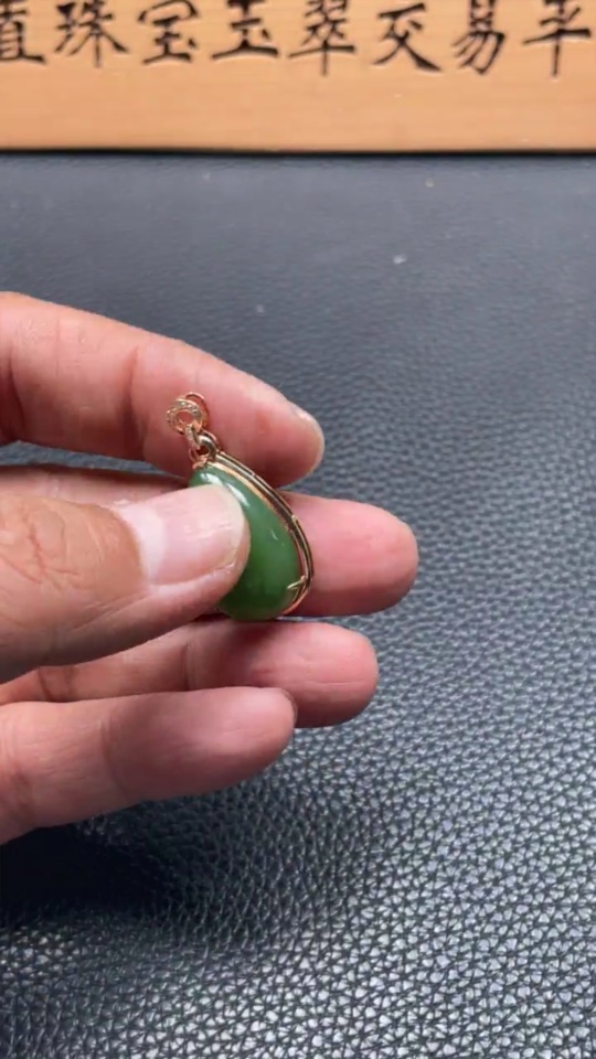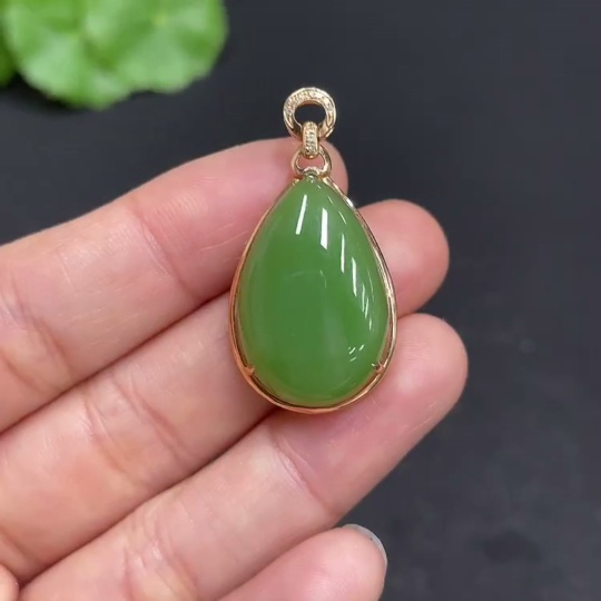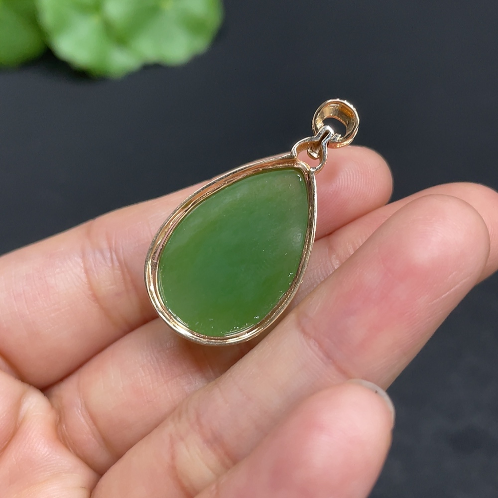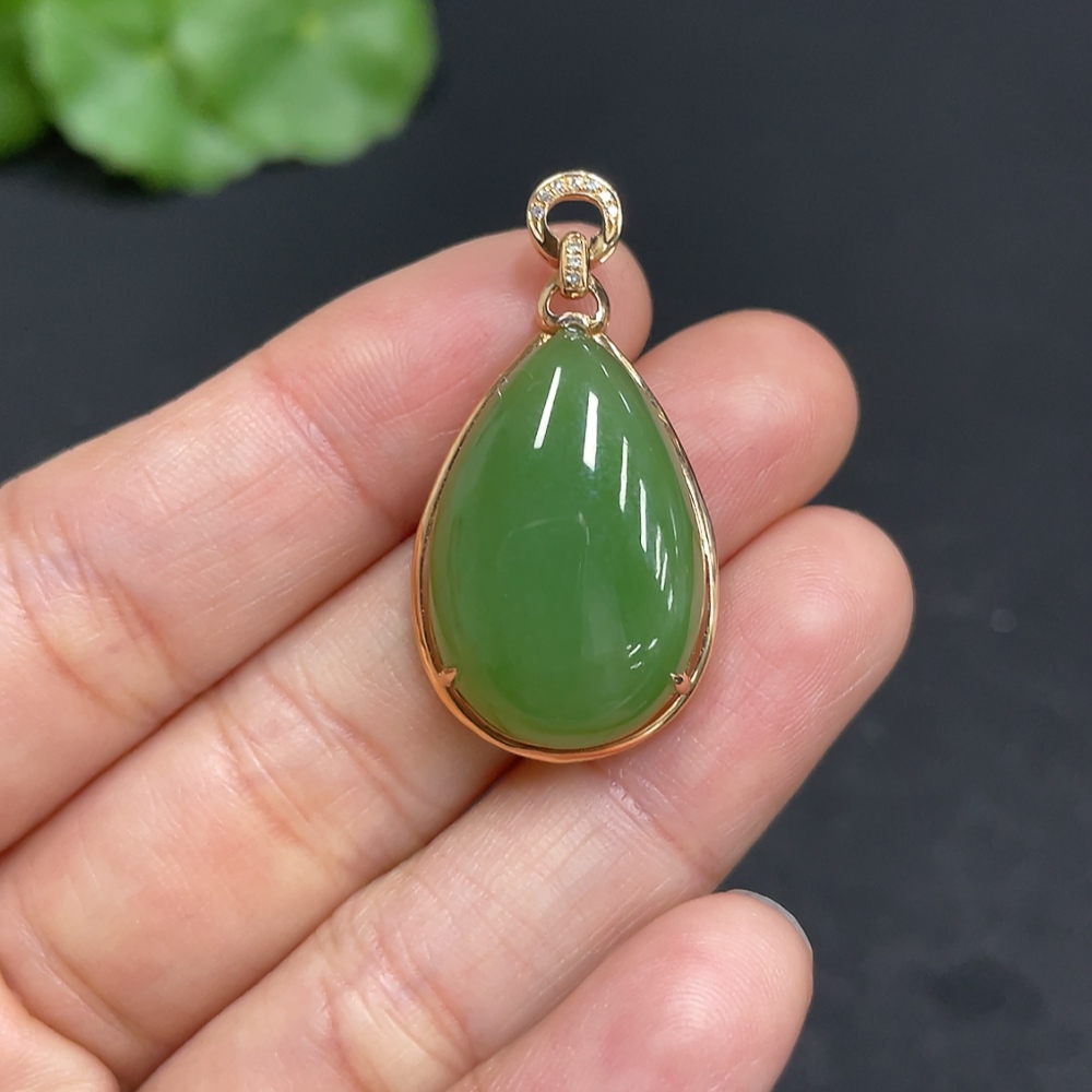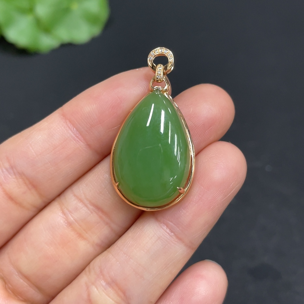 Hetian Jade Jasper Inlaid Water Drop 18k Gold Total Weight Approx. 4.1g With Diamond Accents