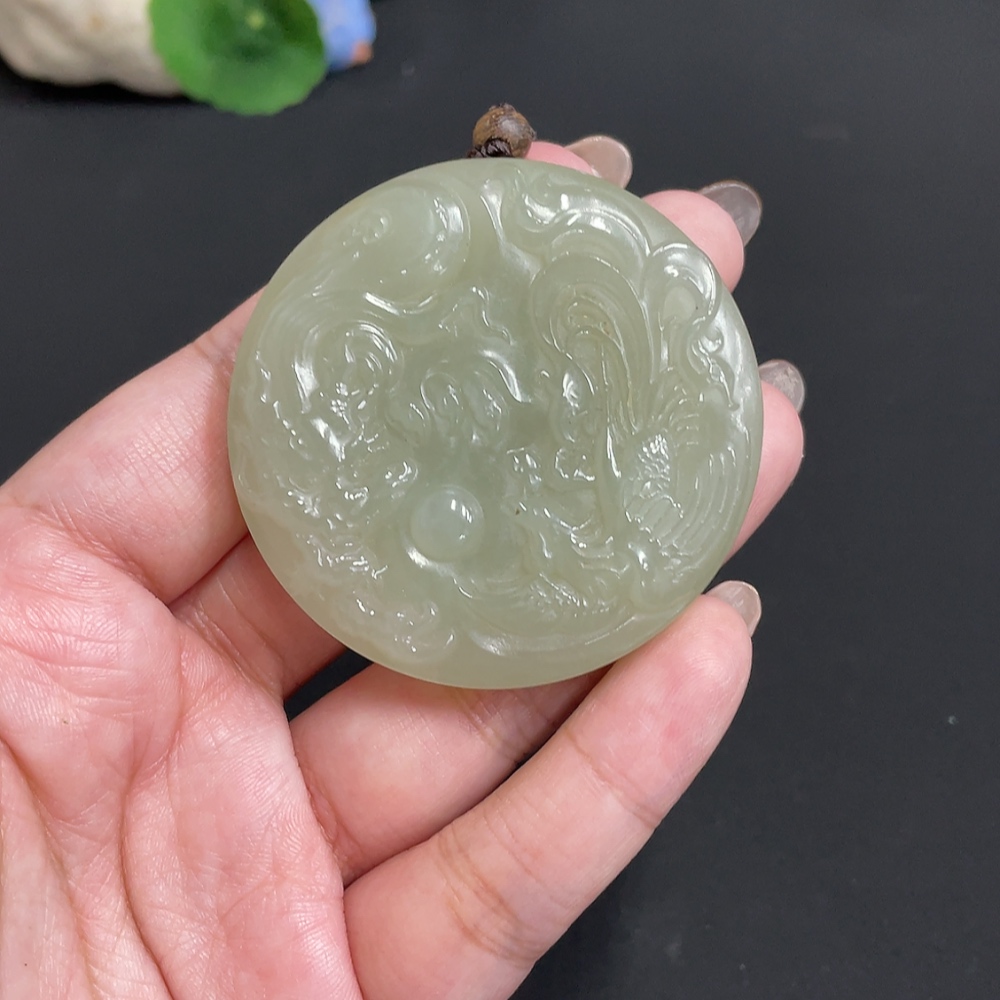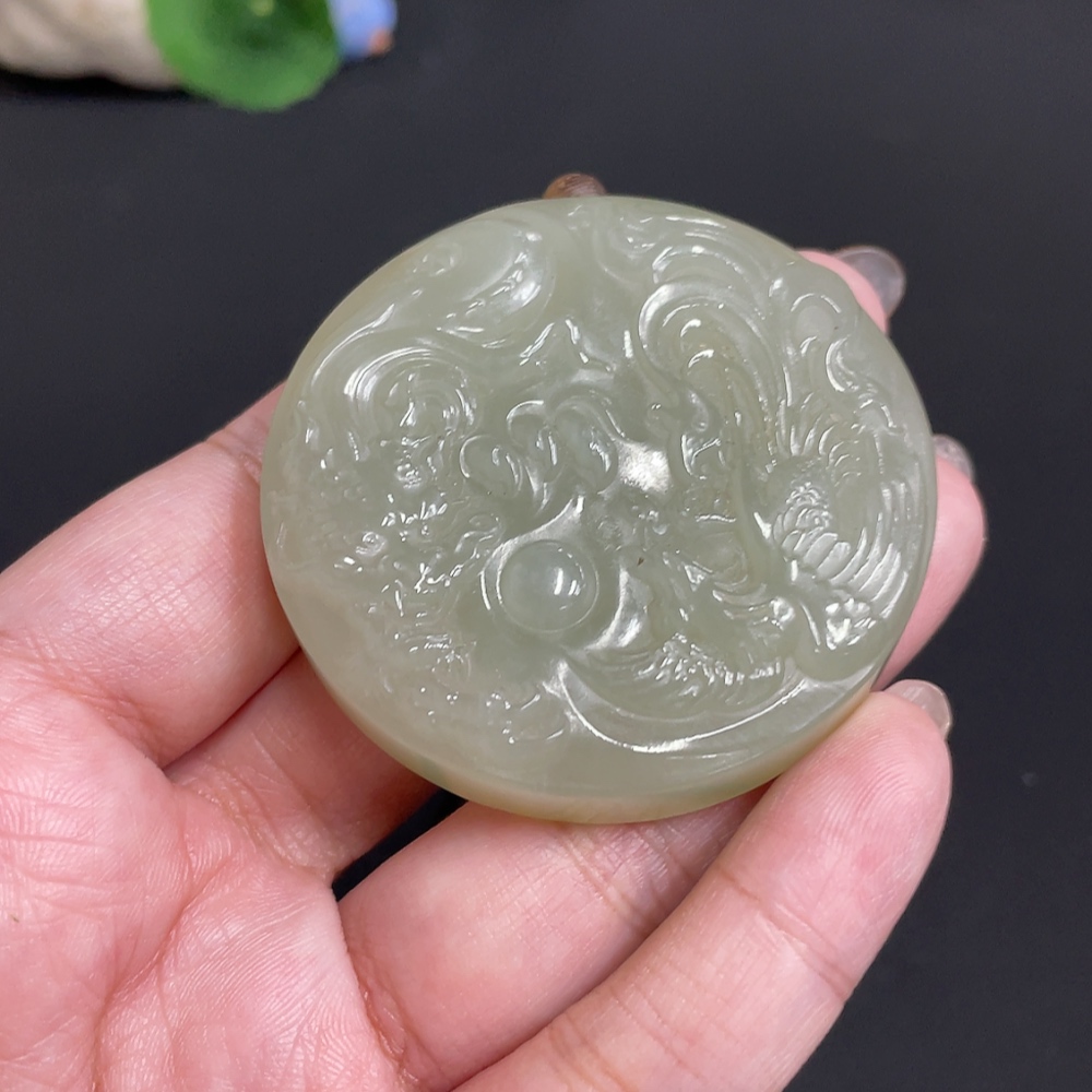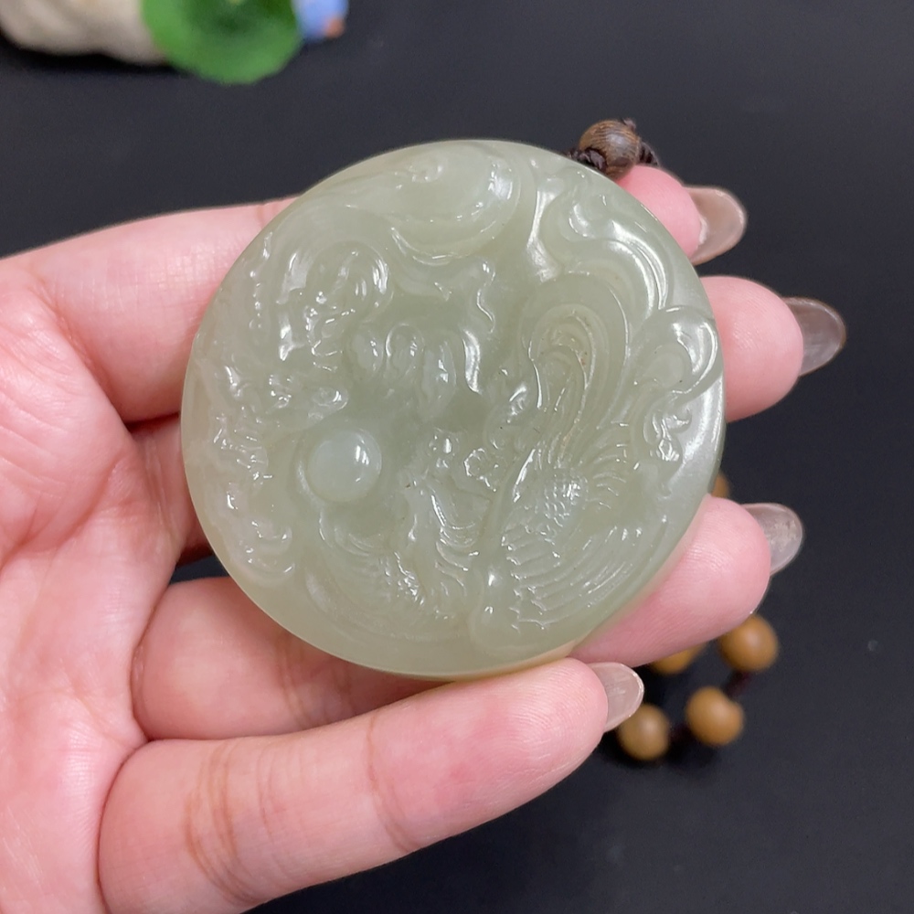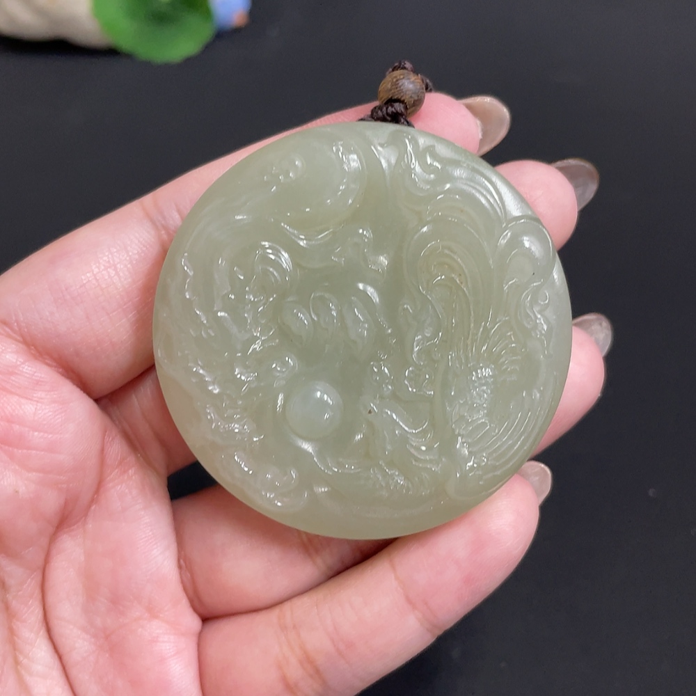 Hetian Jade Pendant Dragon and Phoenix Bringing Prosperity