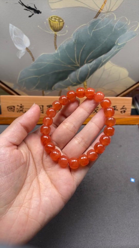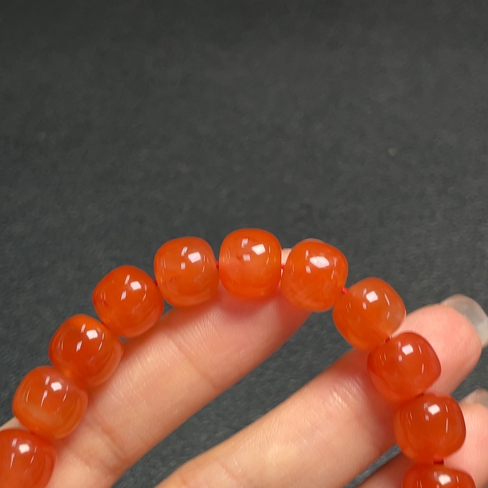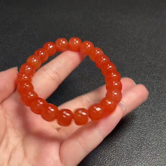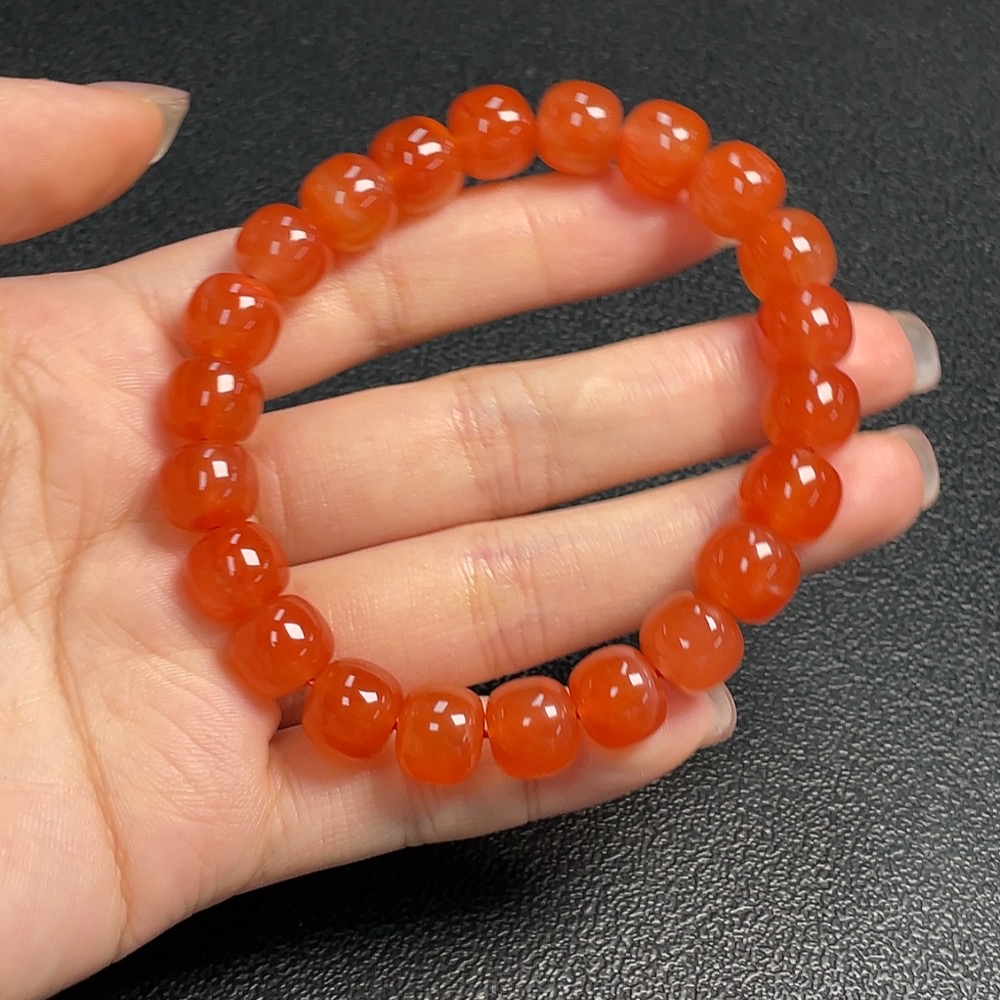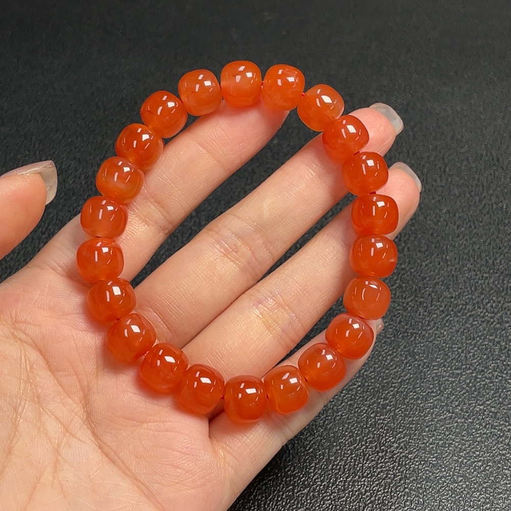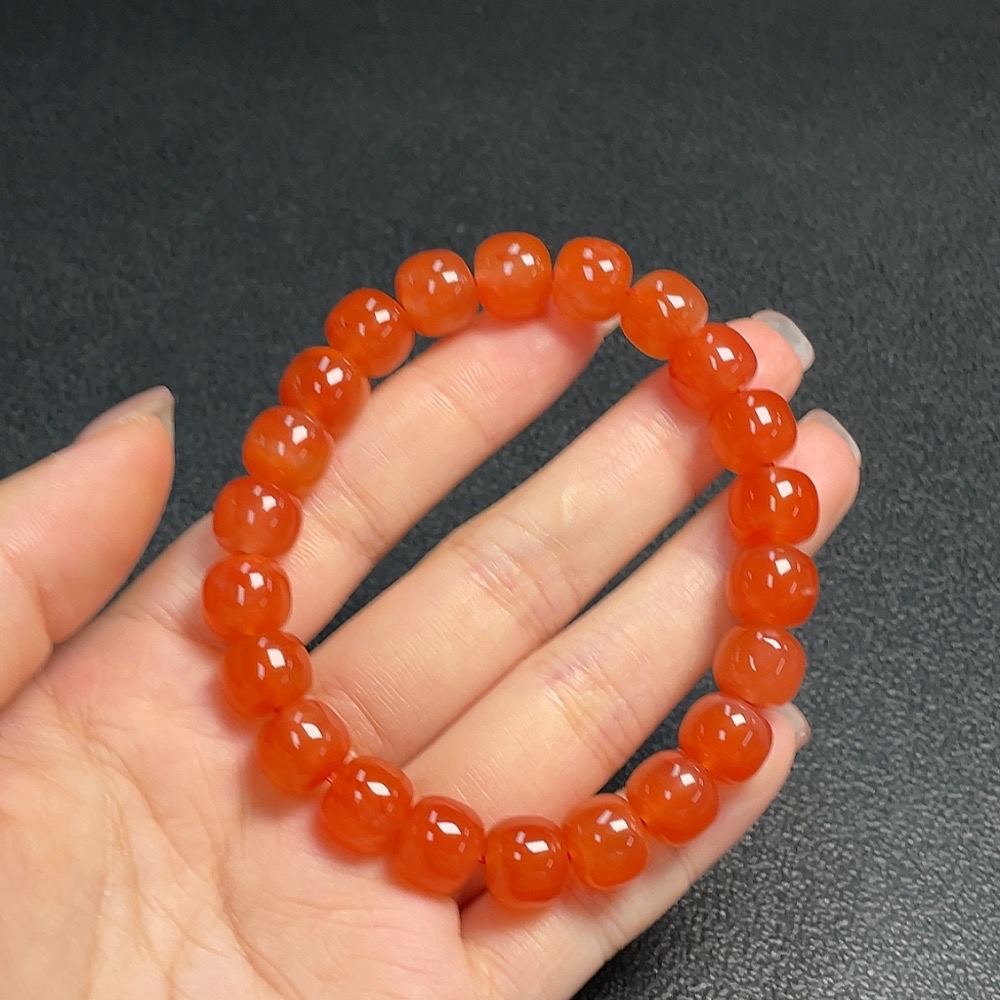 Red Agate Bracelet with Visible Organic Matter, Total Weight Approx. 32.1g, Size About 9.8mm