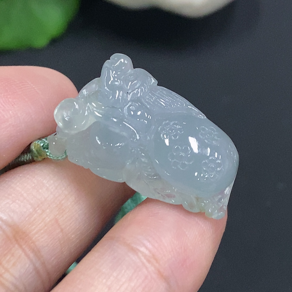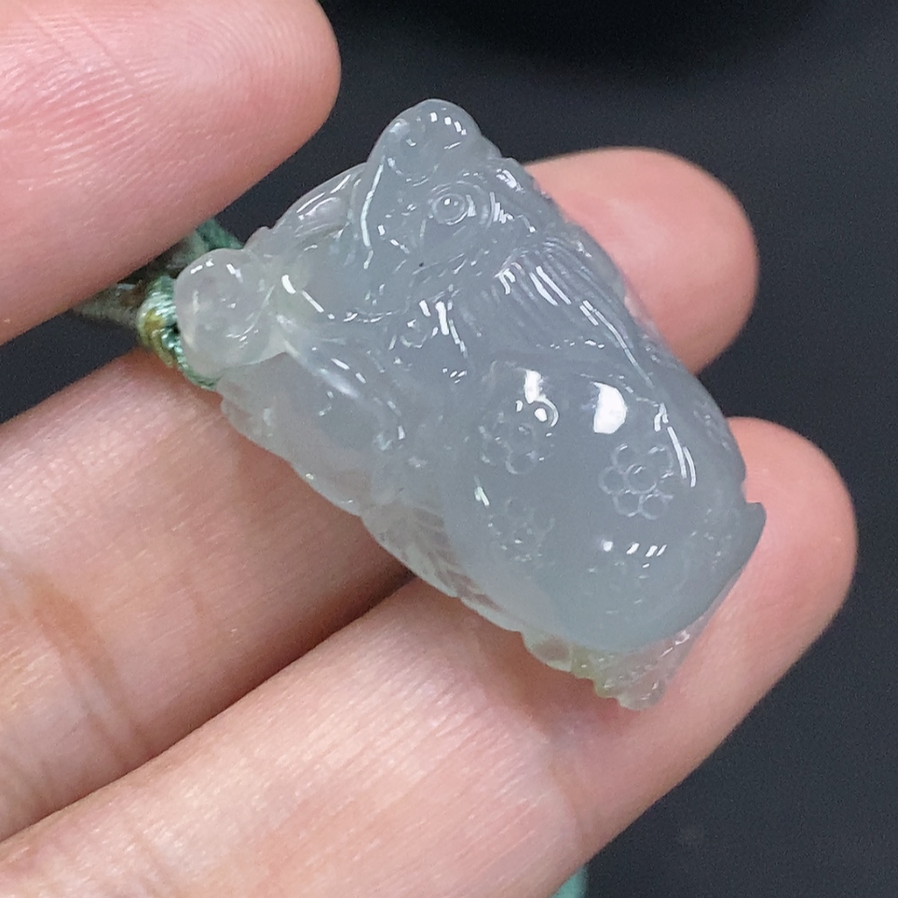 Jadeite Three-legged Golden Toad Pendant, Total Weight Including Cord Approximately 13.5g