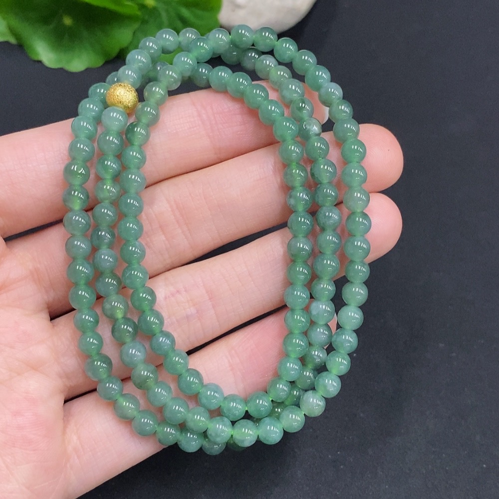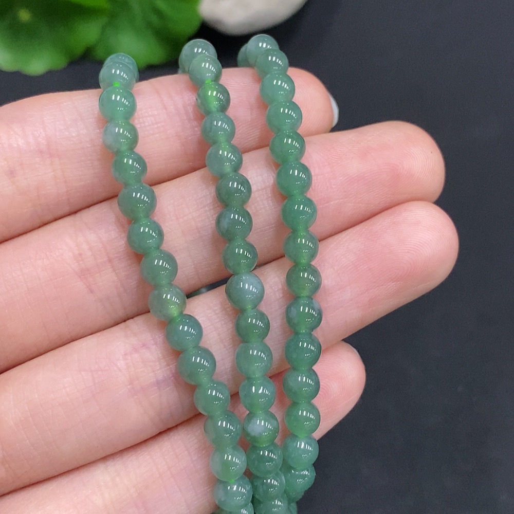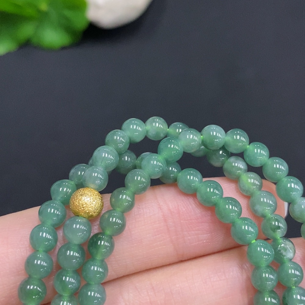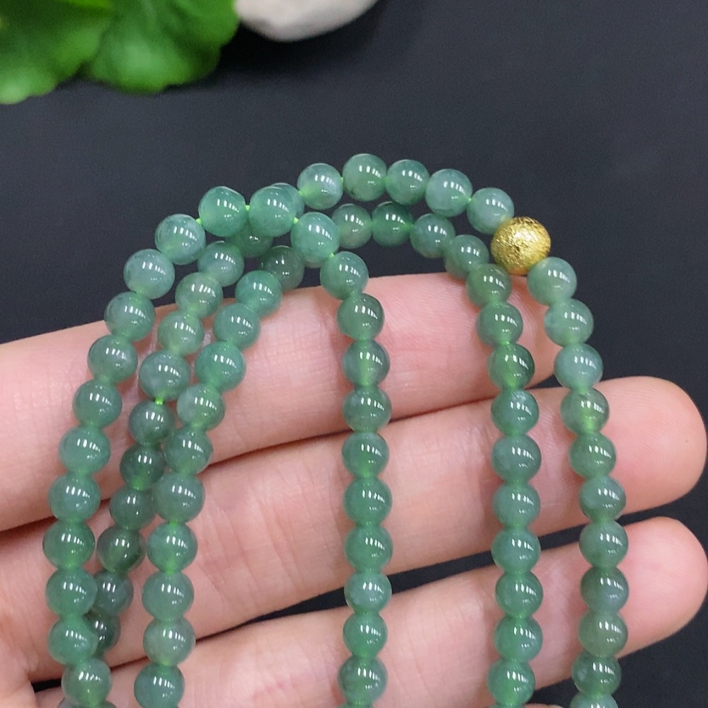 Jadeite Bead Necklace Non-Gold Inlaid Total Weight Approximately 25.2g Size About 4.8mm