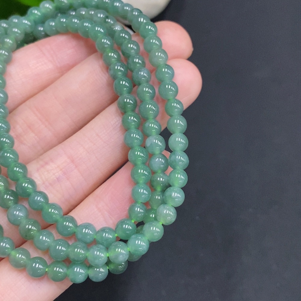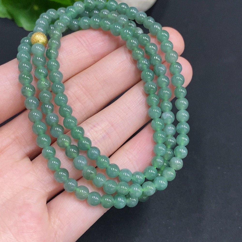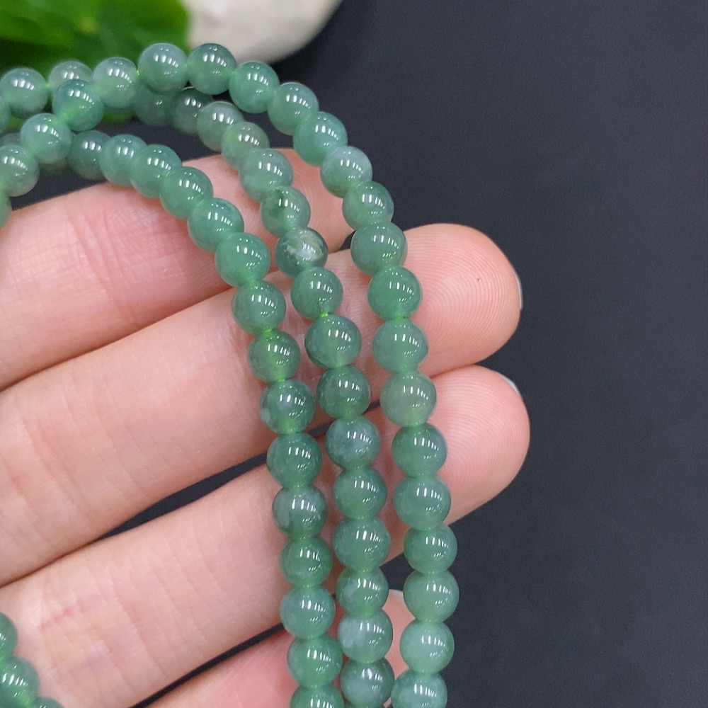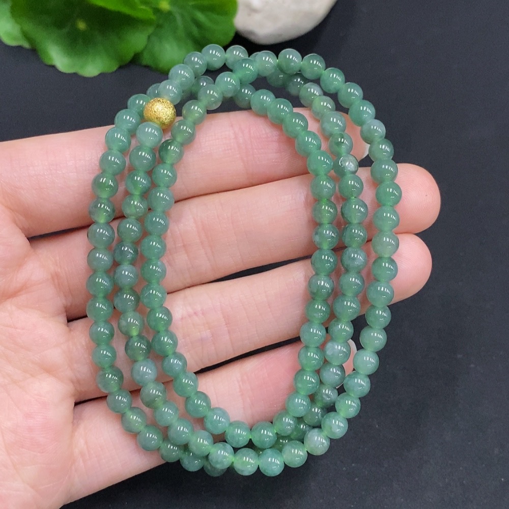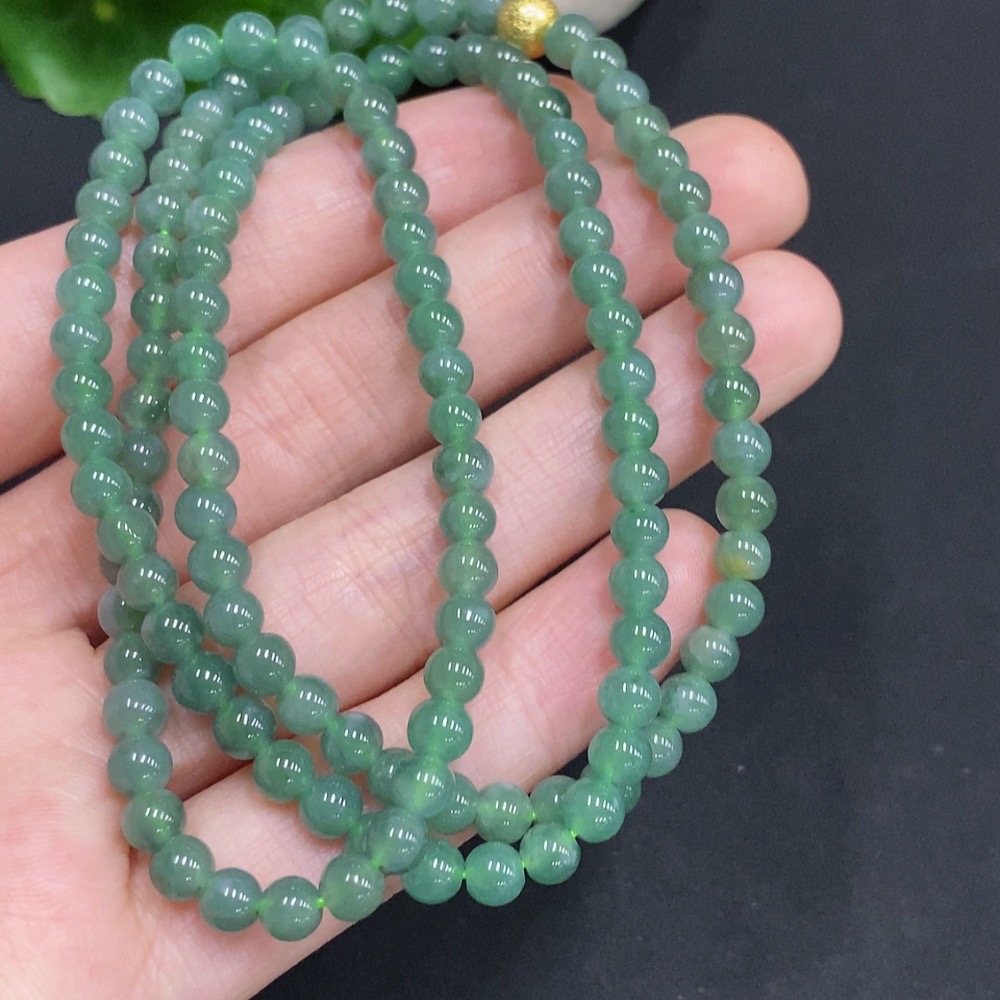 Jadeite Bead Necklace Non-Gold Inlaid Total Weight Approximately 25.2g Size About 4.8mm