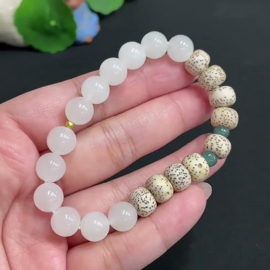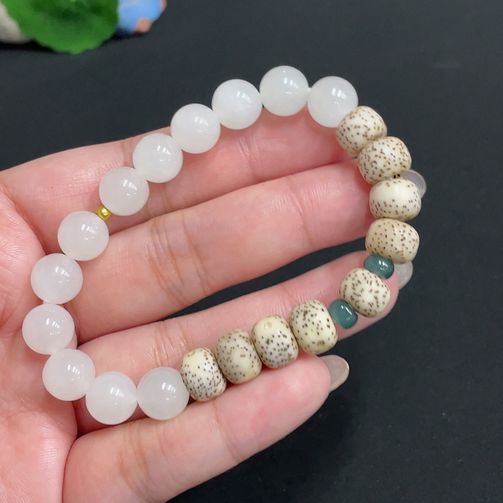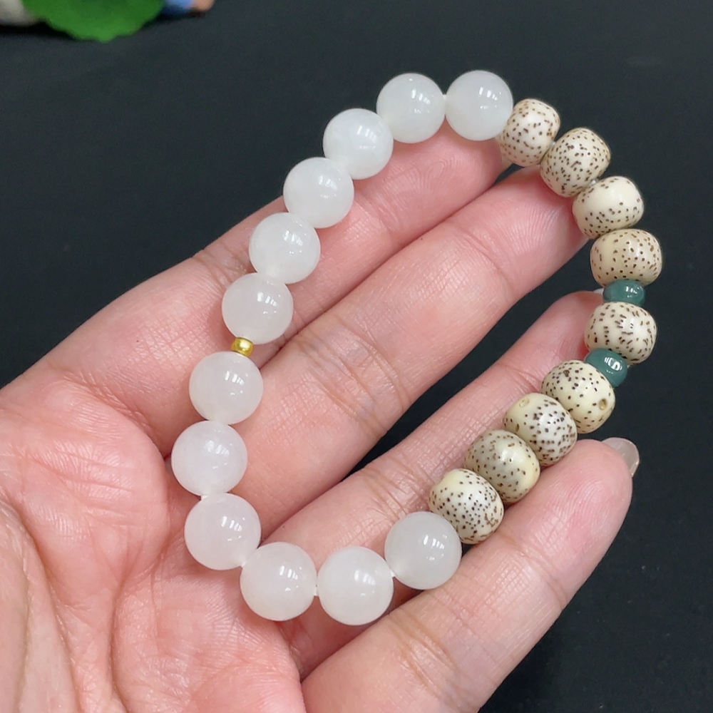 Hetian Jade Bracelet, Approx. 9.2mm, Total Weight Approx. 21.5g, 99% Gold Content, Contains Other Mineral Components, Beads Not Hetian Jade