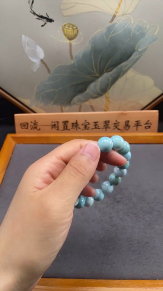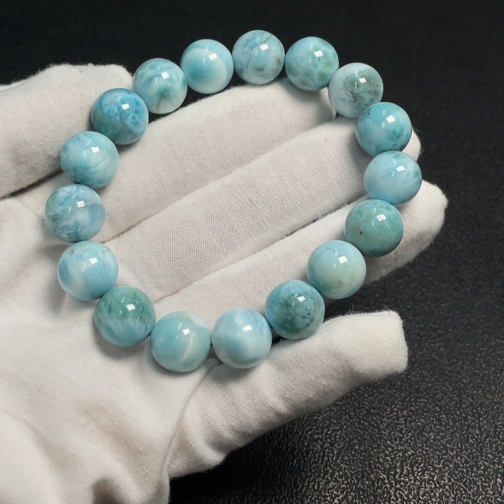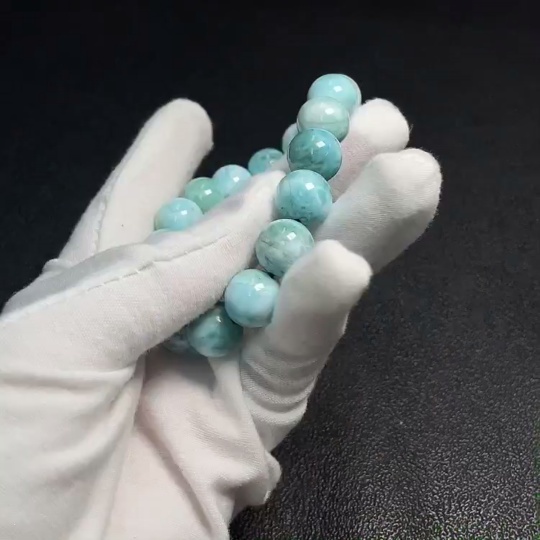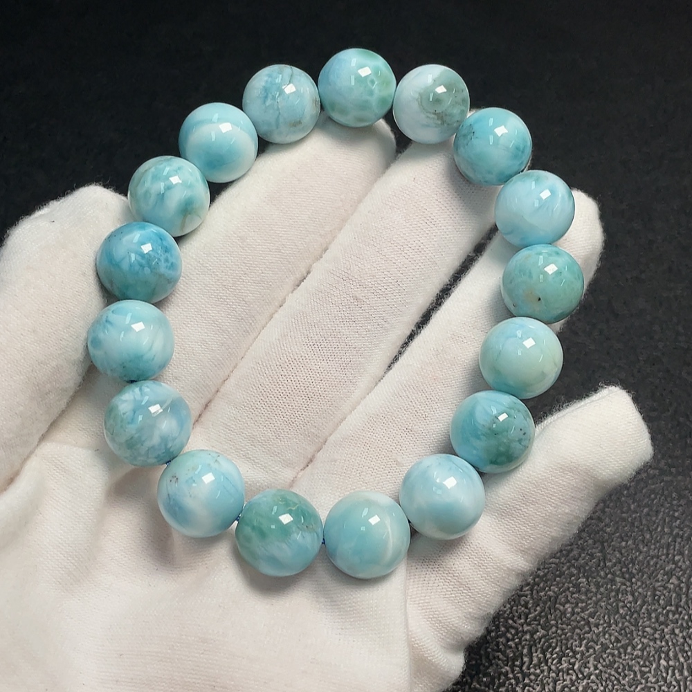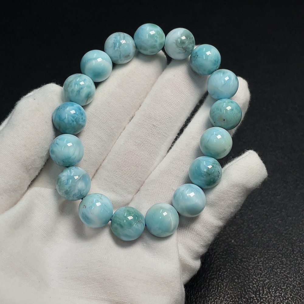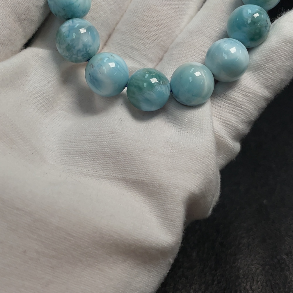 Larimar bead bracelet with visible organic matter, total weight approx. 44.42g, bead size 12mm