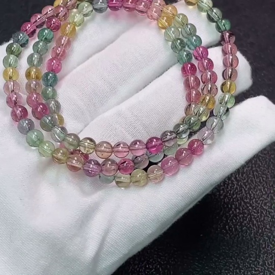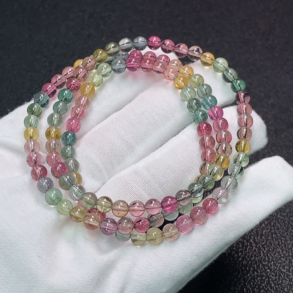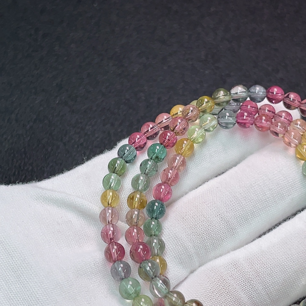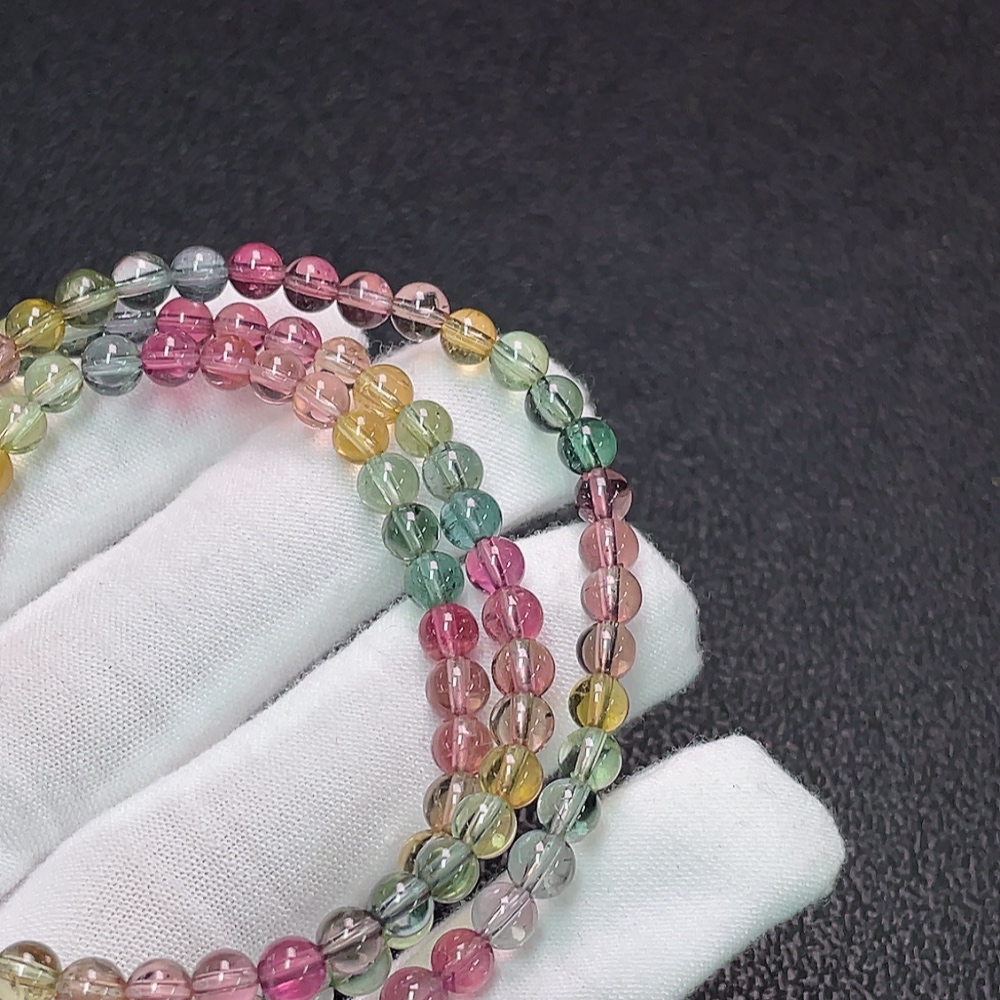 Tourmaline bead strand with visible organic matter, total weight approximately 21.26g, bead size about 5mm