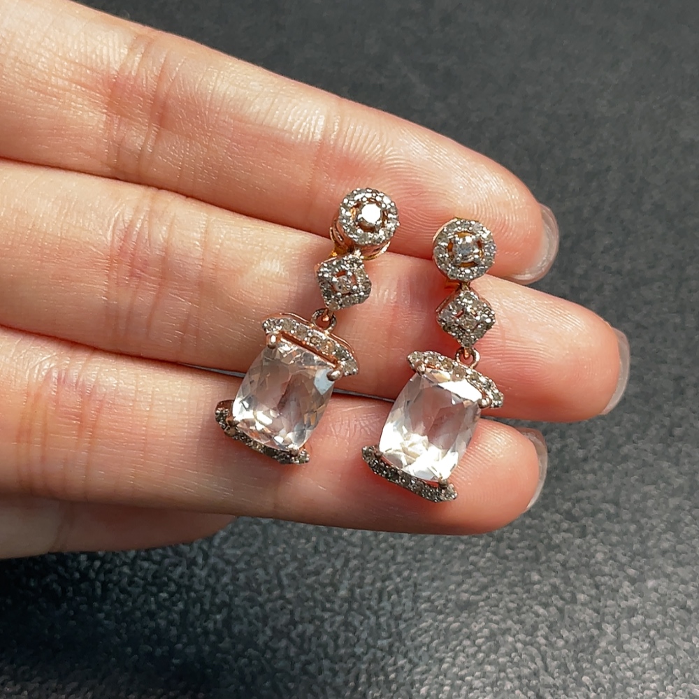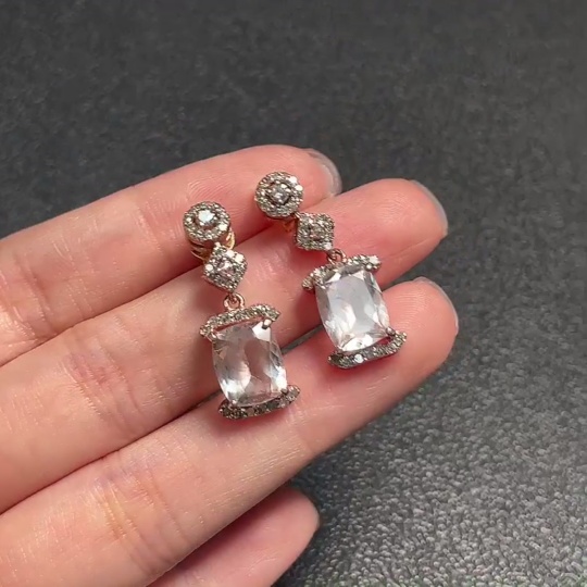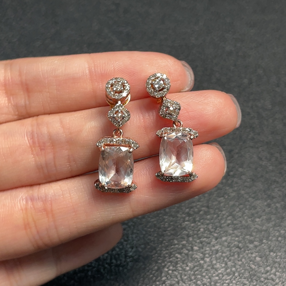 Beryl earrings, color origin undetermined, non-gold, accented with diamonds, total weight approximately 6.03 grams