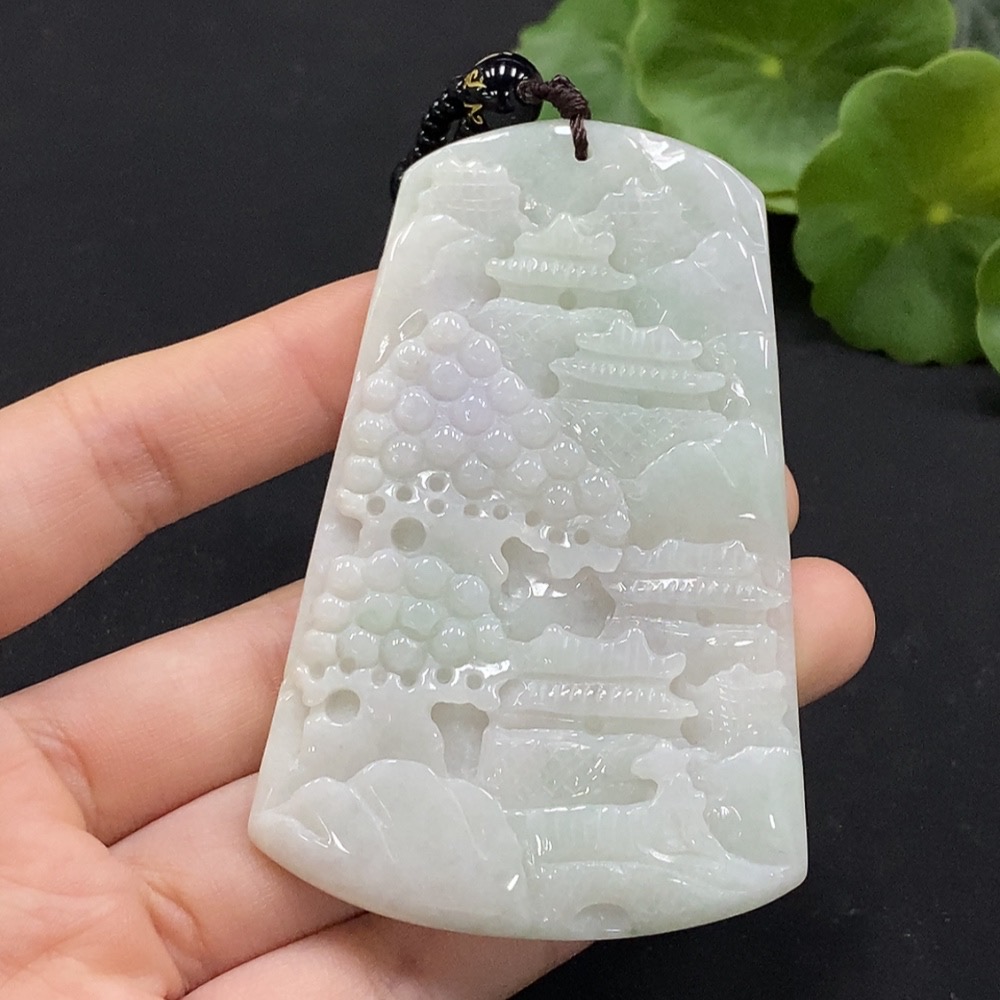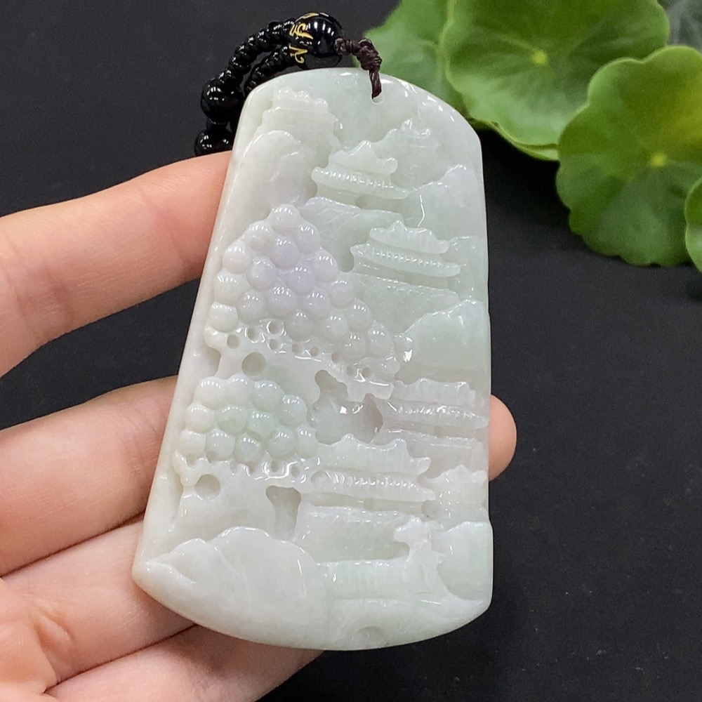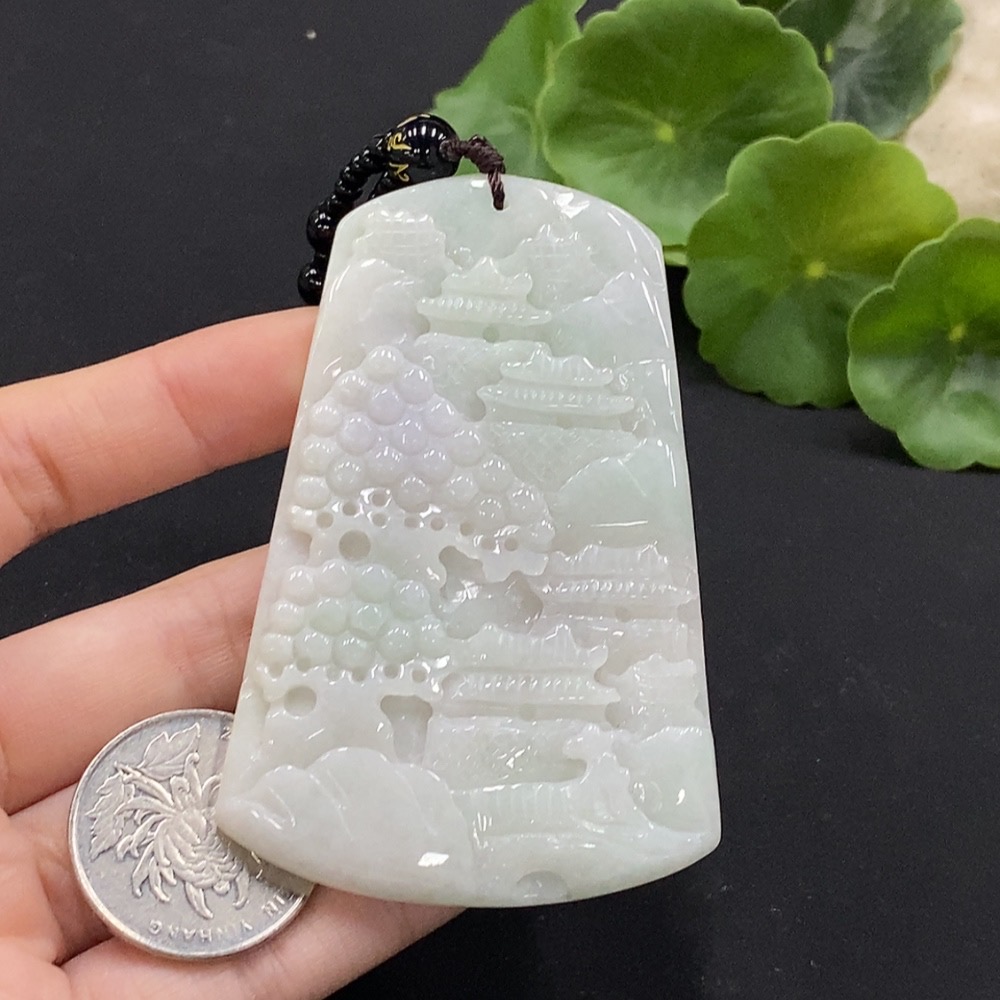 Jadeite Landscape Pendant with Non-A Grade Chain, Total Weight Approx. 71.6g