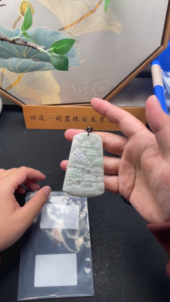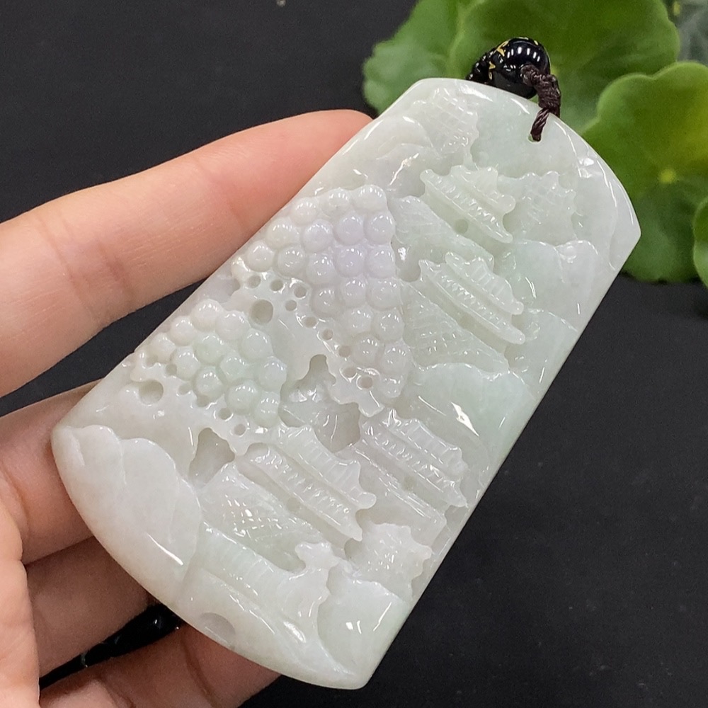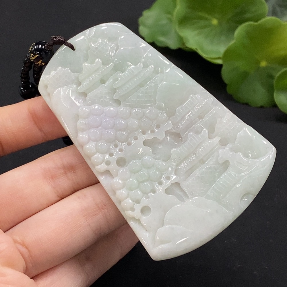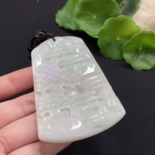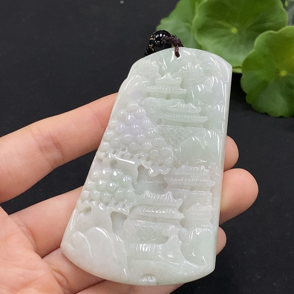 Jadeite Landscape Pendant with Non-A Grade Chain, Total Weight Approx. 71.6g