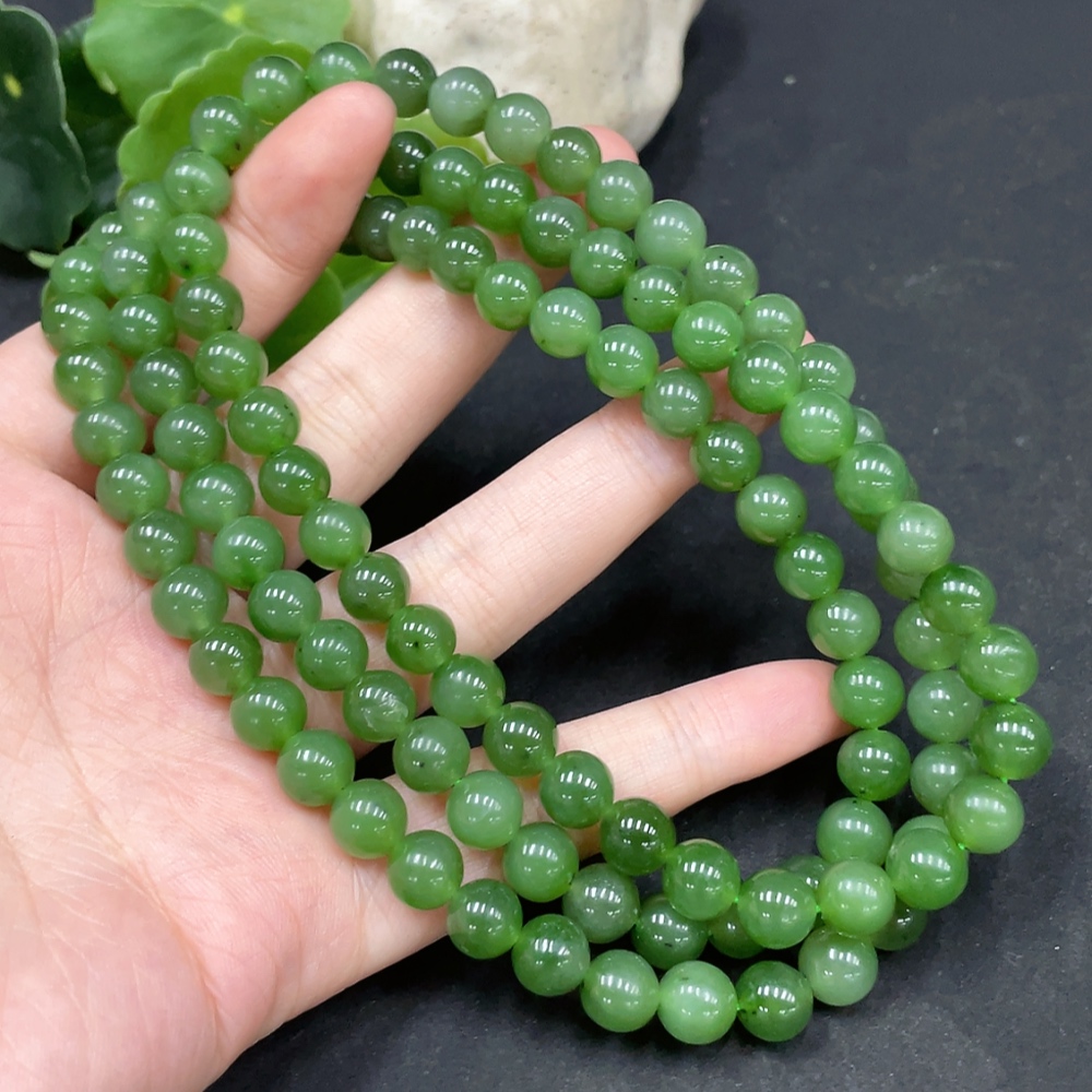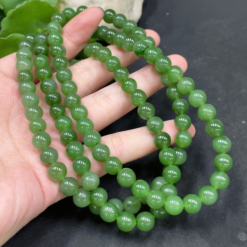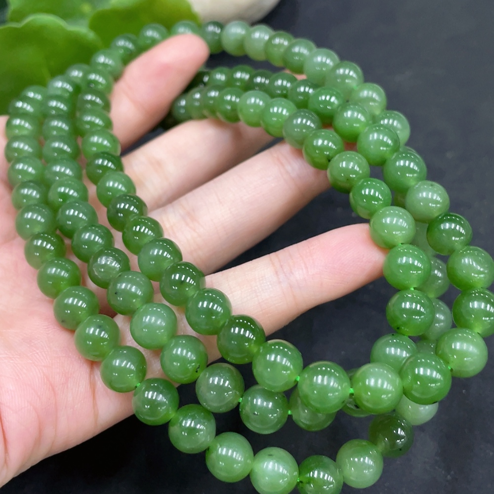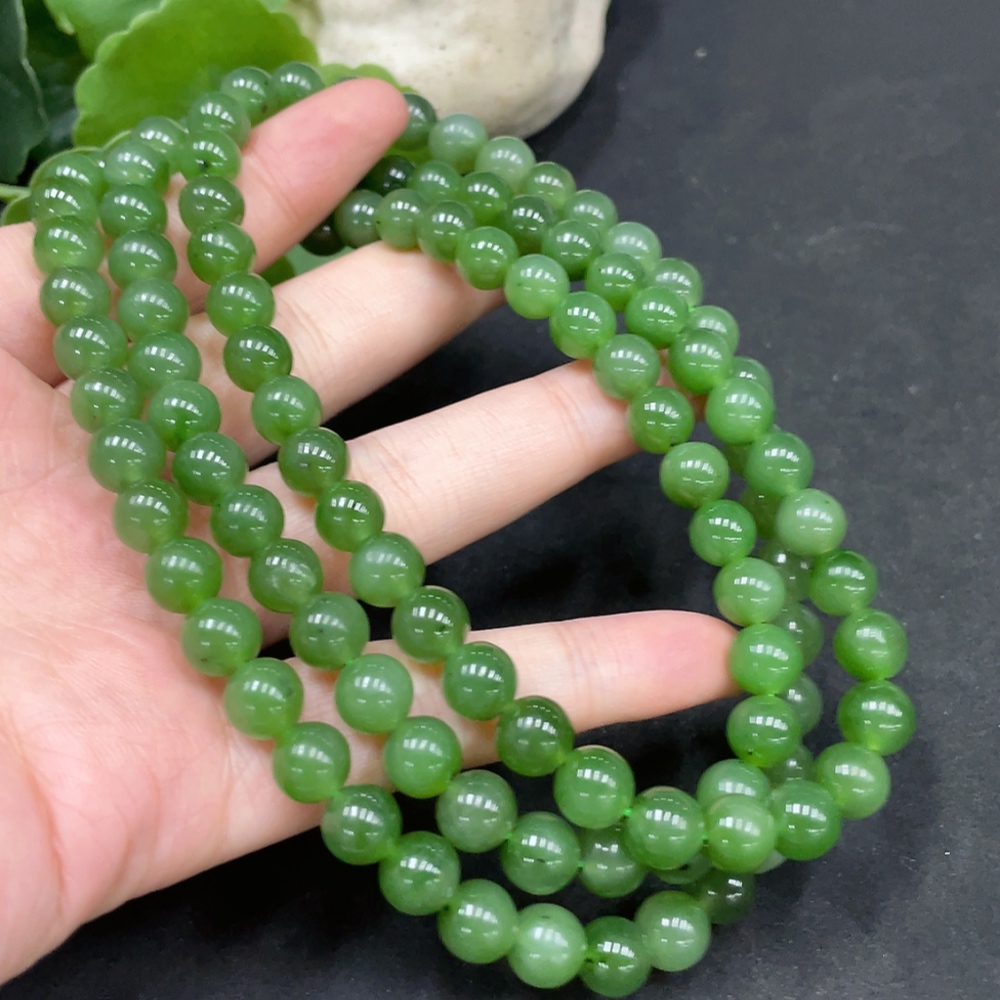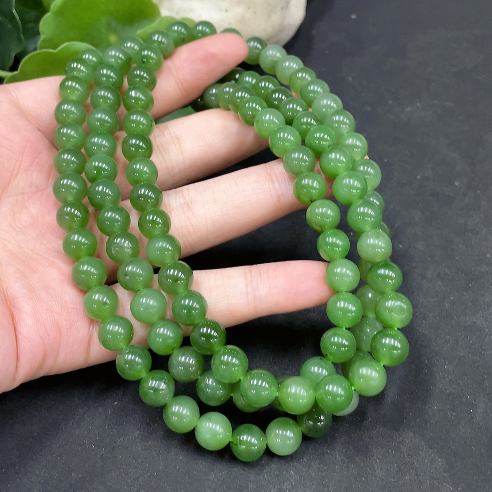 Hetian Jade Bead Necklace, approx. 7.8mm, total weight approx. 82.5g