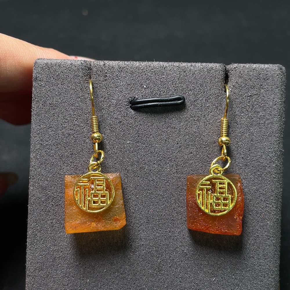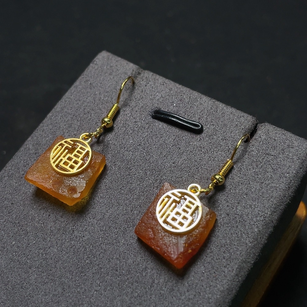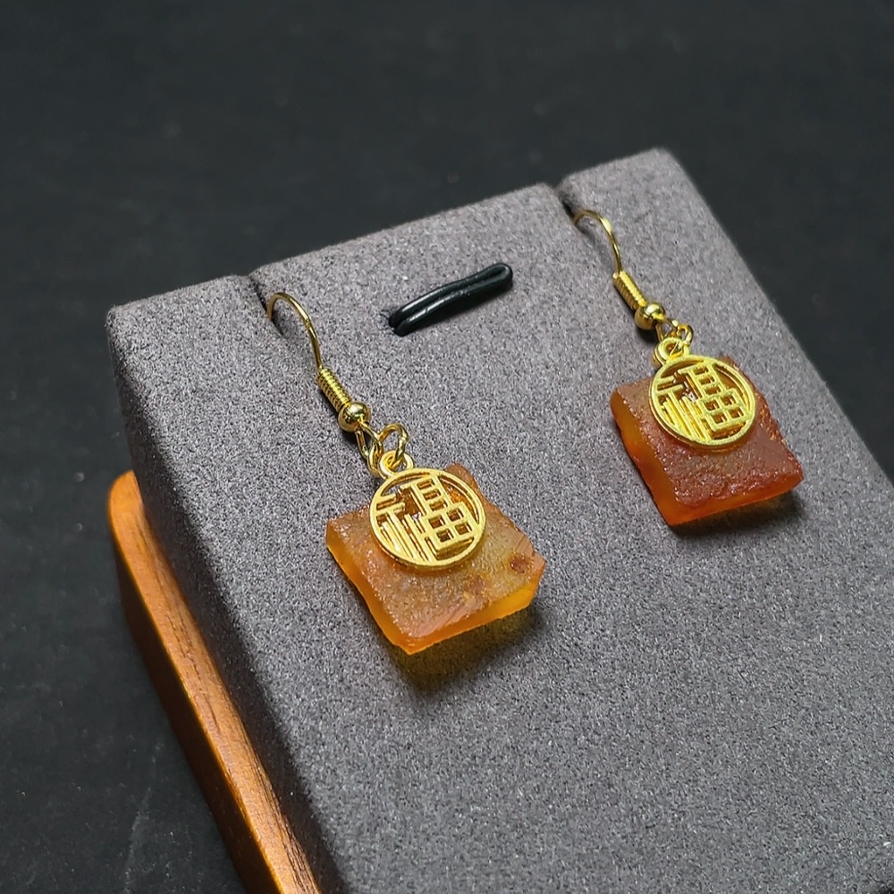 Amber Beeswax Earrings Non-Gold Total Weight Approx. 2.7g Size 13.7mm