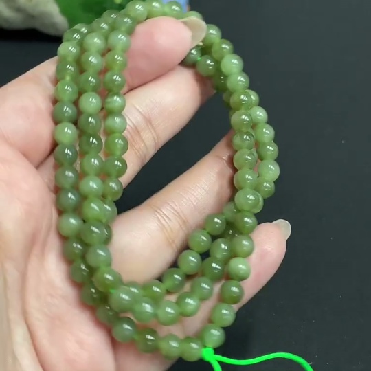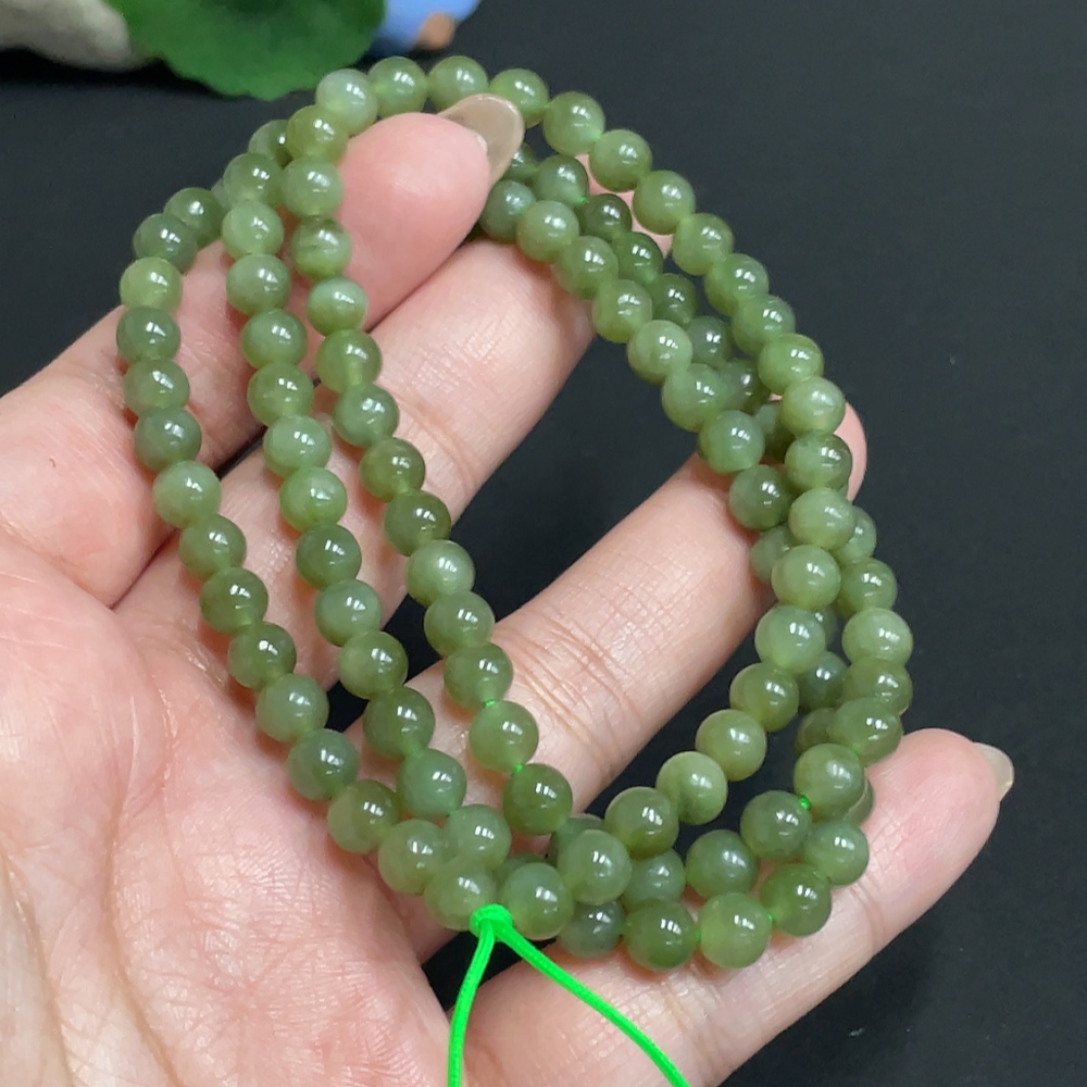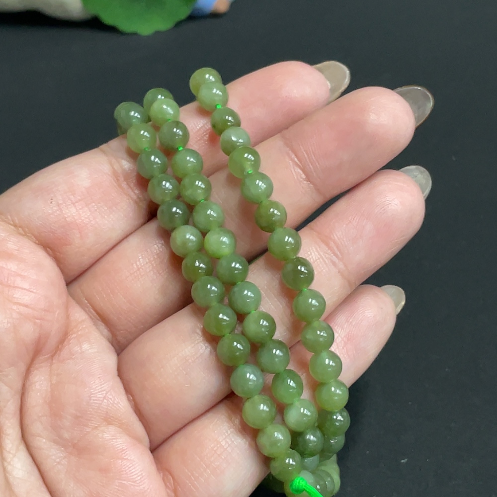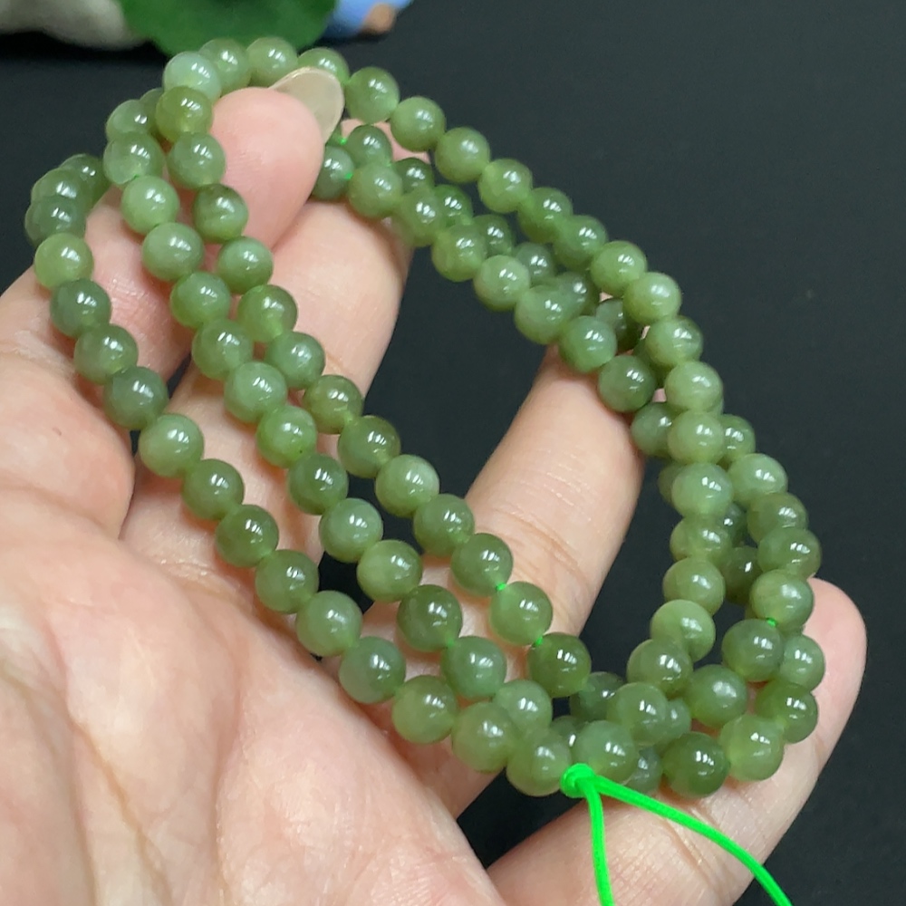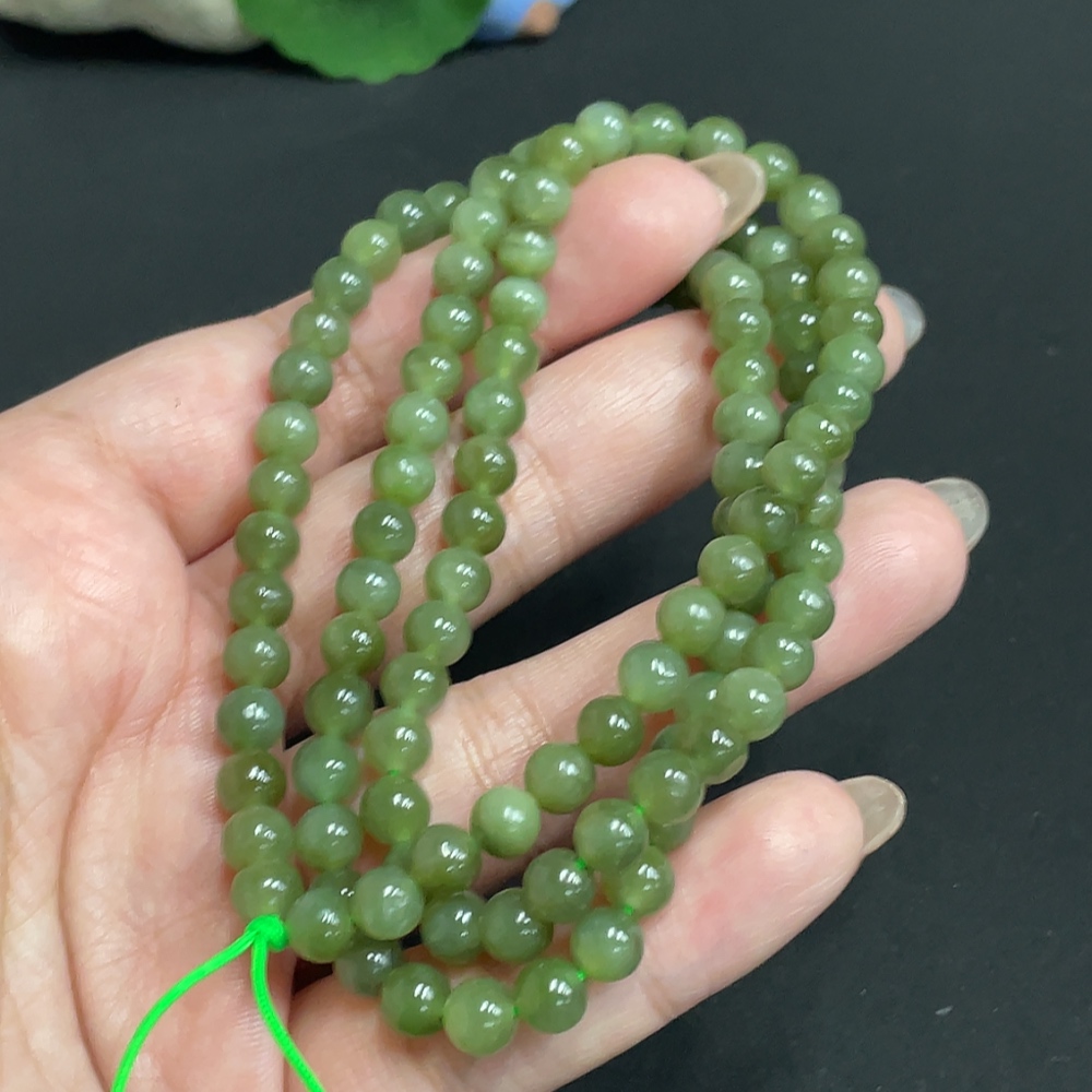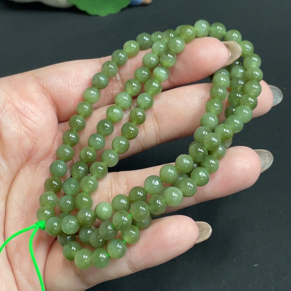 Hetian Jade Bead Necklace, Approx. 5.9mm, Total Weight Approx. 34.6g, Containing Other Mineral Components