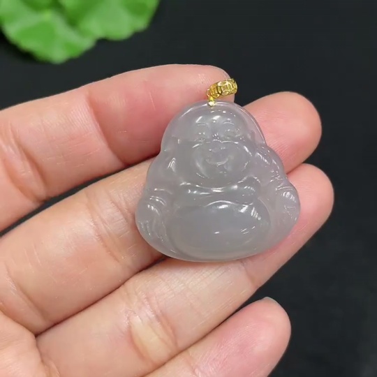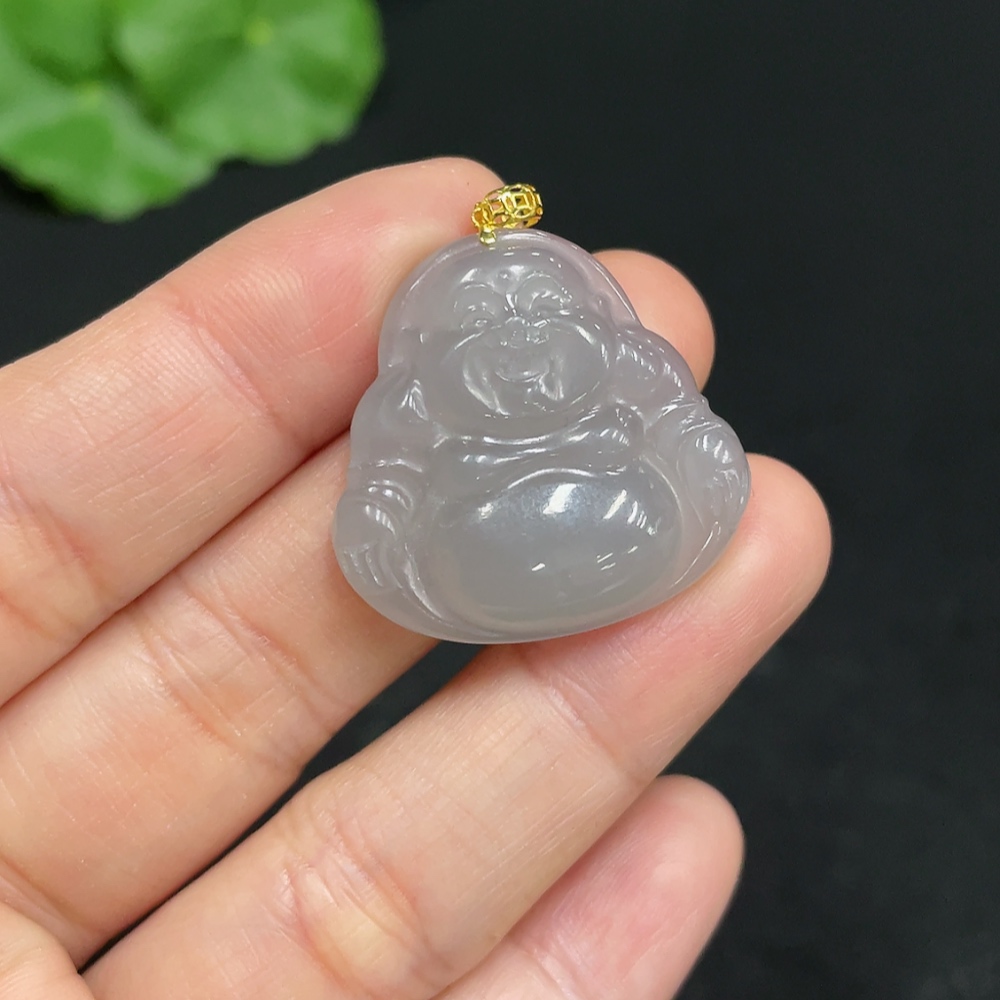 Hetian Jade Pendant - Buddha - 18K Gold Clasp - Total Weight Approx. 5.5g