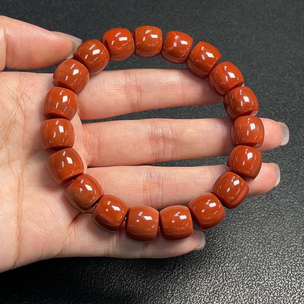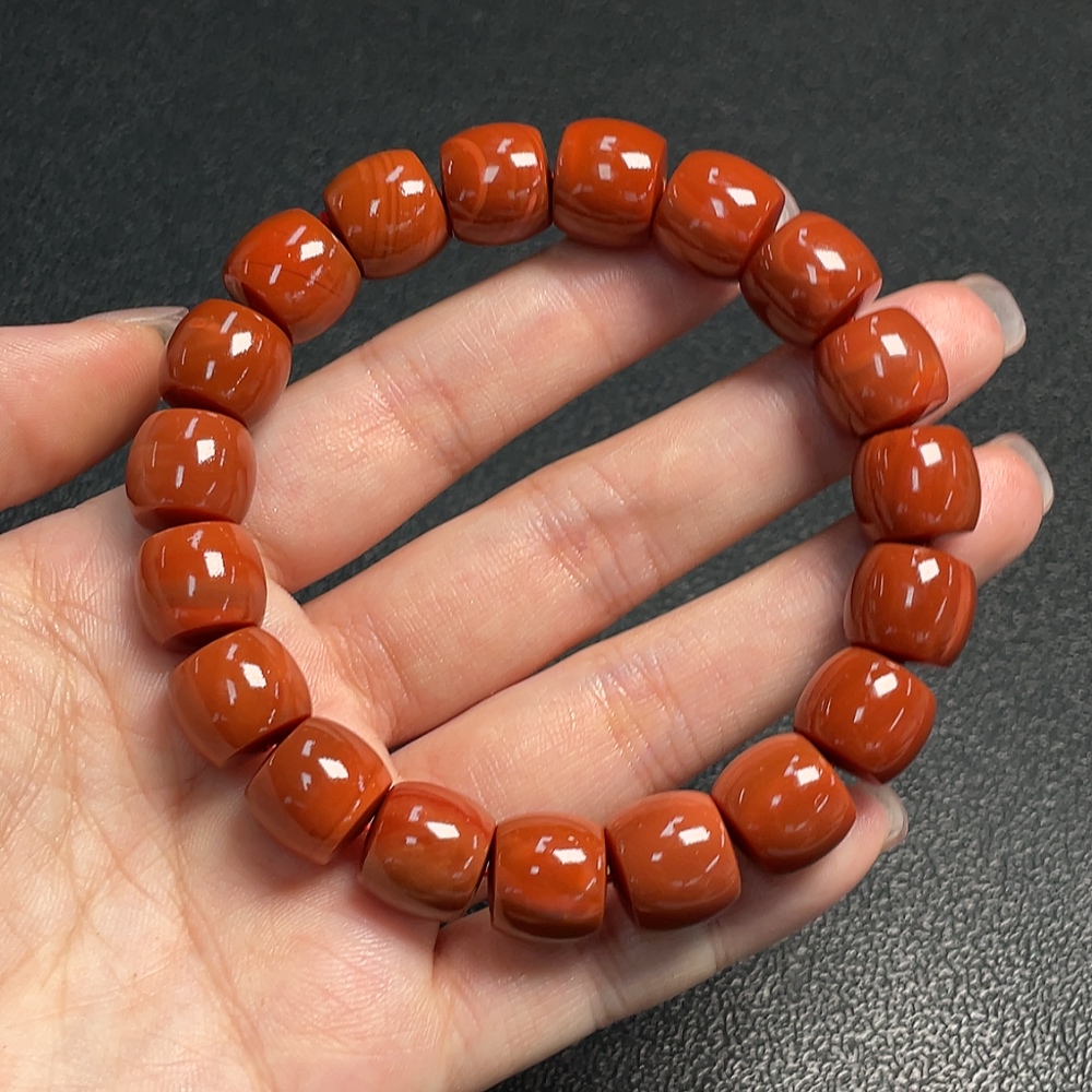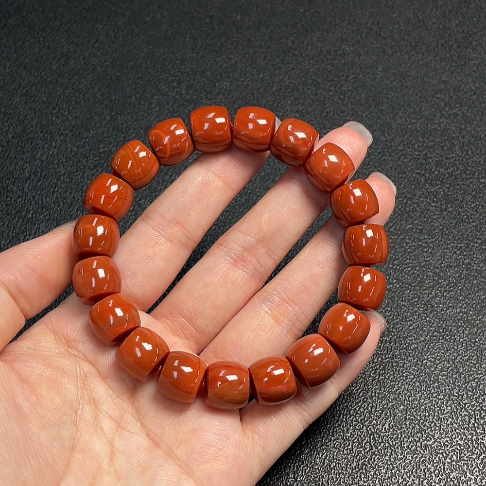 Red Agate Bracelet with Visible Organic Matter, Total Weight Approx. 51.65g, Size About 12mm