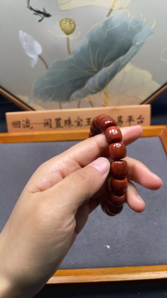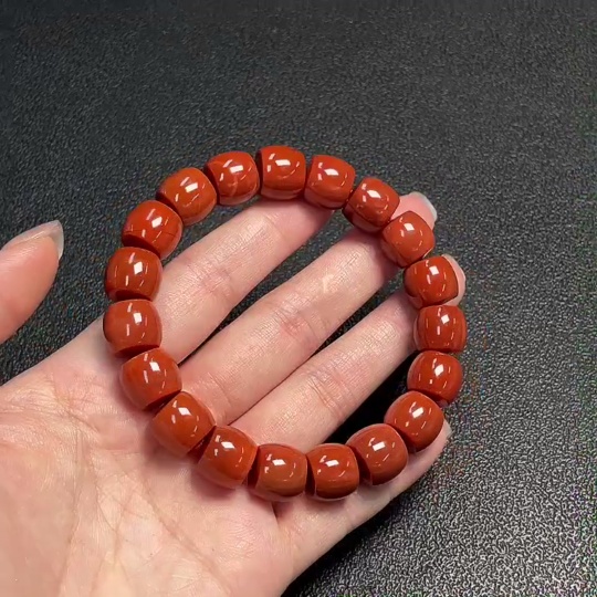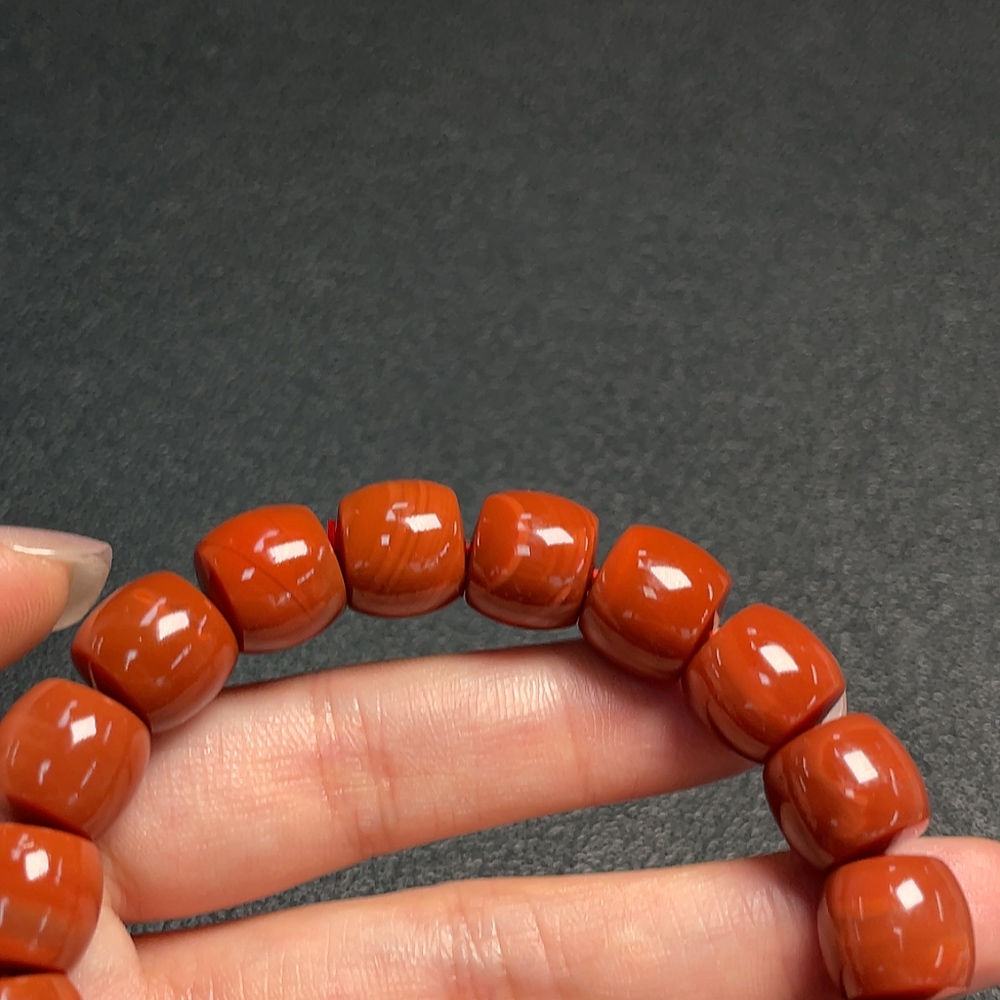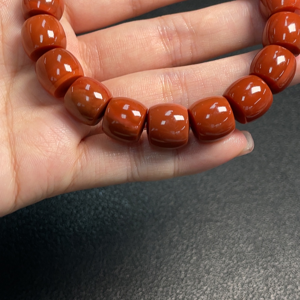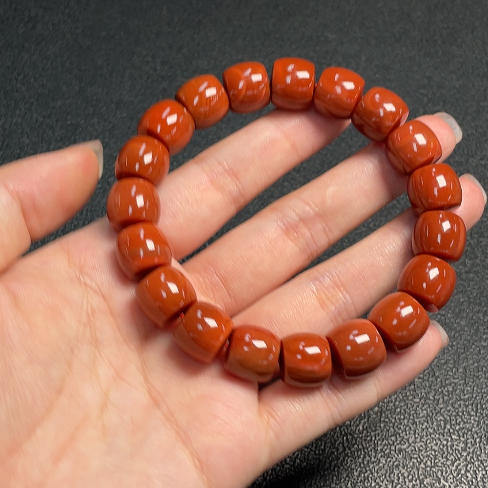 Red Agate Bracelet with Visible Organic Matter, Total Weight Approx. 51.65g, Size About 12mm