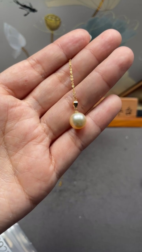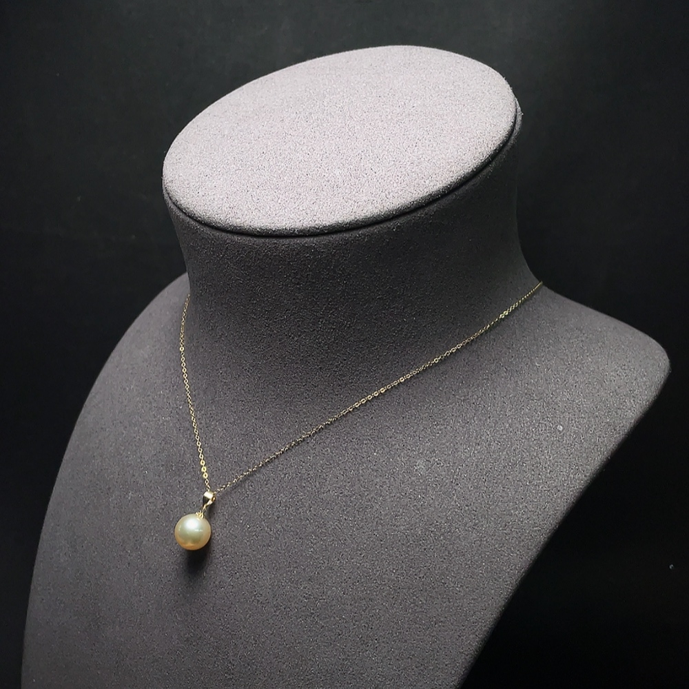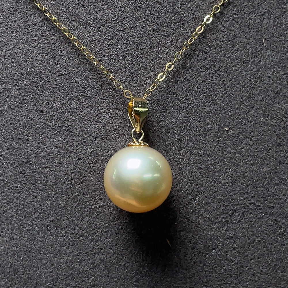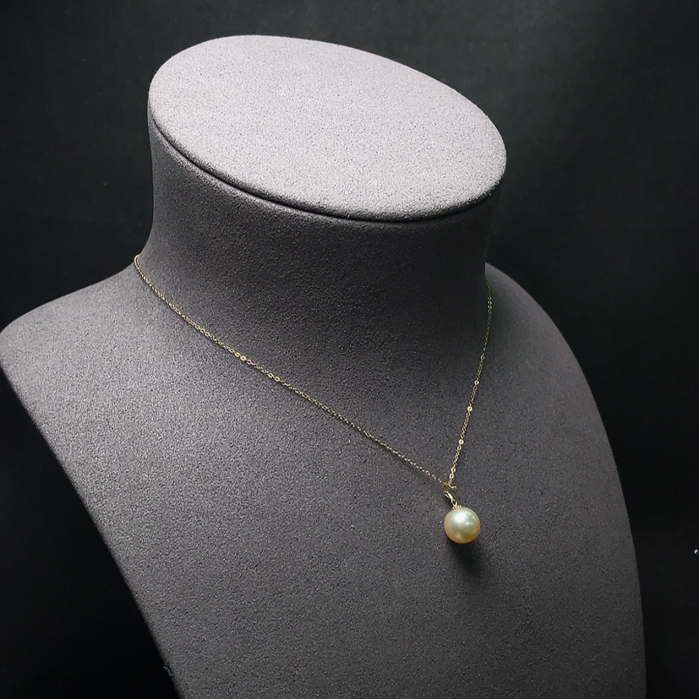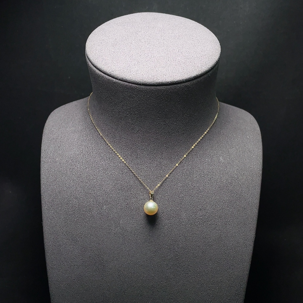 Seawater Pearl Necklace, Non-Gold Chain, 18K Gold Pendant, Color Origin Undetermined, Total Weight Approximately 1.73g, Size About 9.5mm