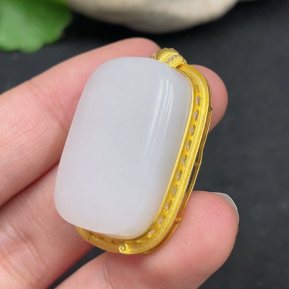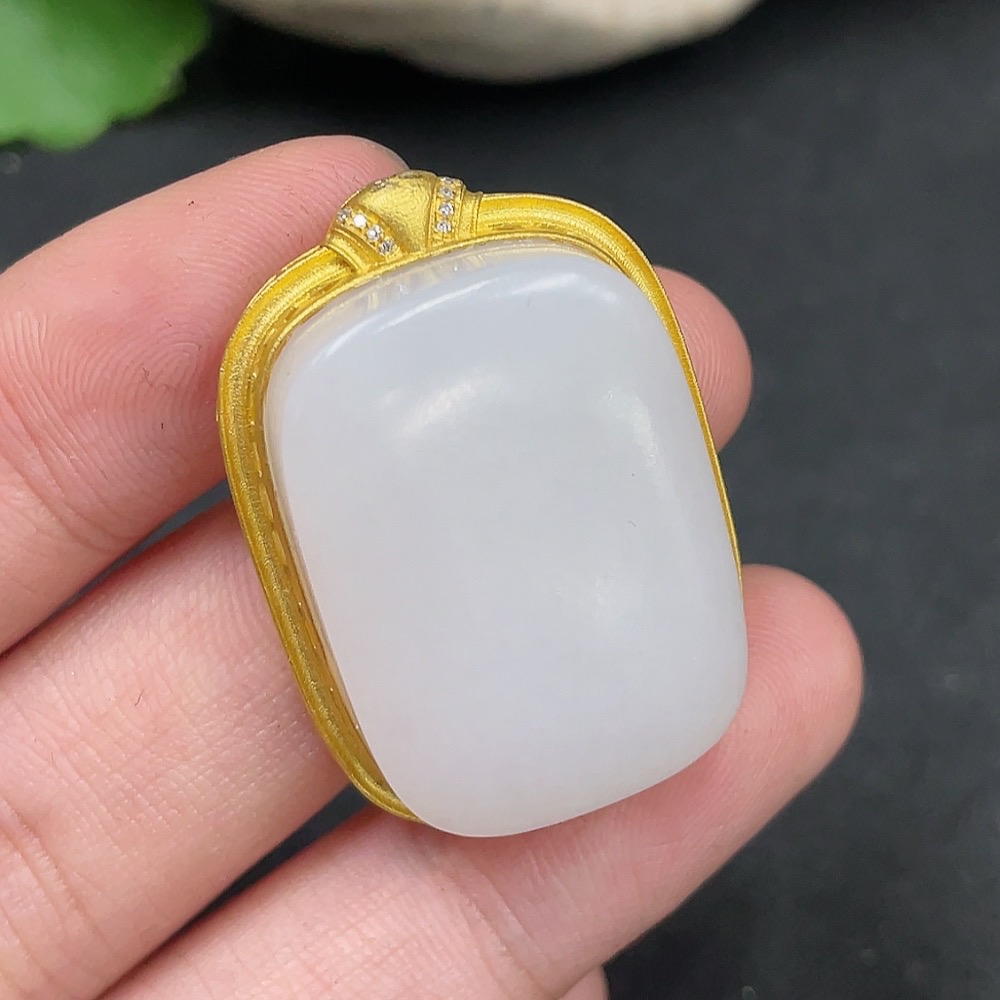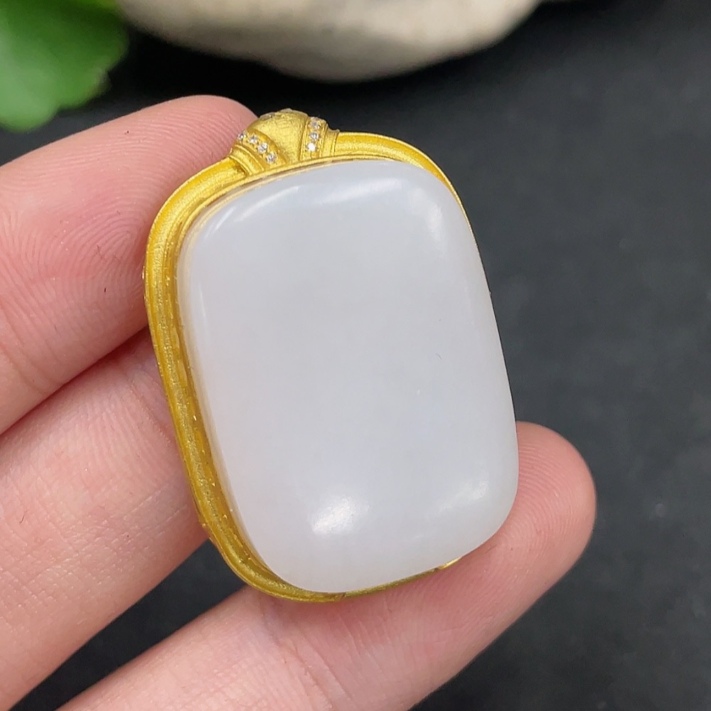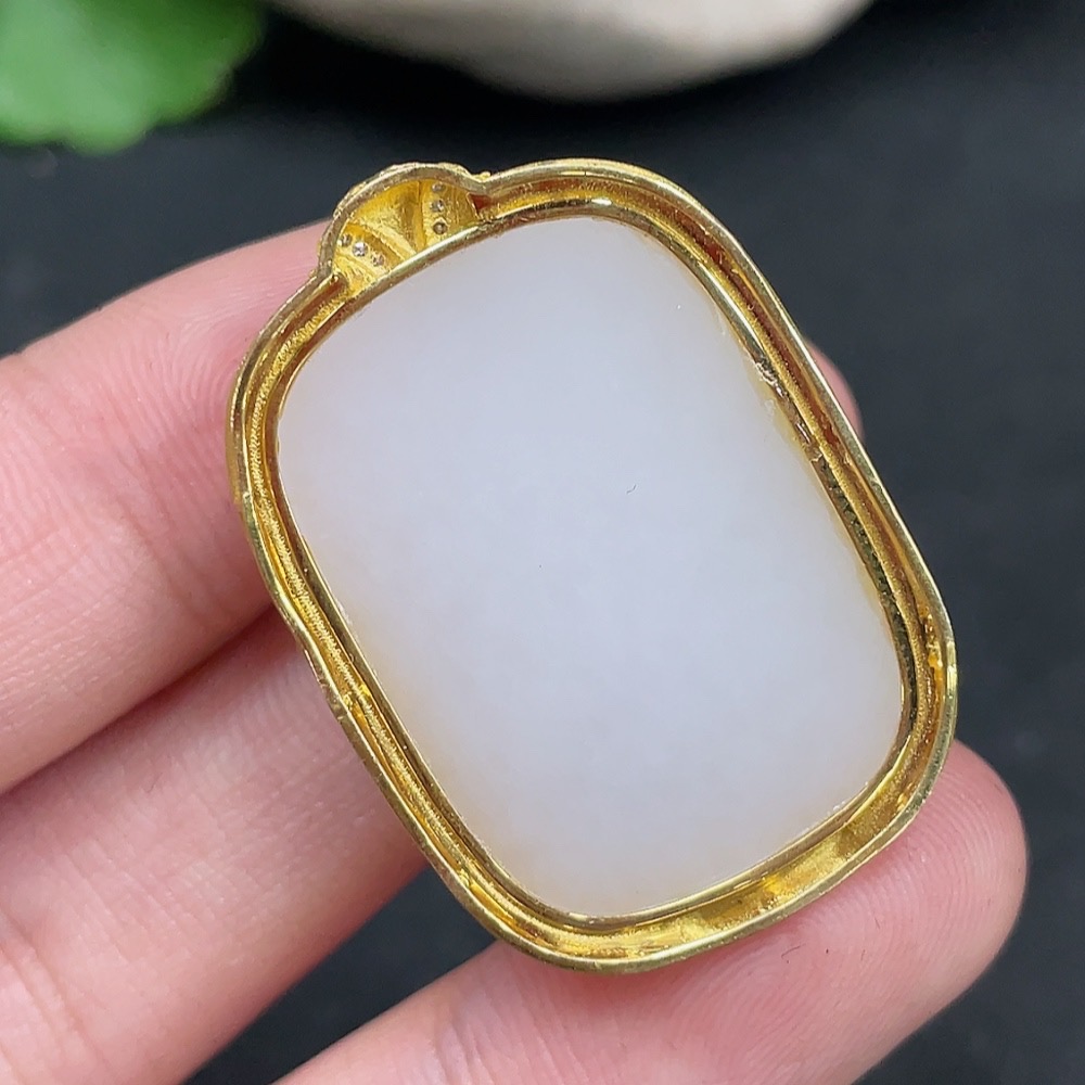 Hetian Jade Inlaid Pendant, Plain Pendant, No Stamp, 18K Gold Content, Total Weight Approx. 12.4g