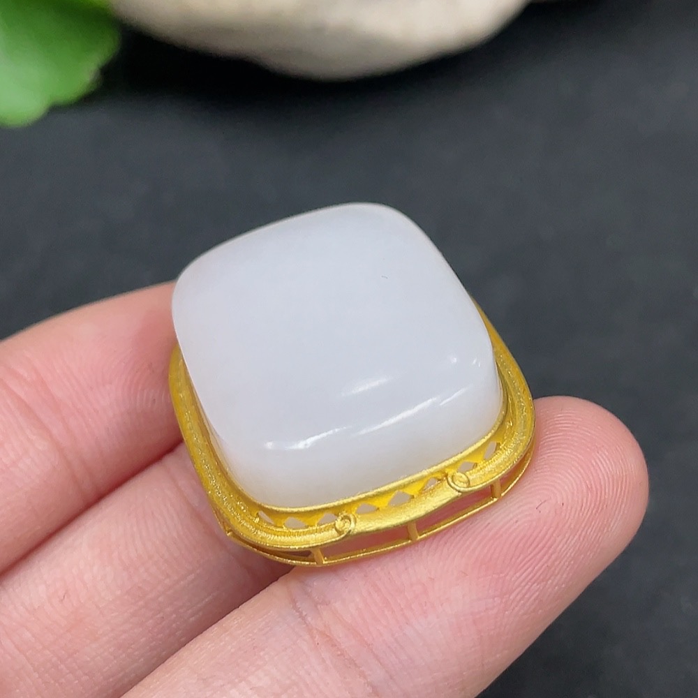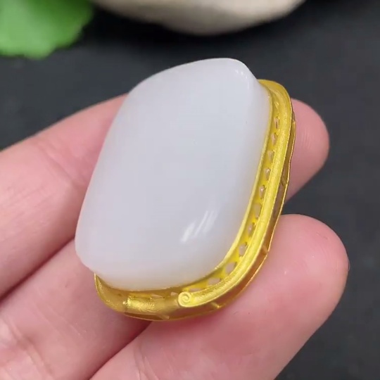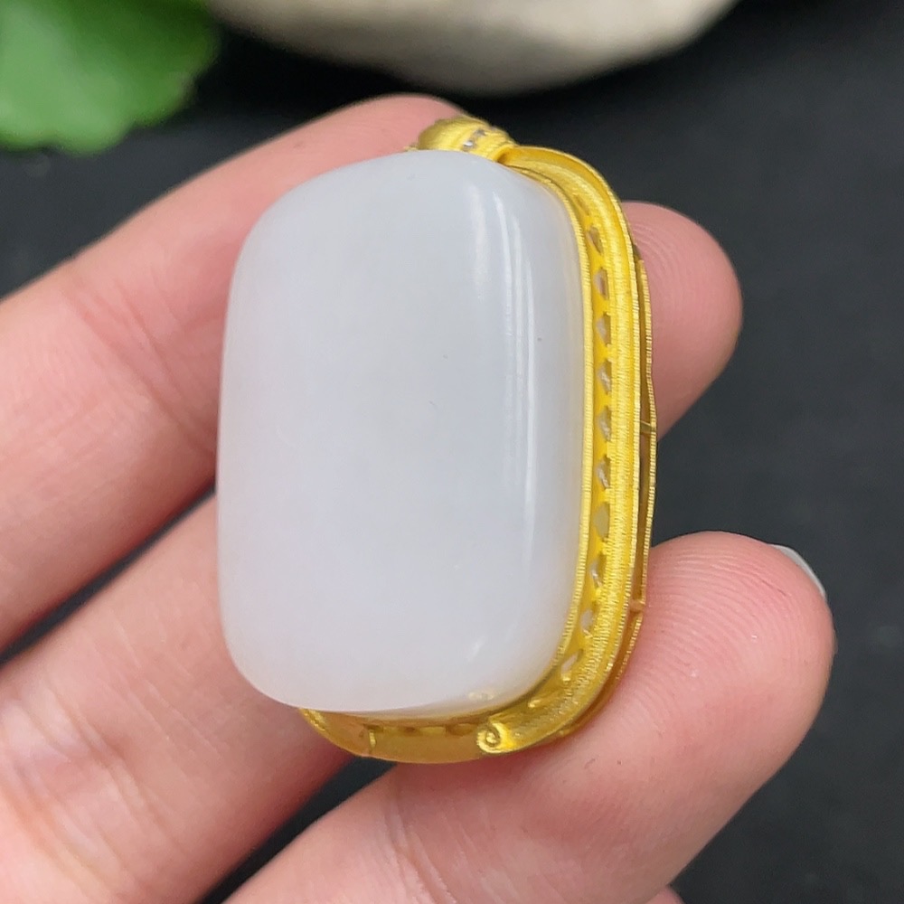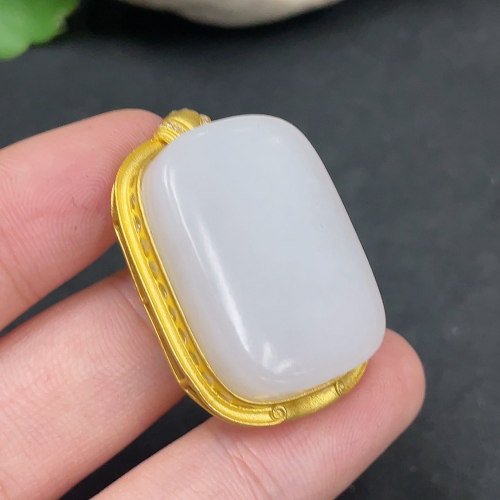 Hetian Jade Inlaid Pendant, Plain Pendant, No Stamp, 18K Gold Content, Total Weight Approx. 12.4g