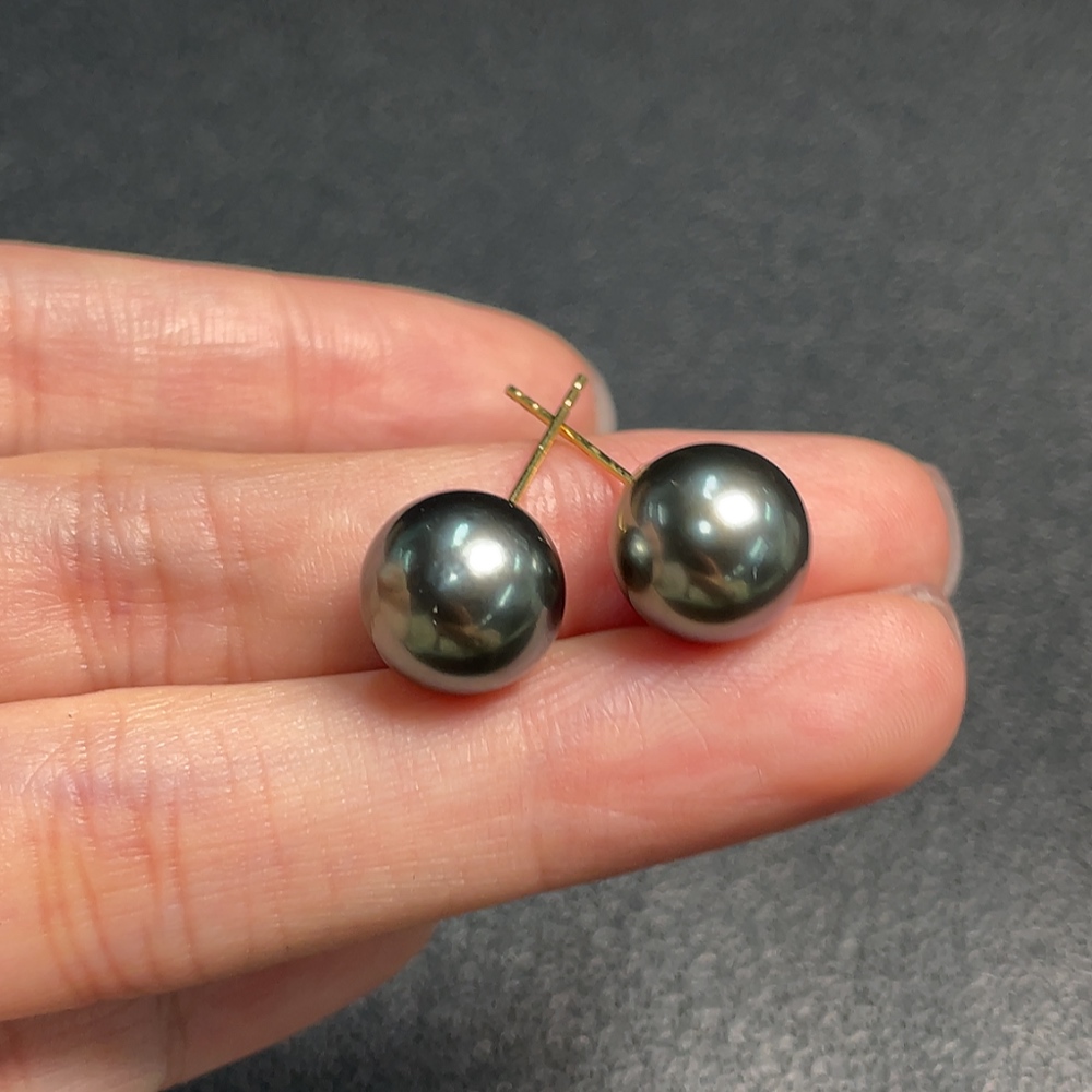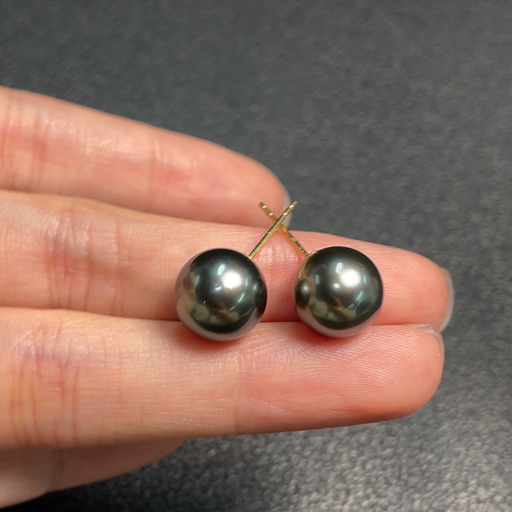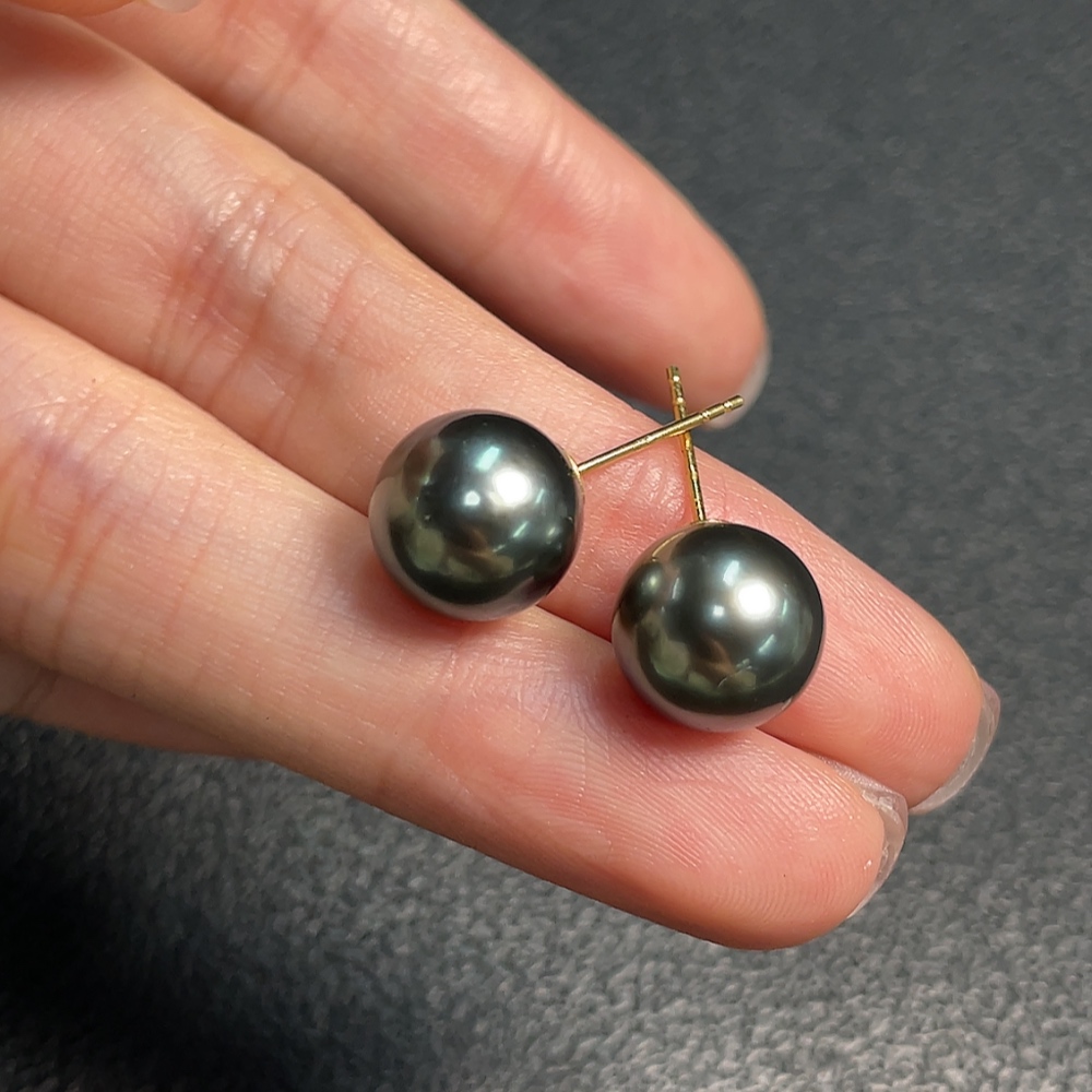 18K Gold Seawater Pearl Earrings Total Weight Approx. 4g Size 10.7mm