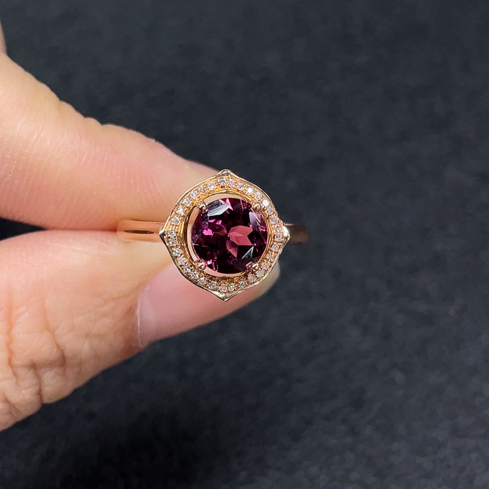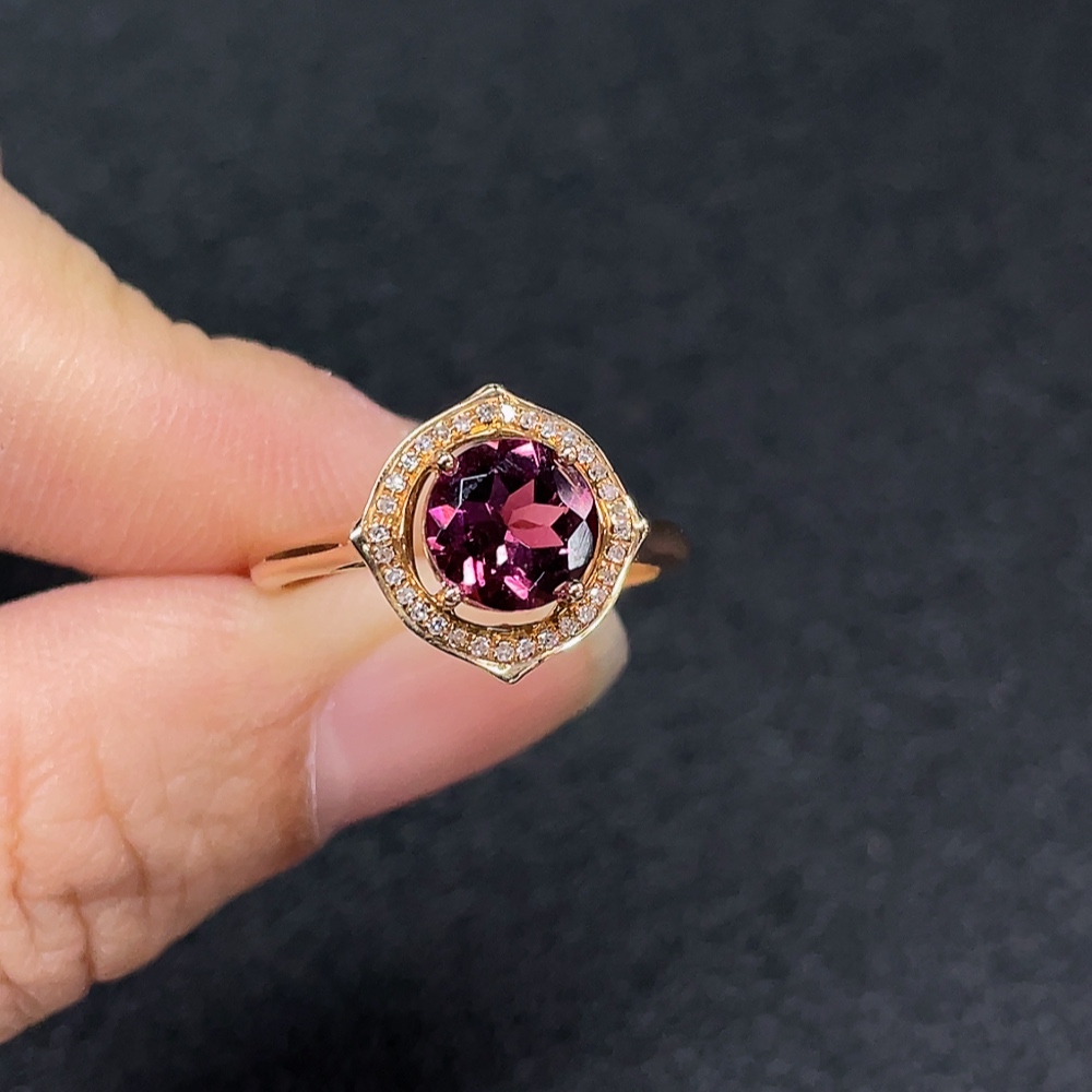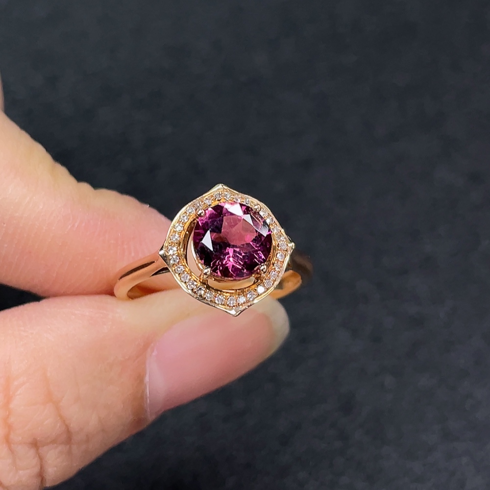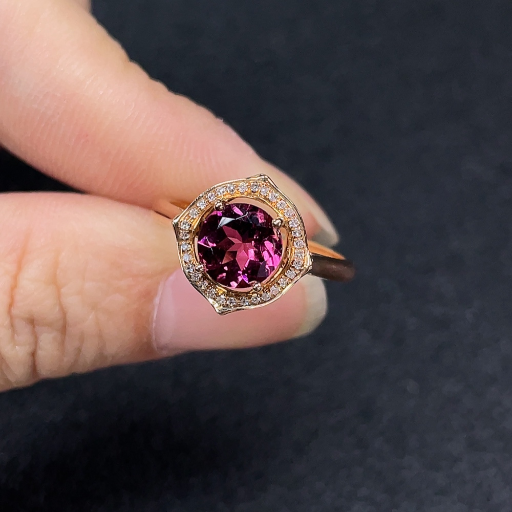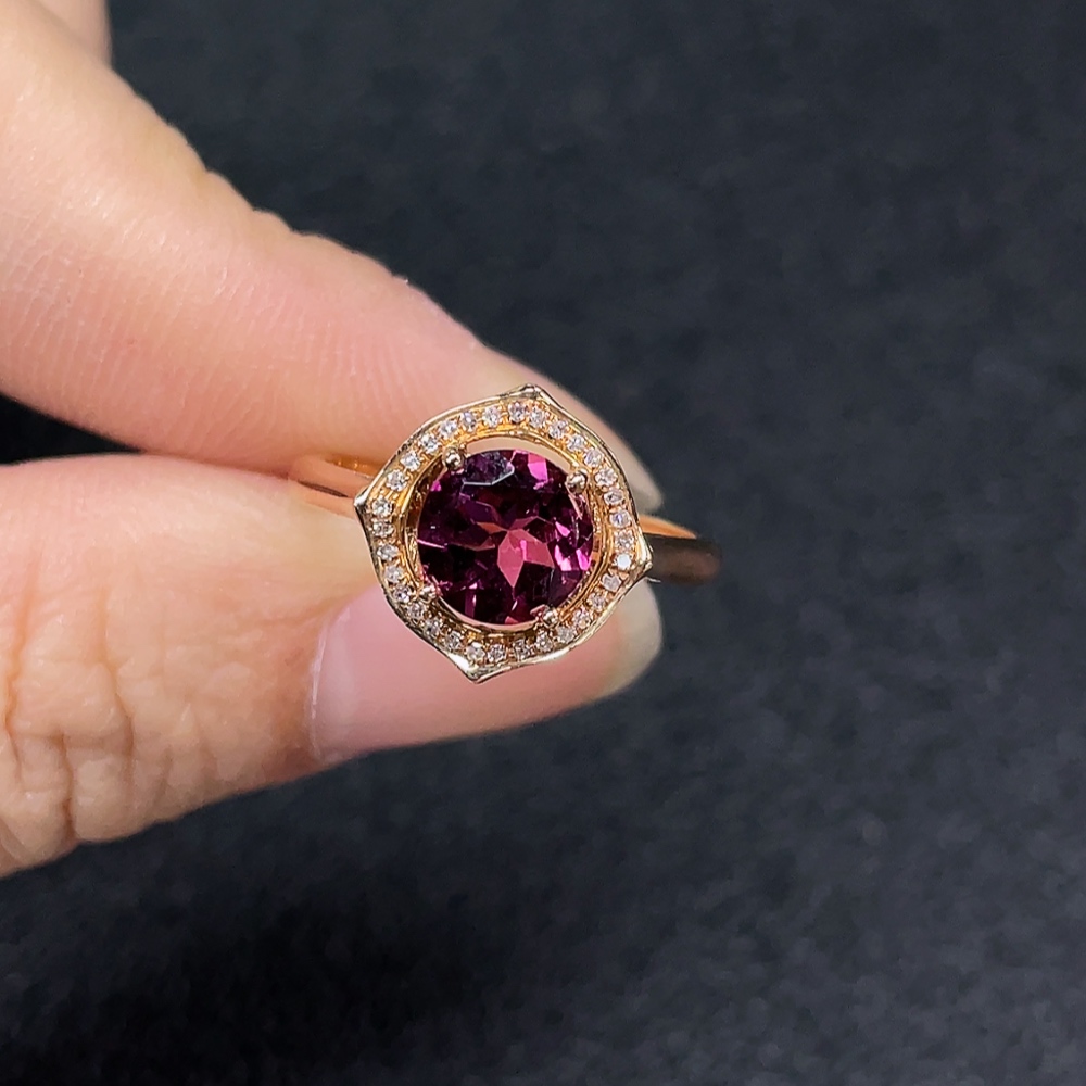 18k Tourmaline Ring with Diamond Accents, Total Weight Approx. 2.49g, Size 14