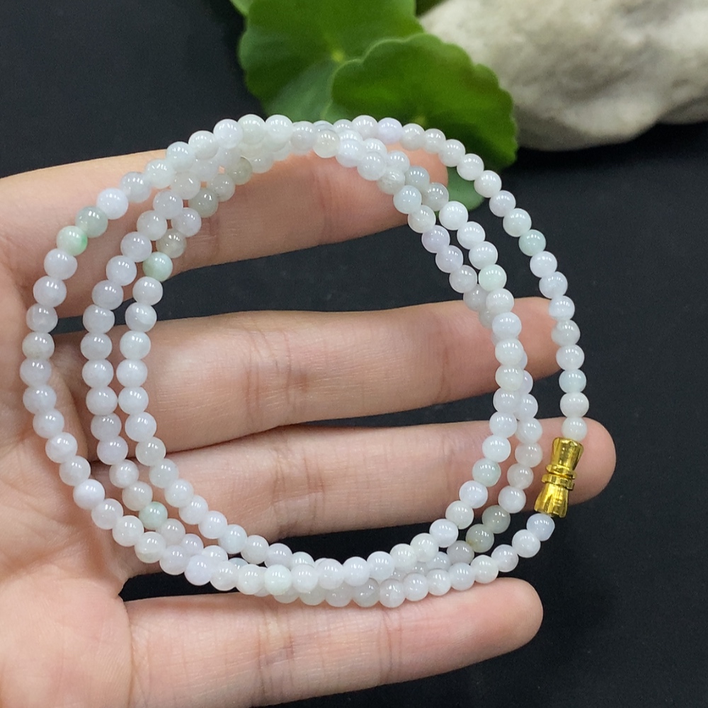 Jadeite Bead Necklace Approx. 3.6mm Non-Gold Total Weight Approx. 15.1g
