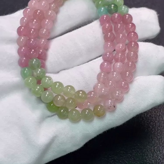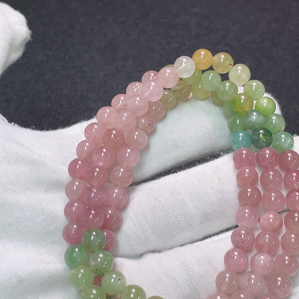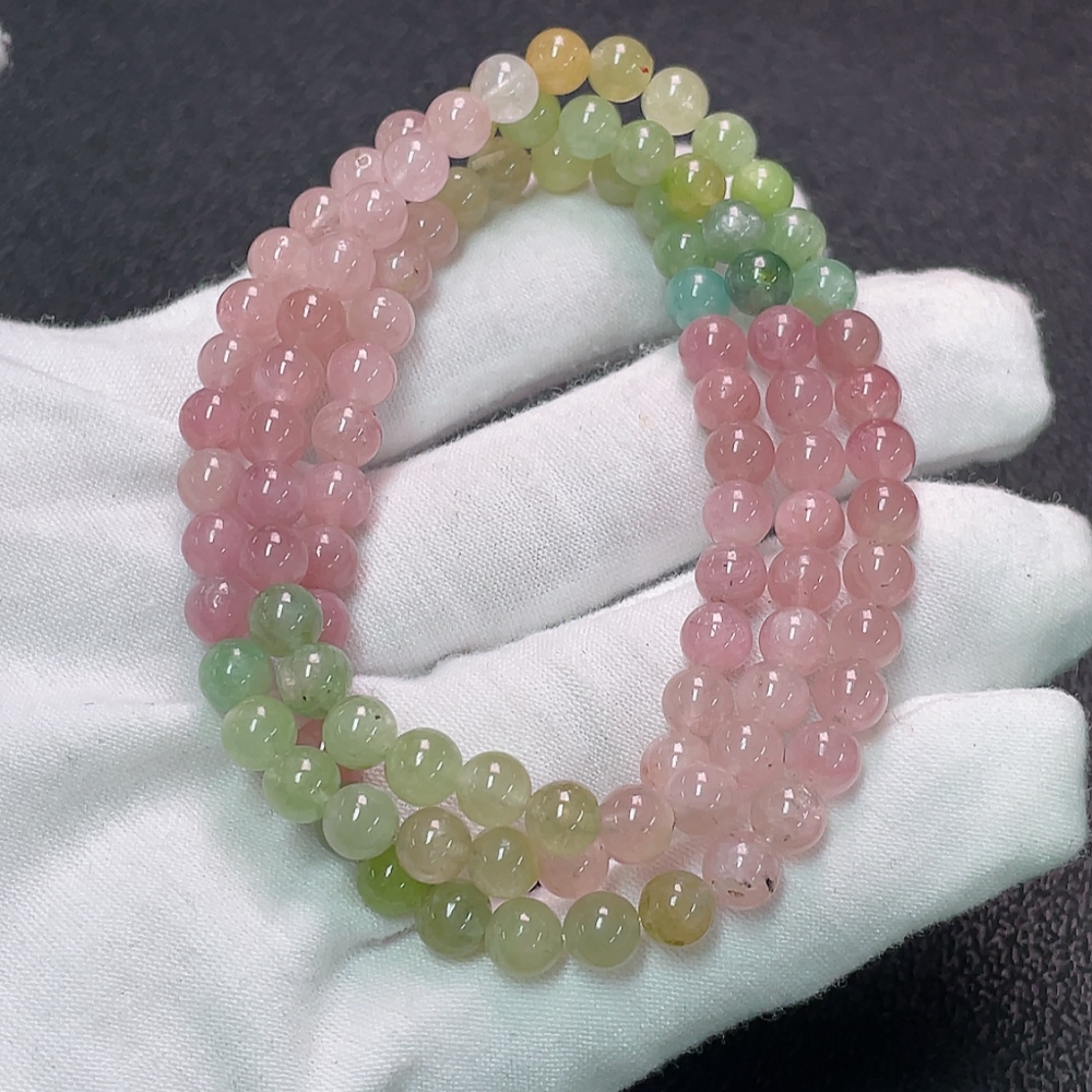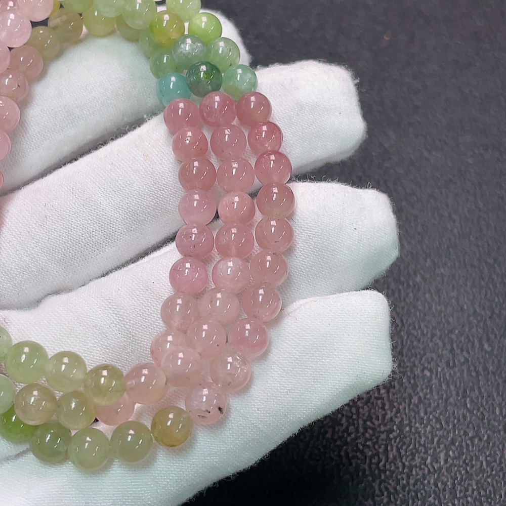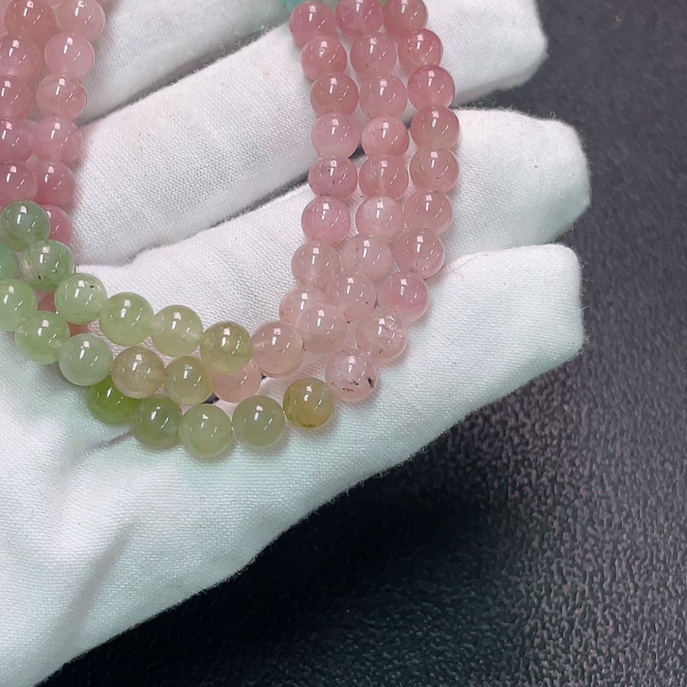 Tourmaline bead strand with visible organic inclusions, total weight approx. 29.64g, size approx. 5.6mm