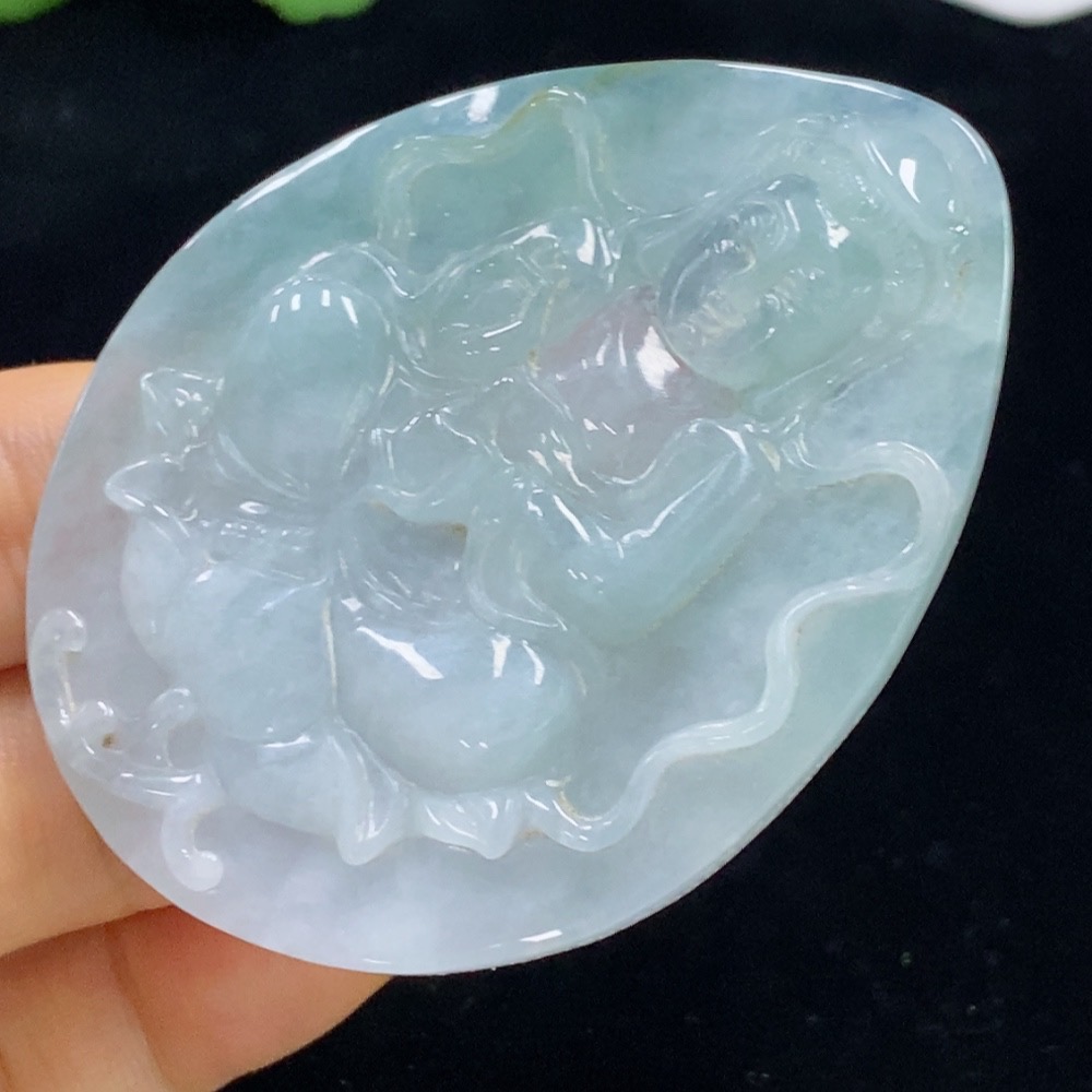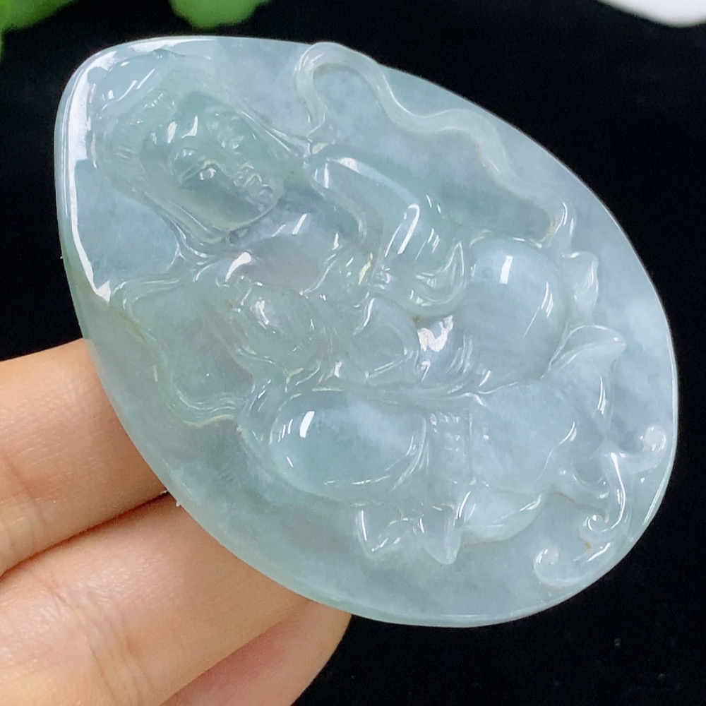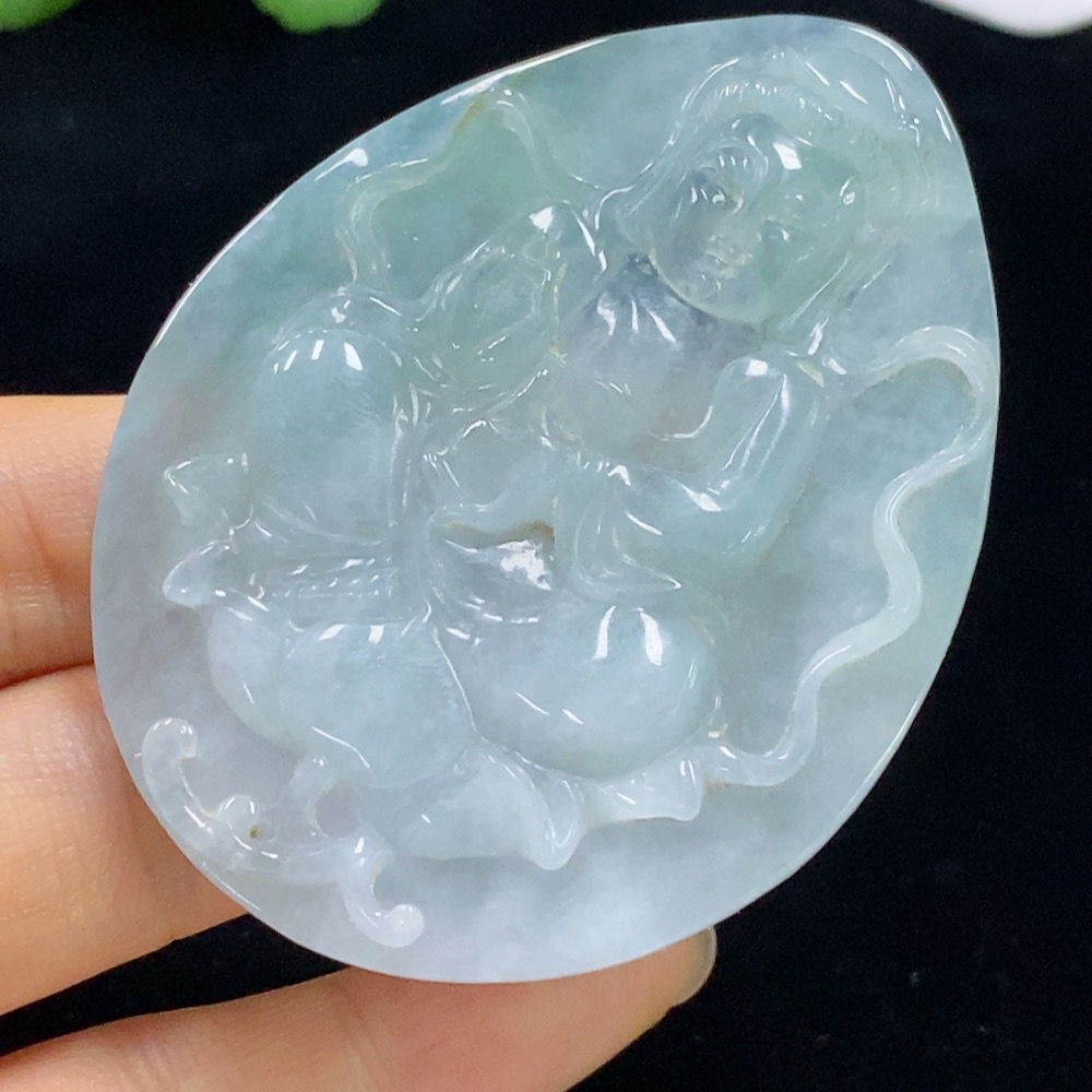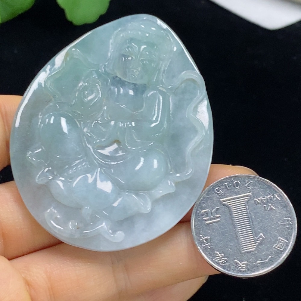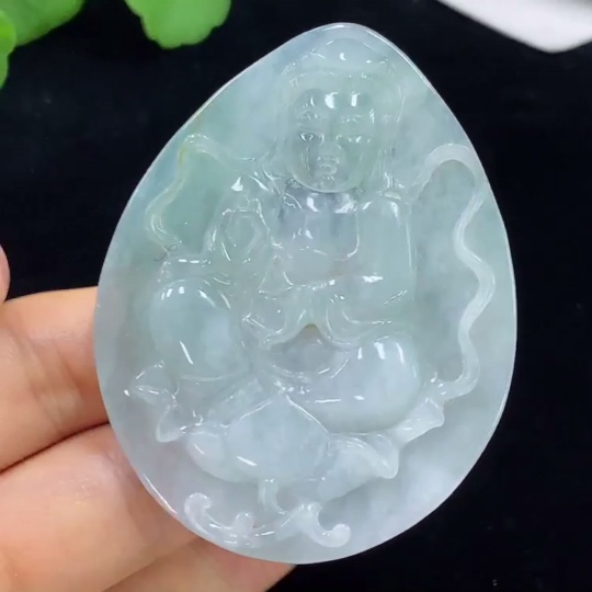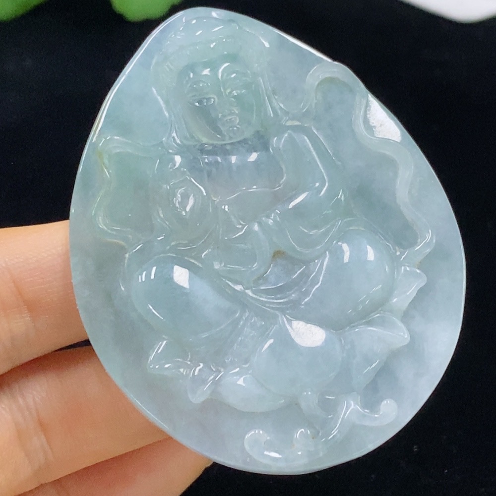Jadeite Guanyin Pendant, Total Weight Approximately 34.87g