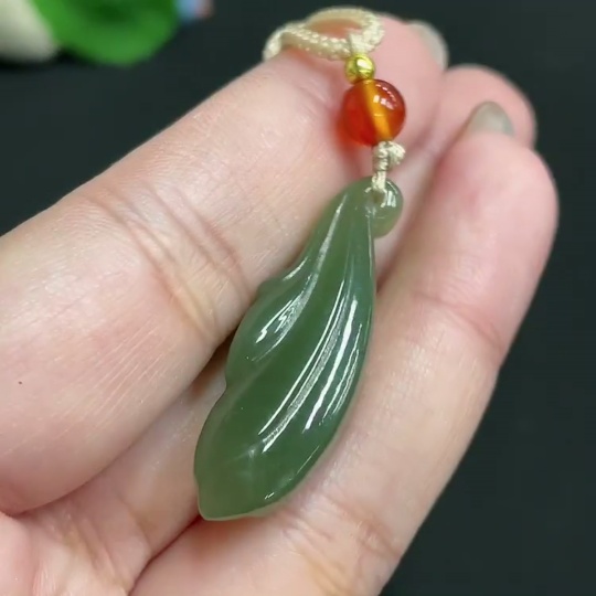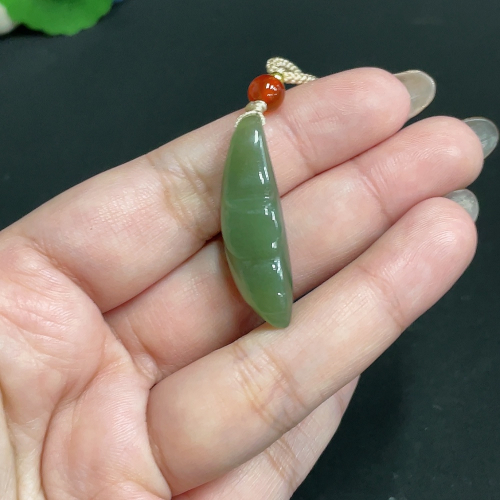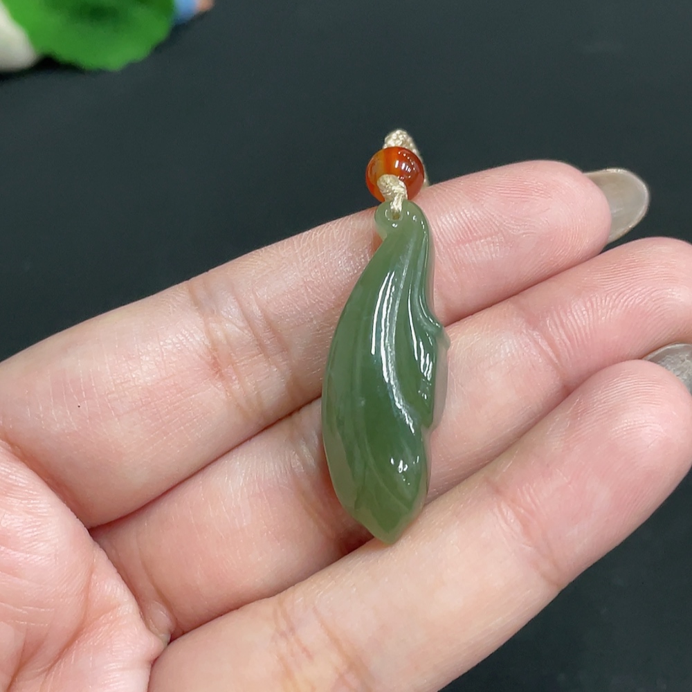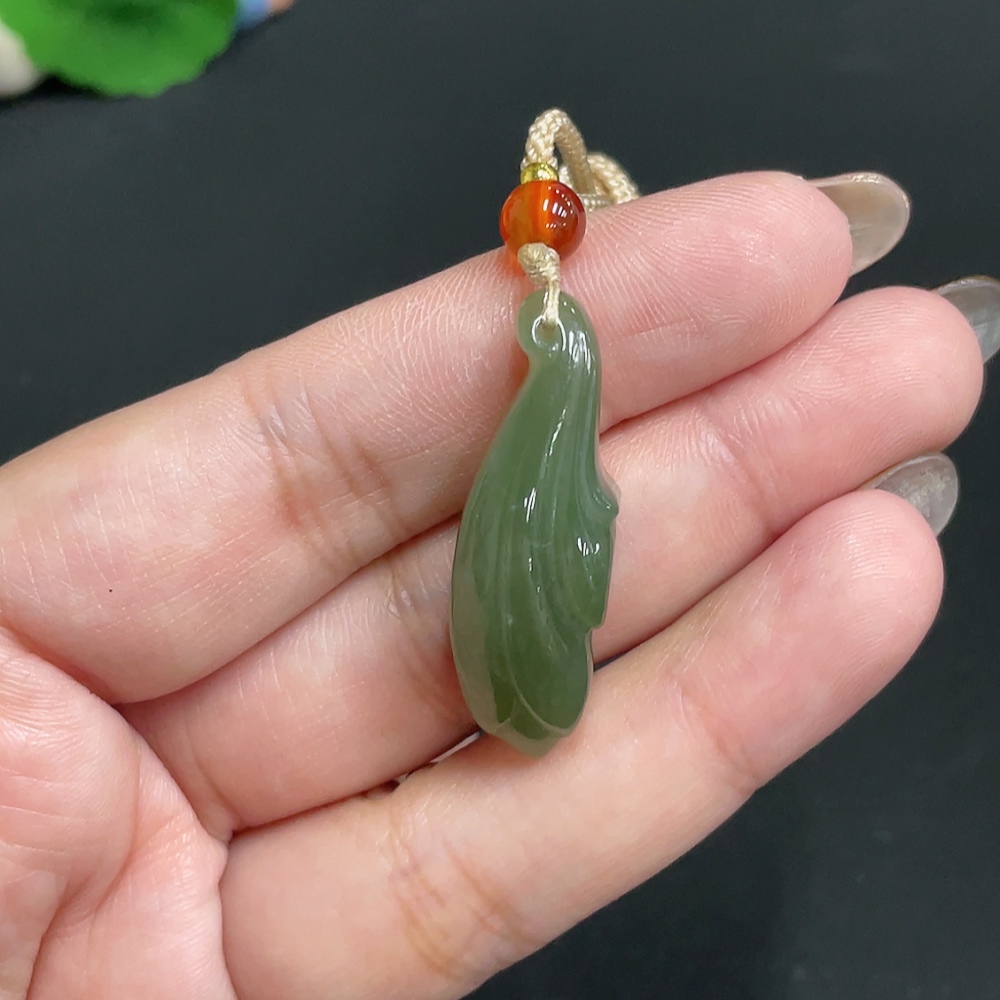 Hetian Jade Pendant Magnolia with Non-Hetian Jade Beads Total Weight Approx. [including cord] 8.7g
