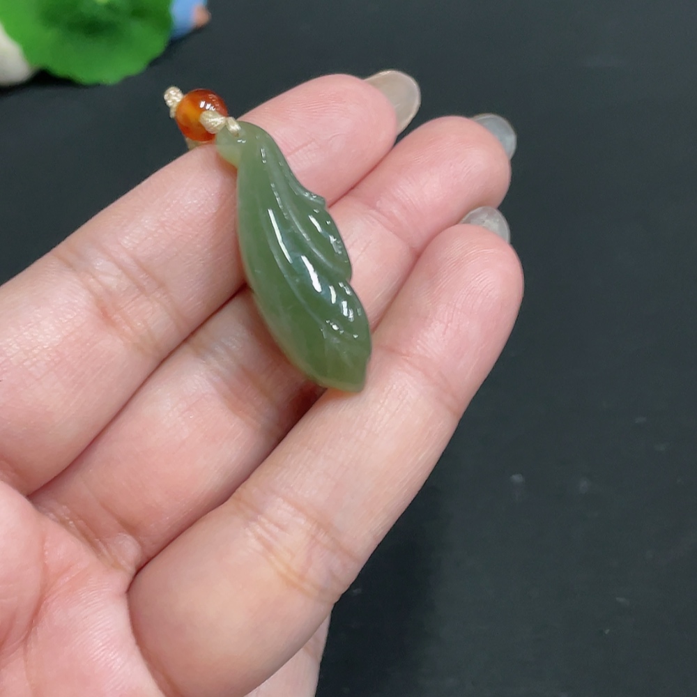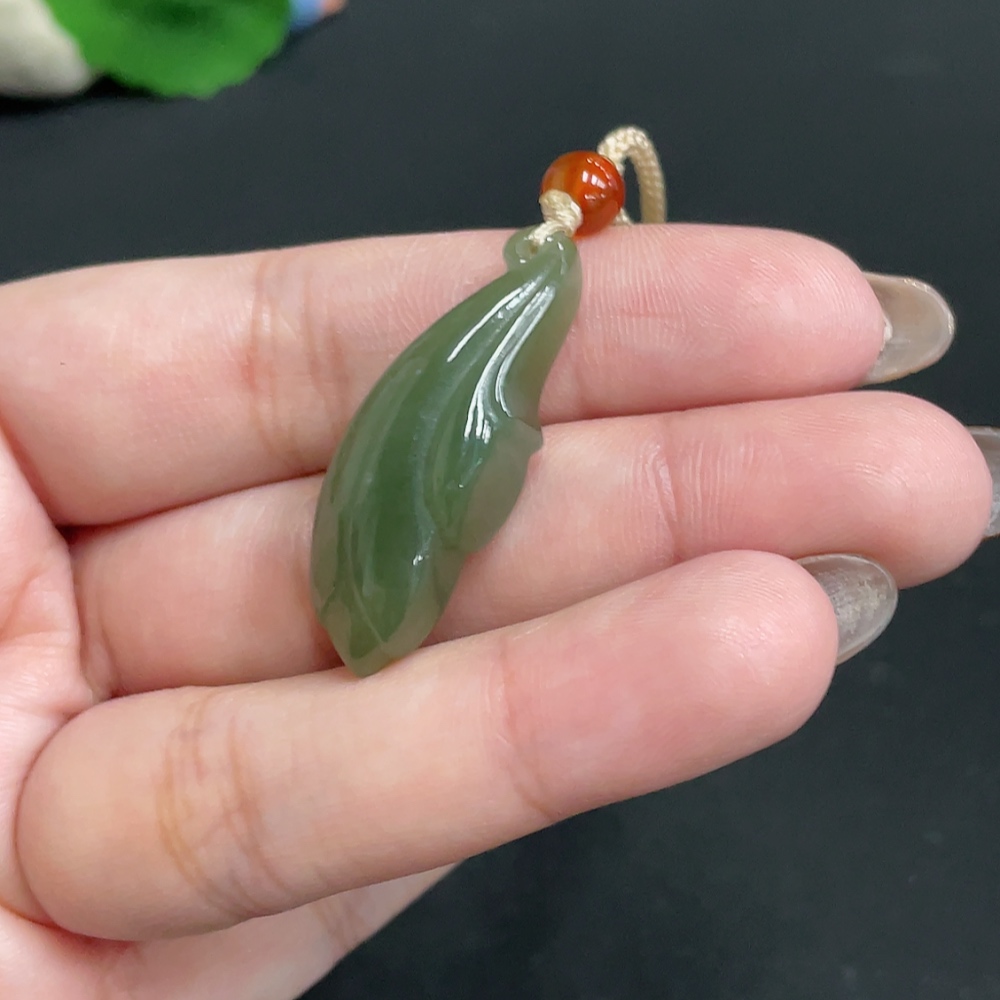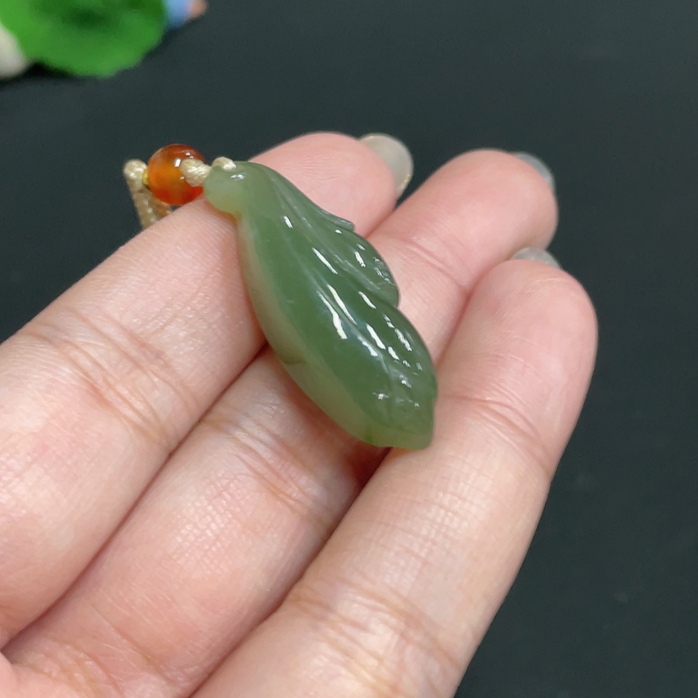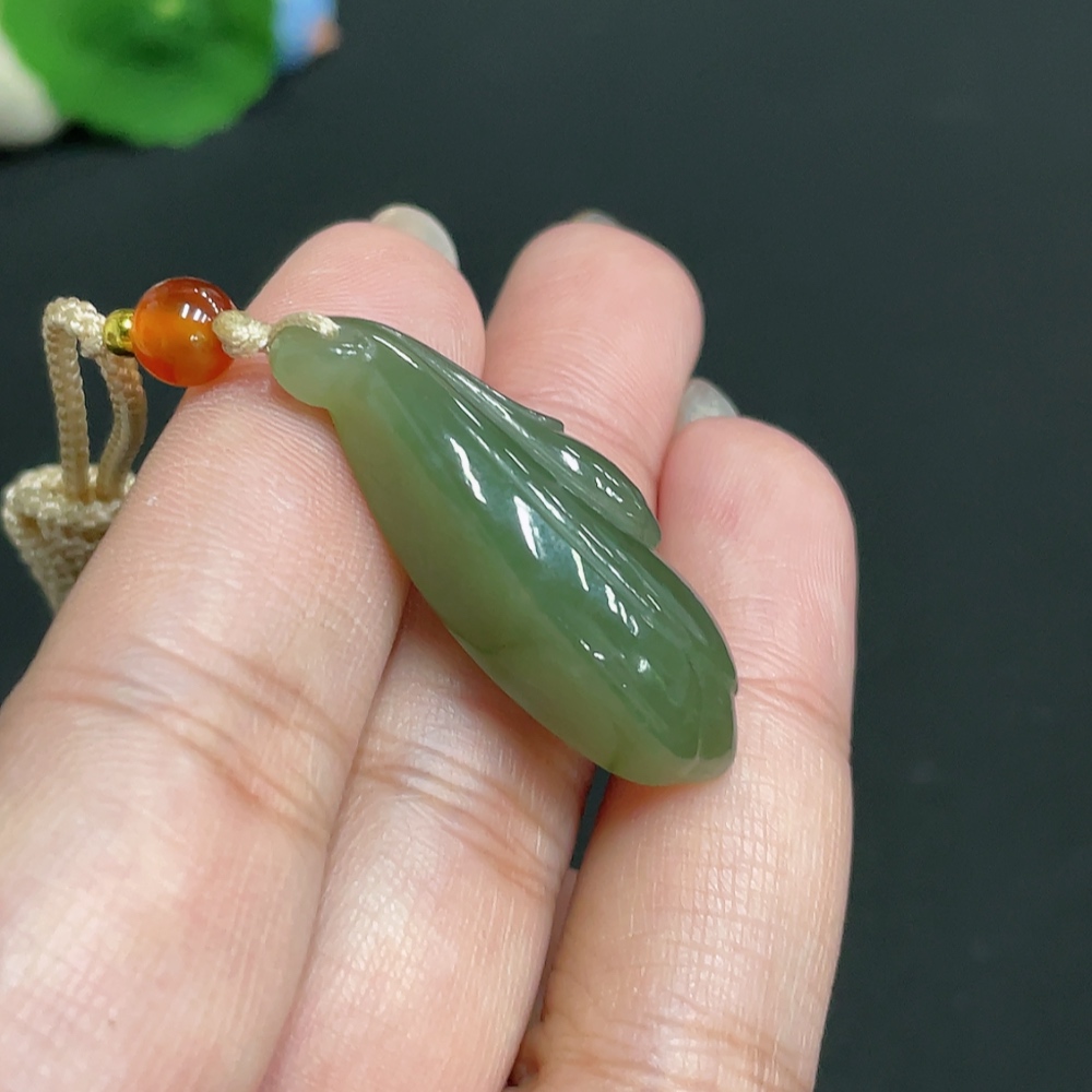Hetian Jade Pendant Magnolia with Non-Hetian Jade Beads Total Weight Approx. [including cord] 8.7g
