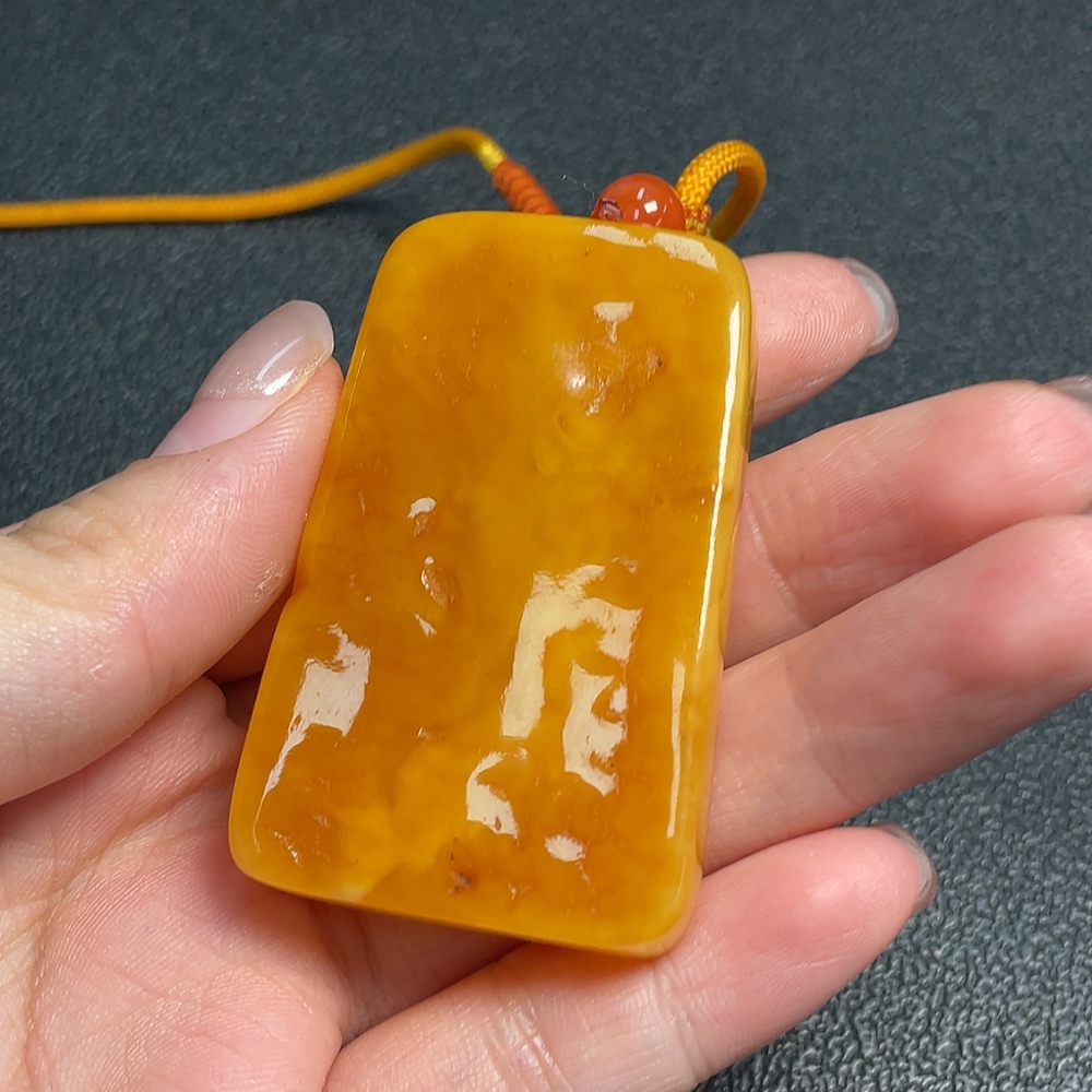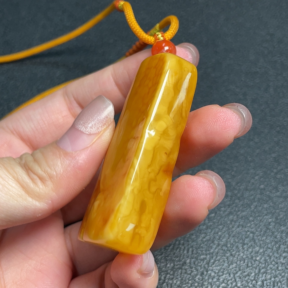 Amber and beeswax pendant with southern red agate, total weight approx. 23.28g including cord