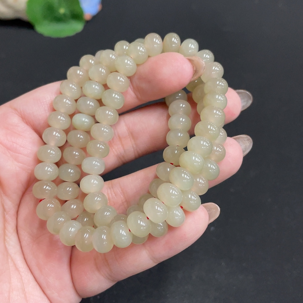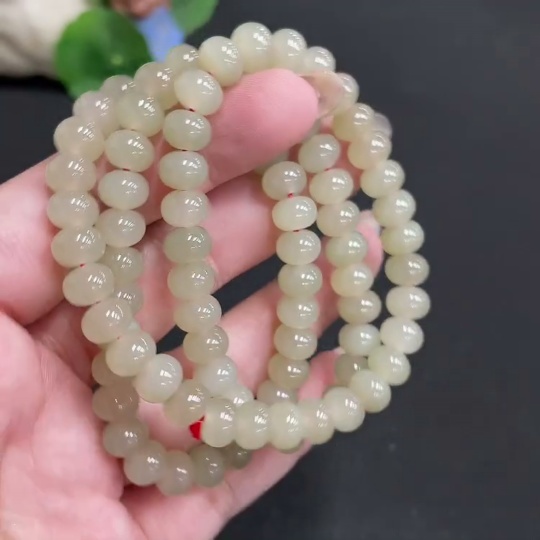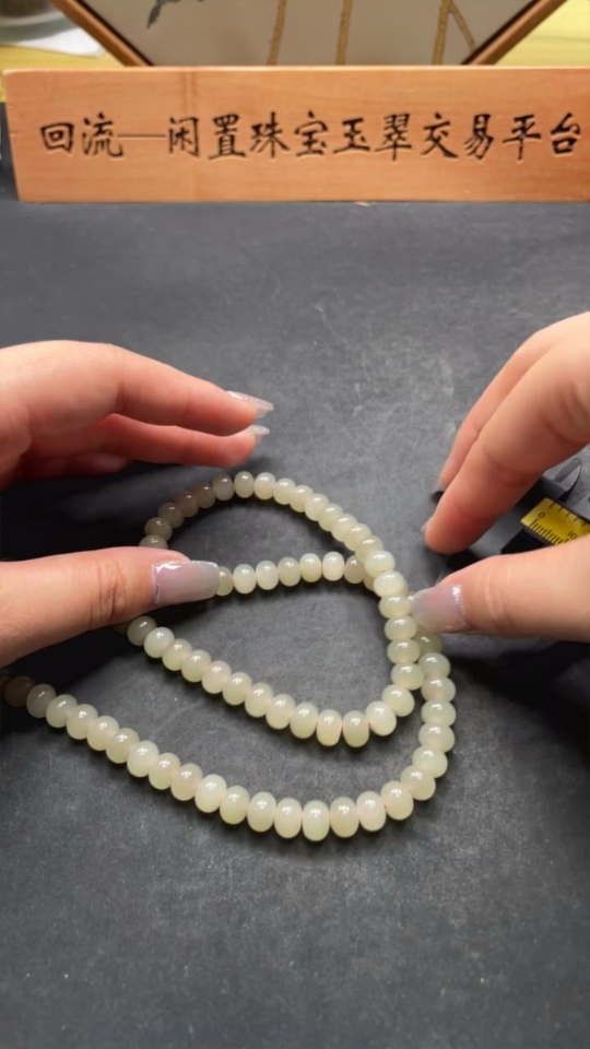 Hetian Jade Bead Necklace, Approx. 7.8mm, Total Weight Approx. 56.9g