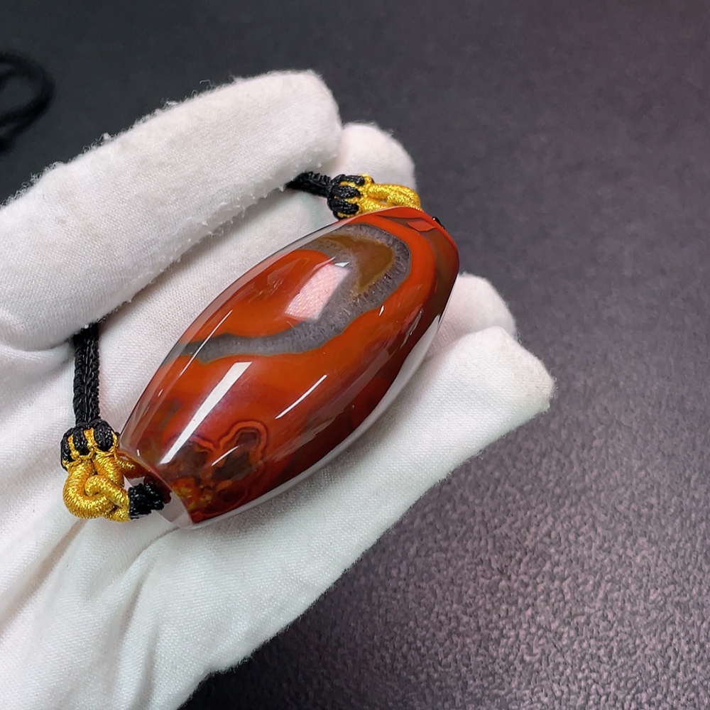 Warring States Red Agate Pendant Total Weight Approx. 68.63g Including Rope